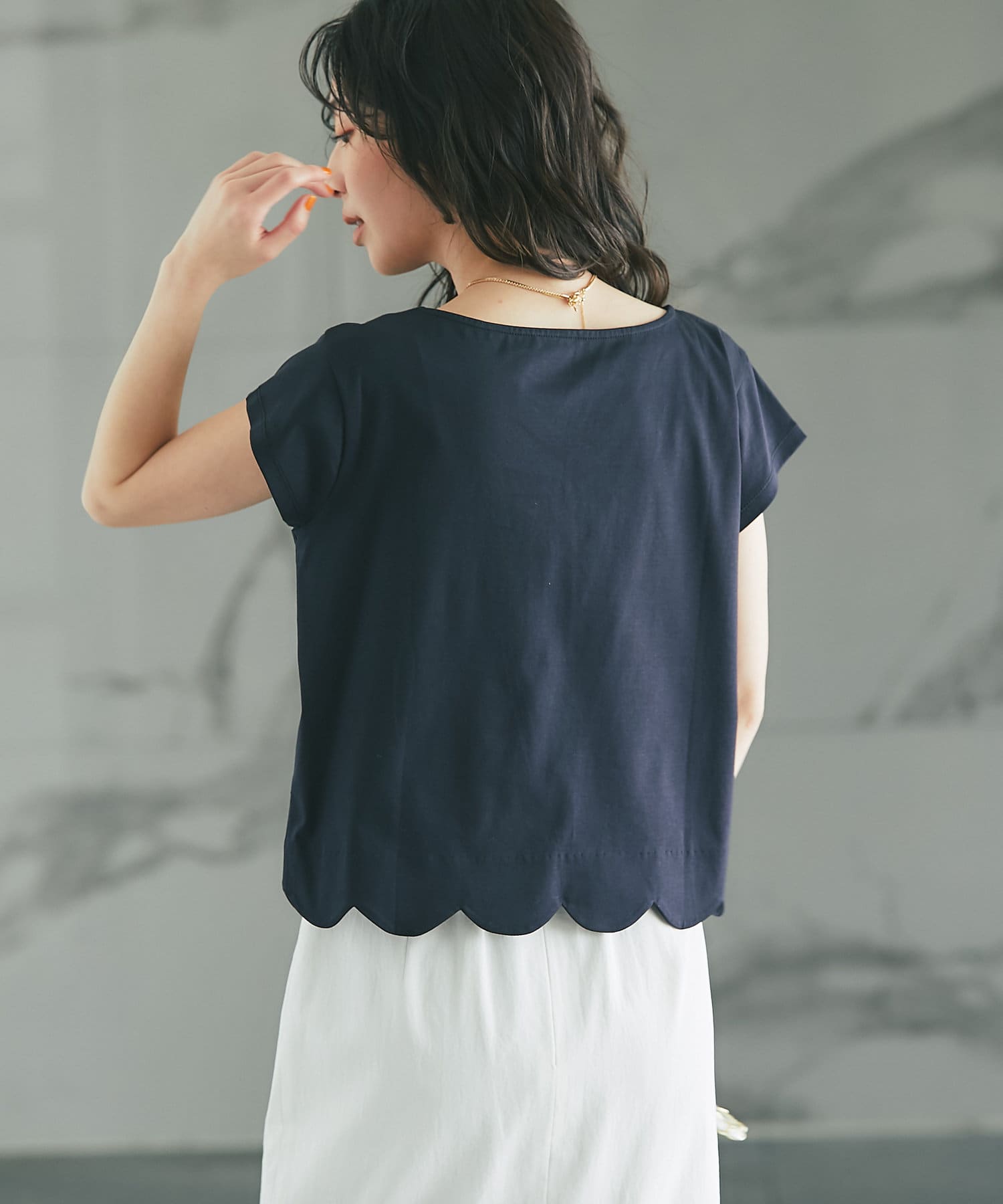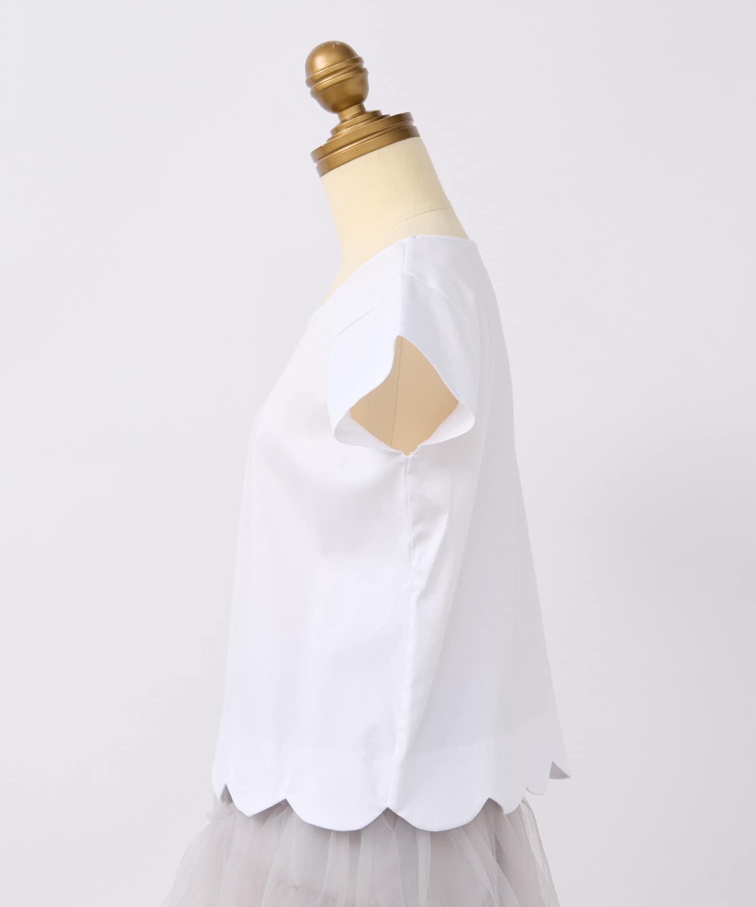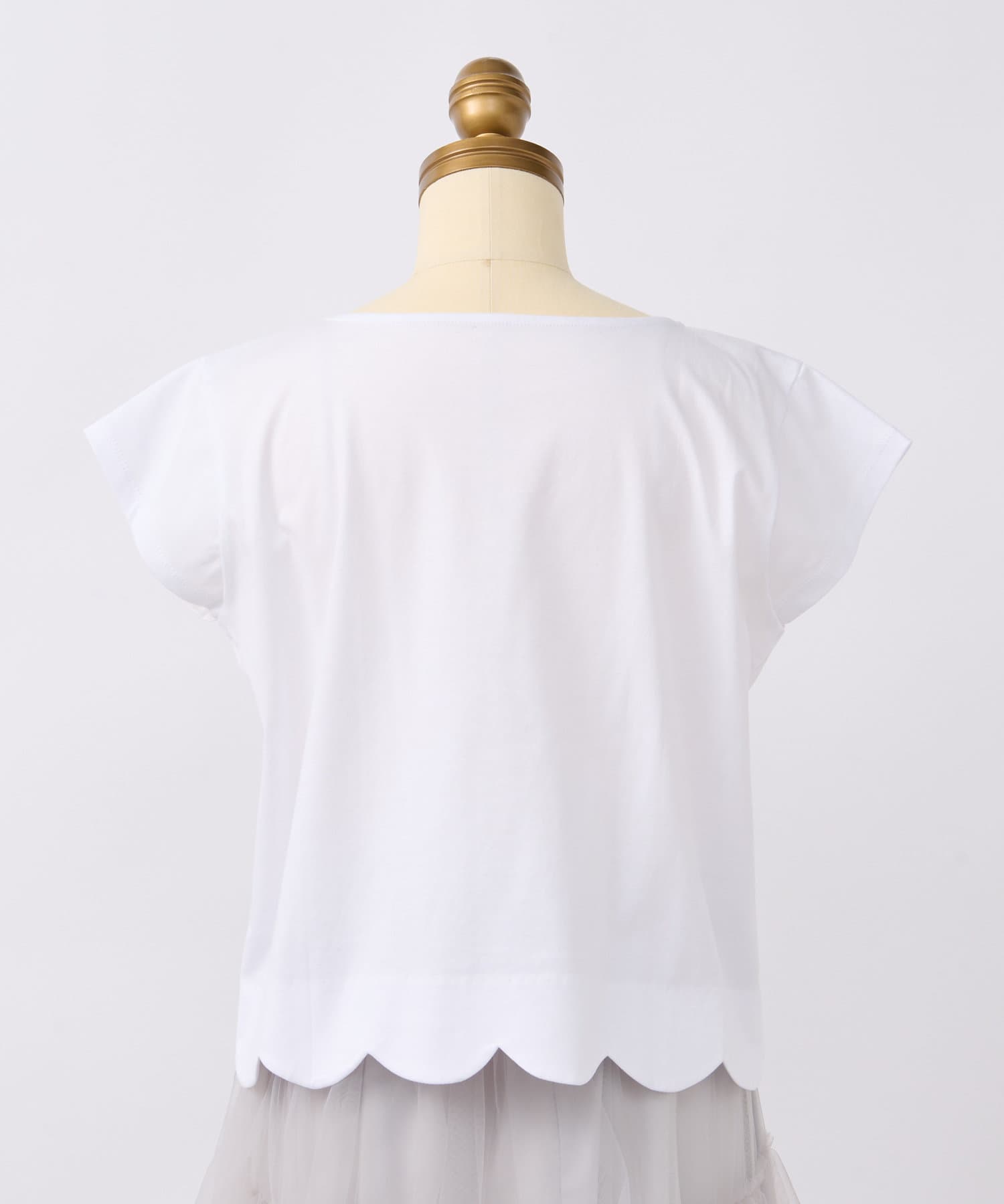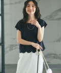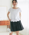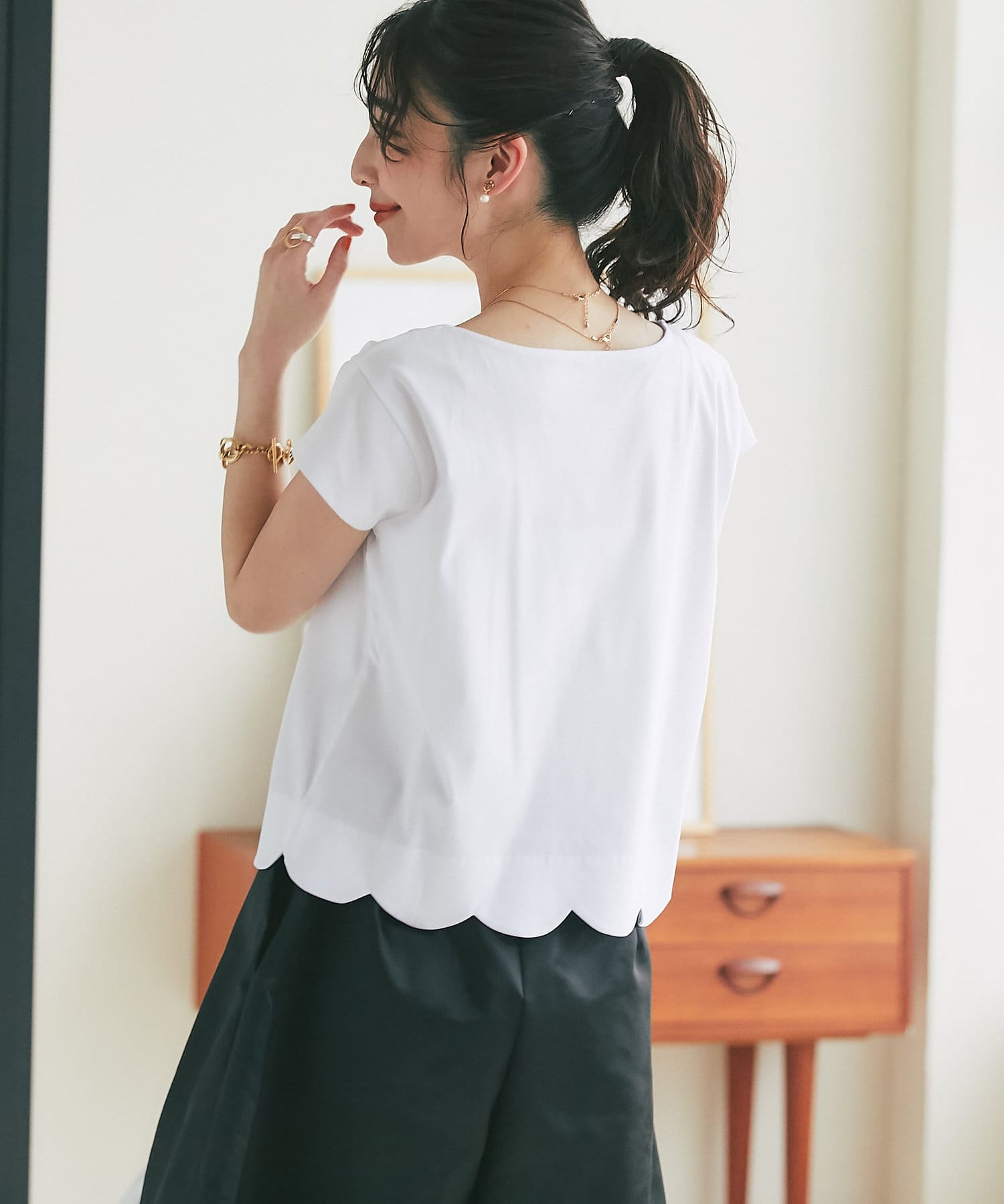 フェミニンなスカラップデザインを裾に取り入れたTシャツ。