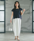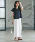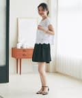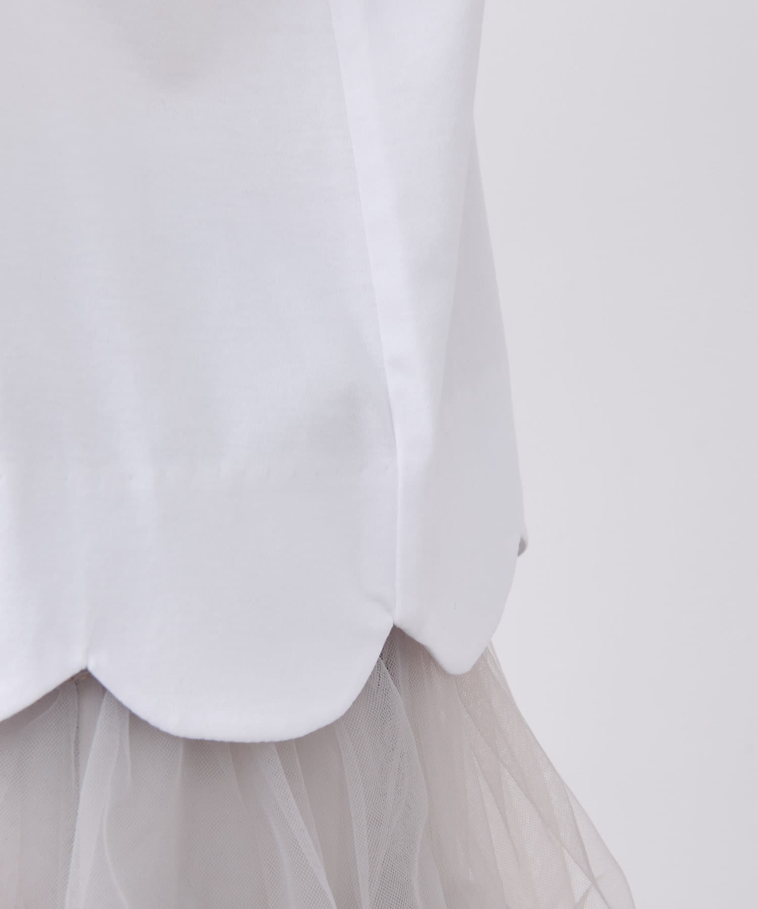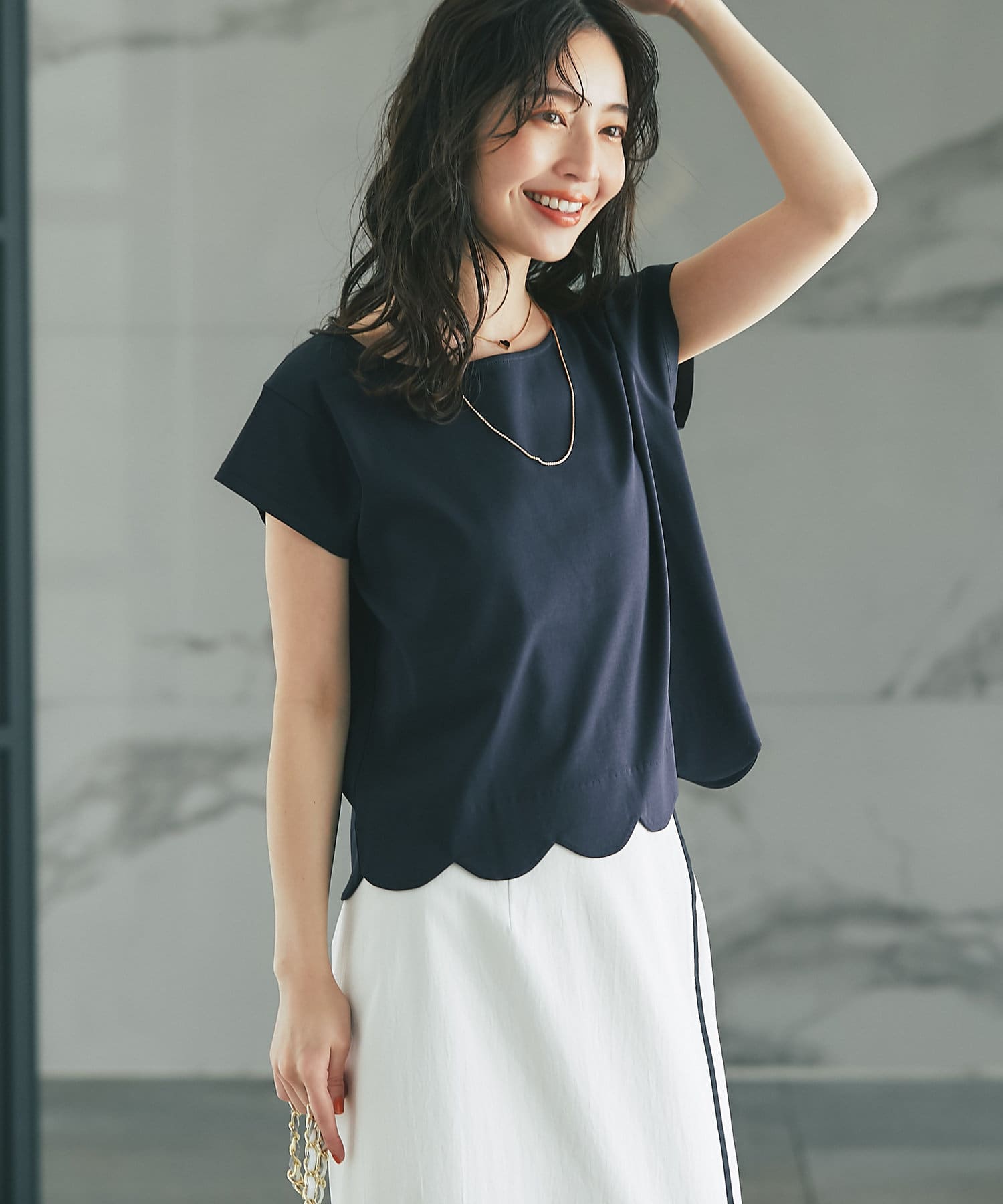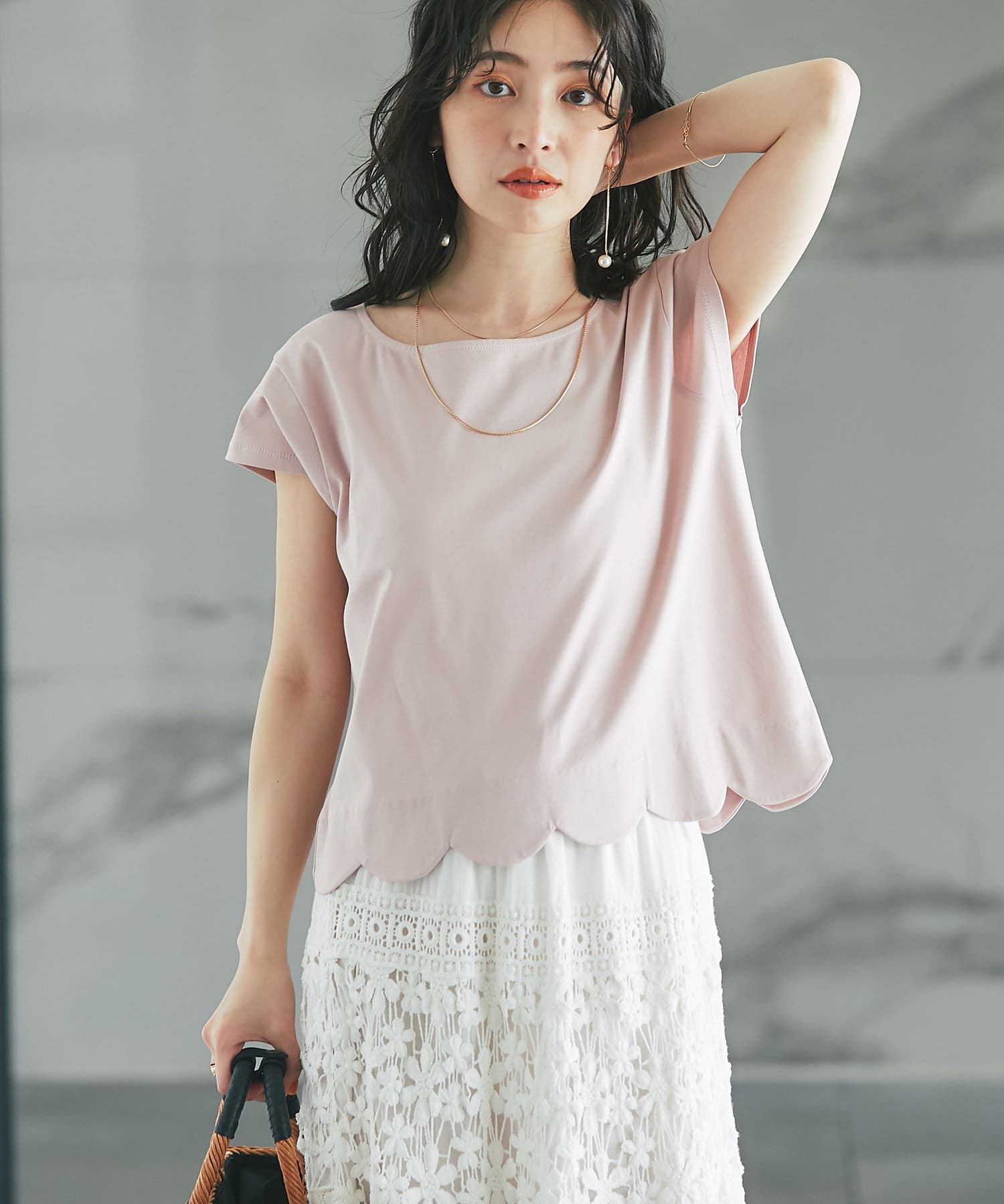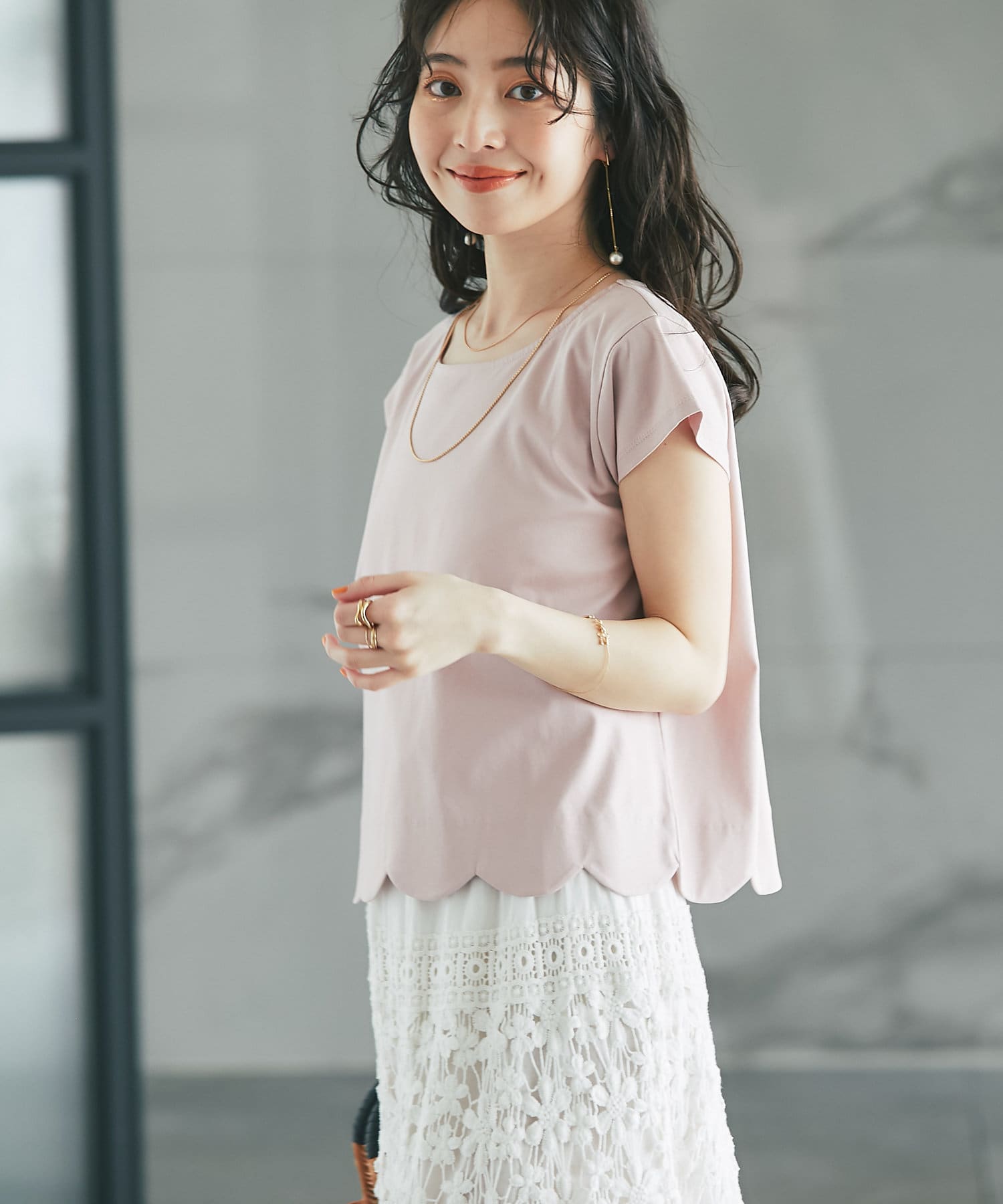 フェミニンなスカラップデザインを裾に取り入れたTシャツ。