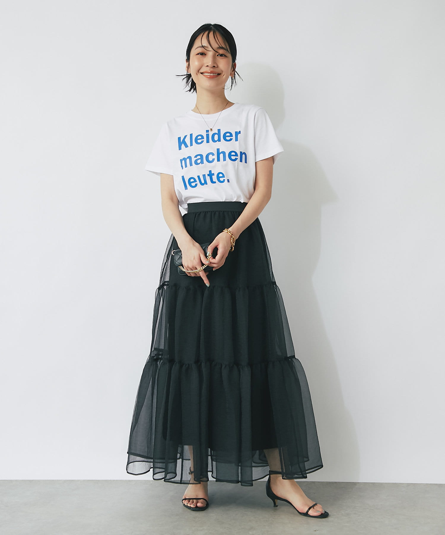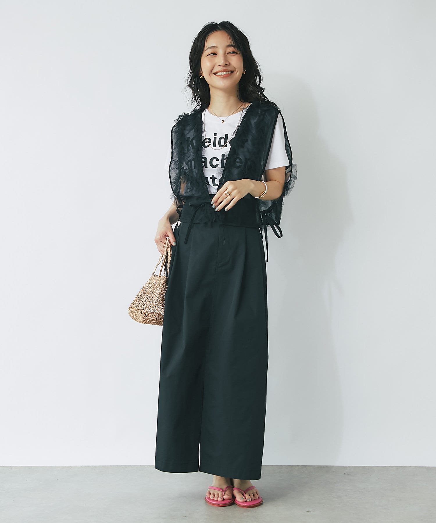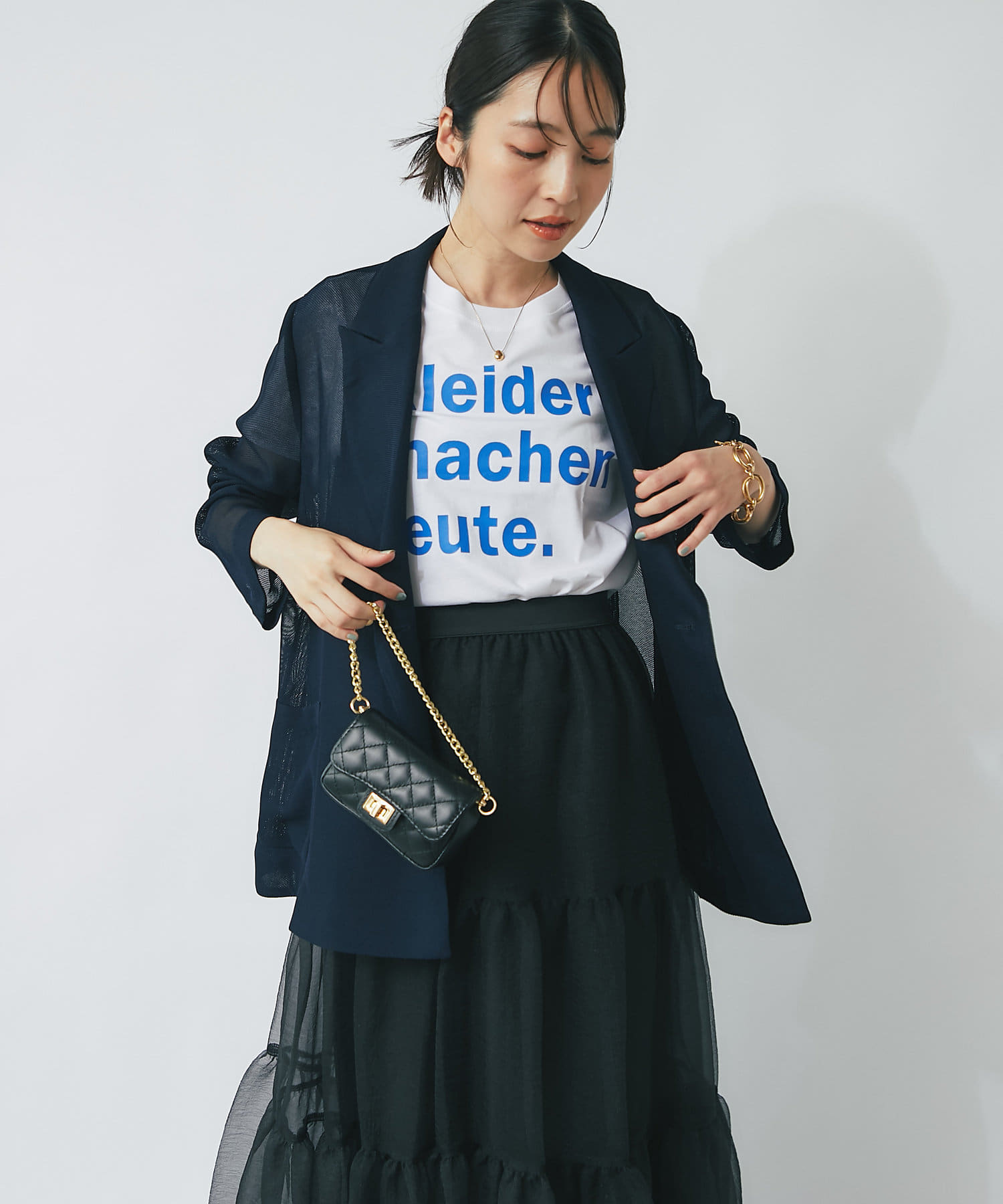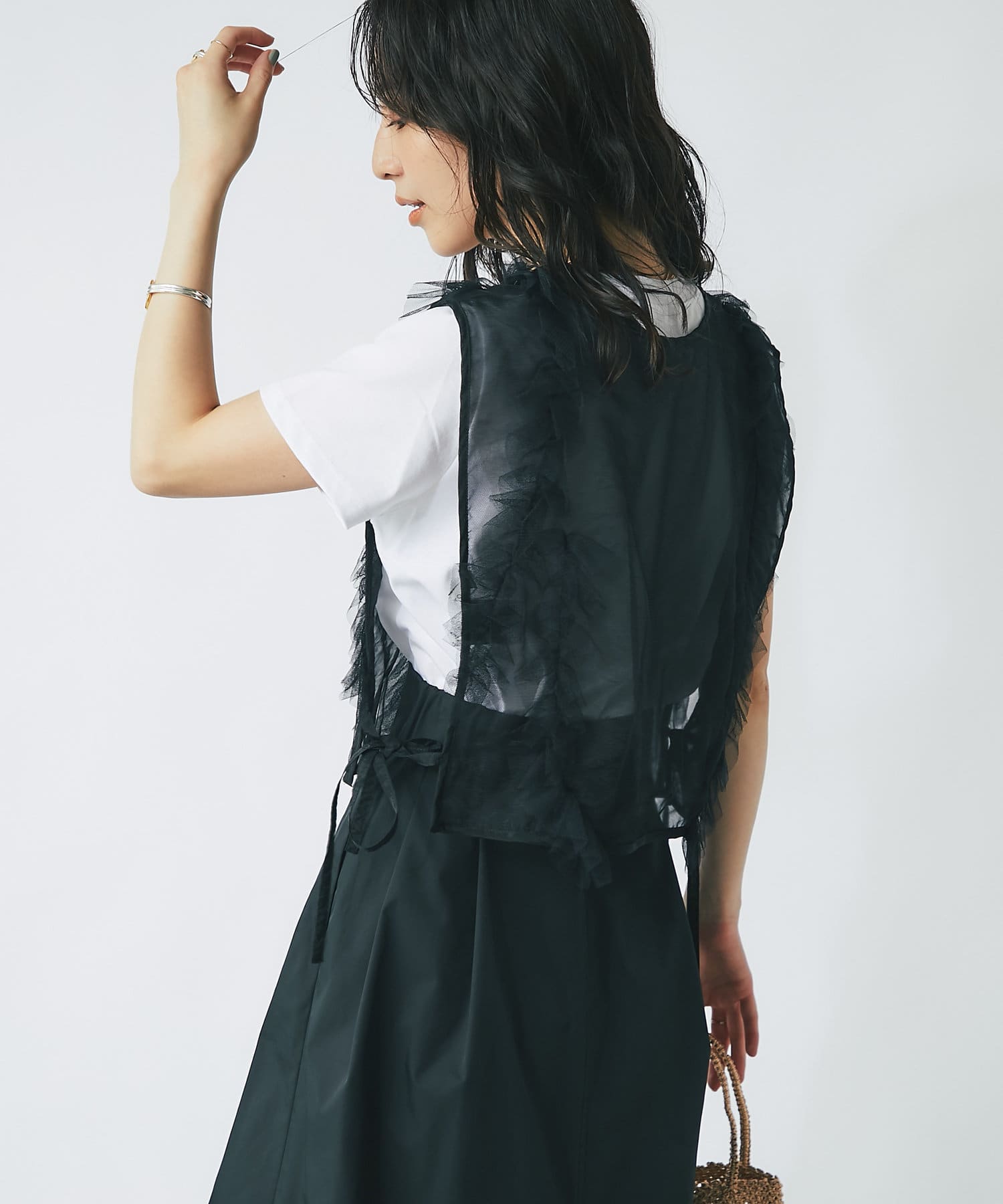スカートなど、フェミニンなボトム合わせのスタイリングに取り入れて