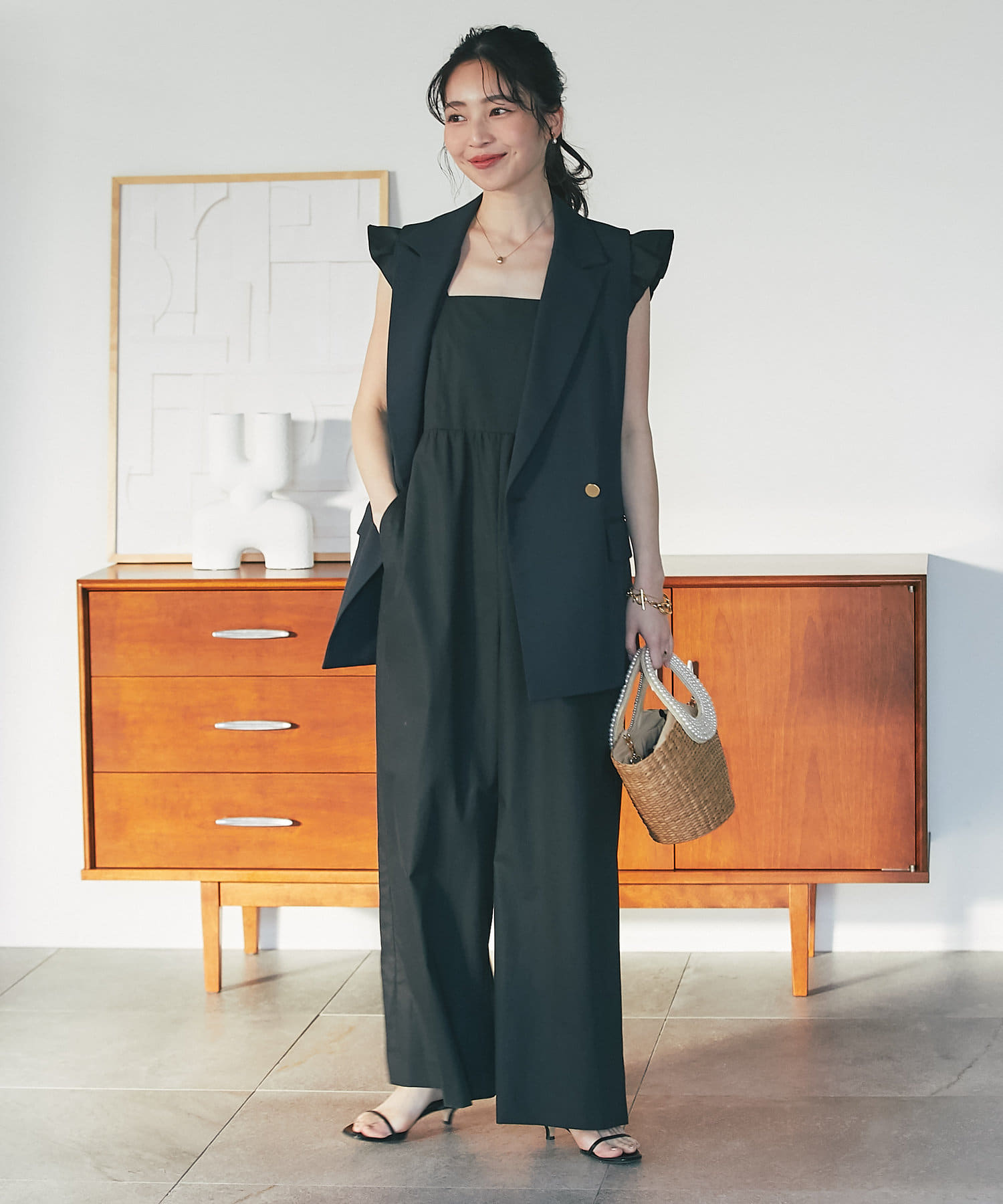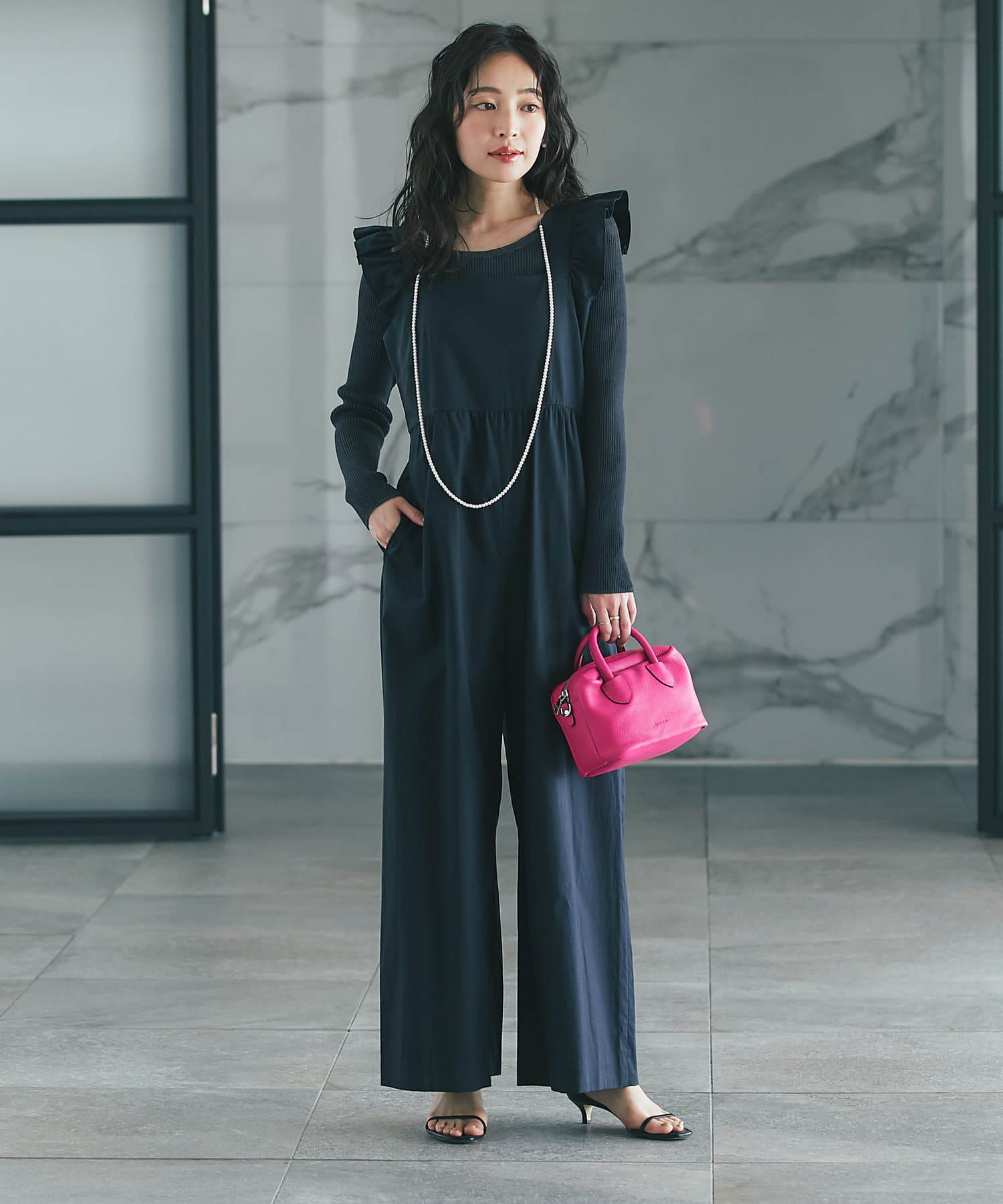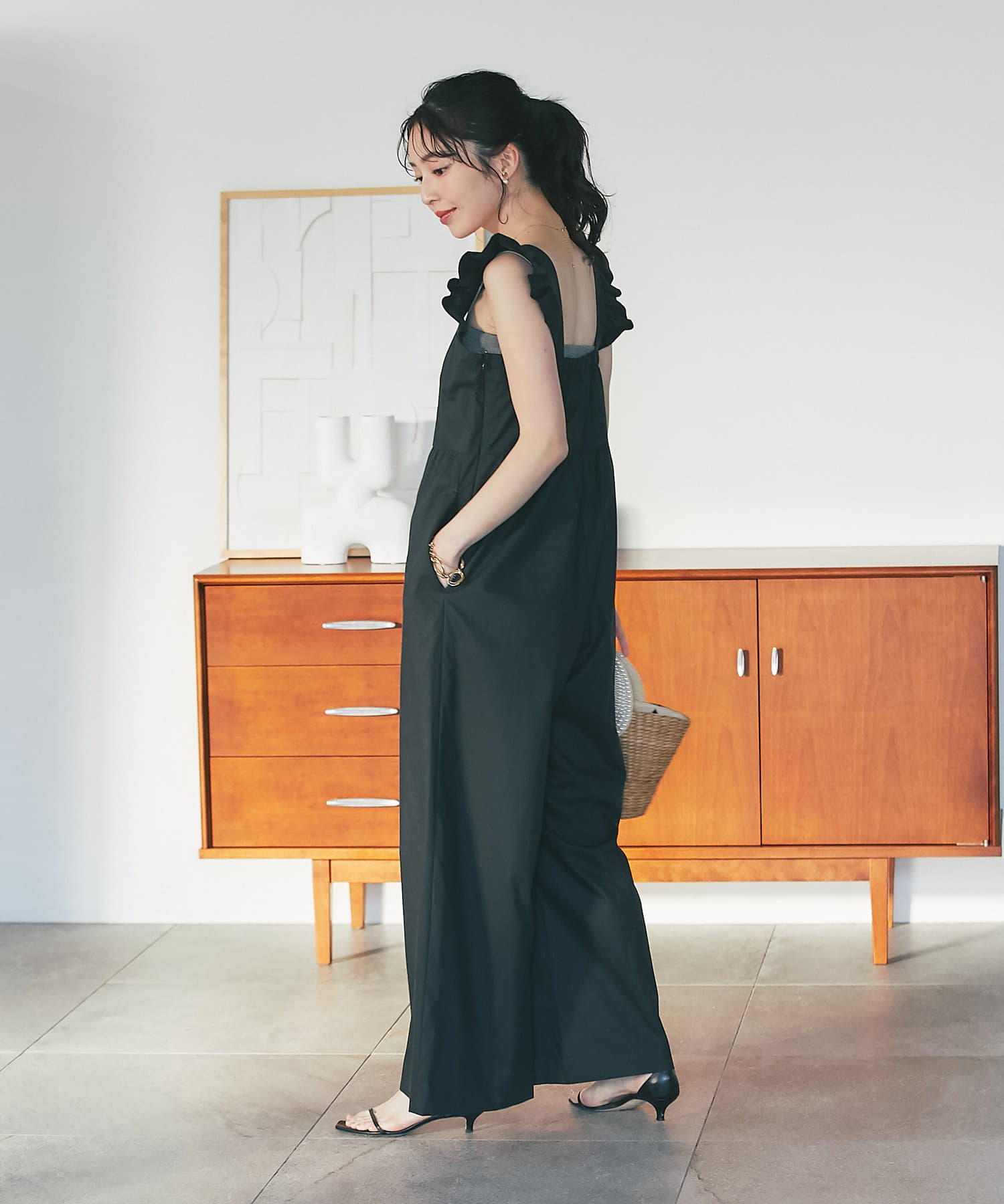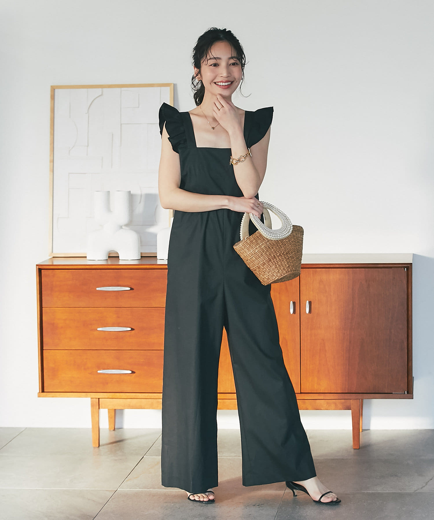 肩フリルが大人フェミニンなオールインワンです。