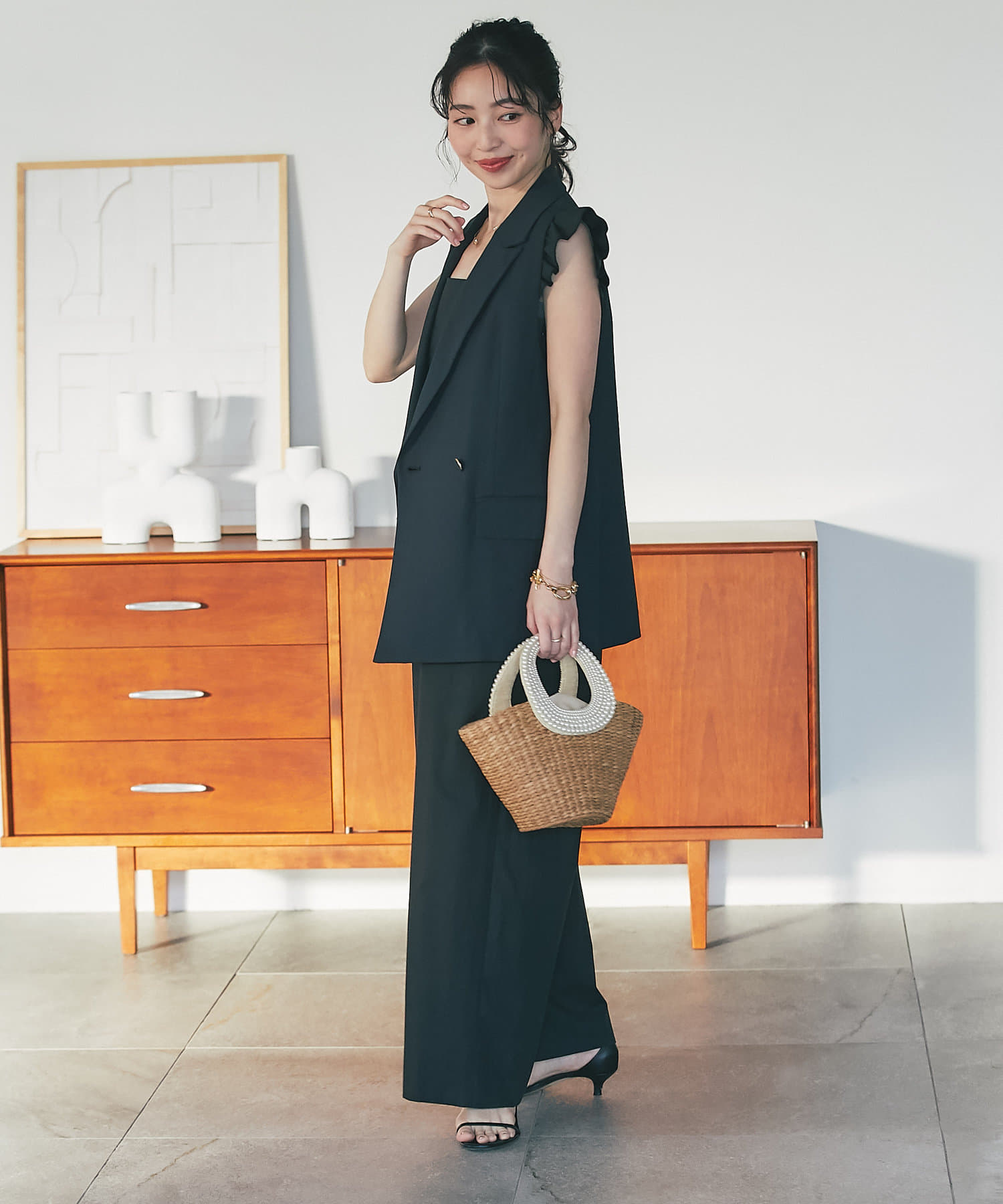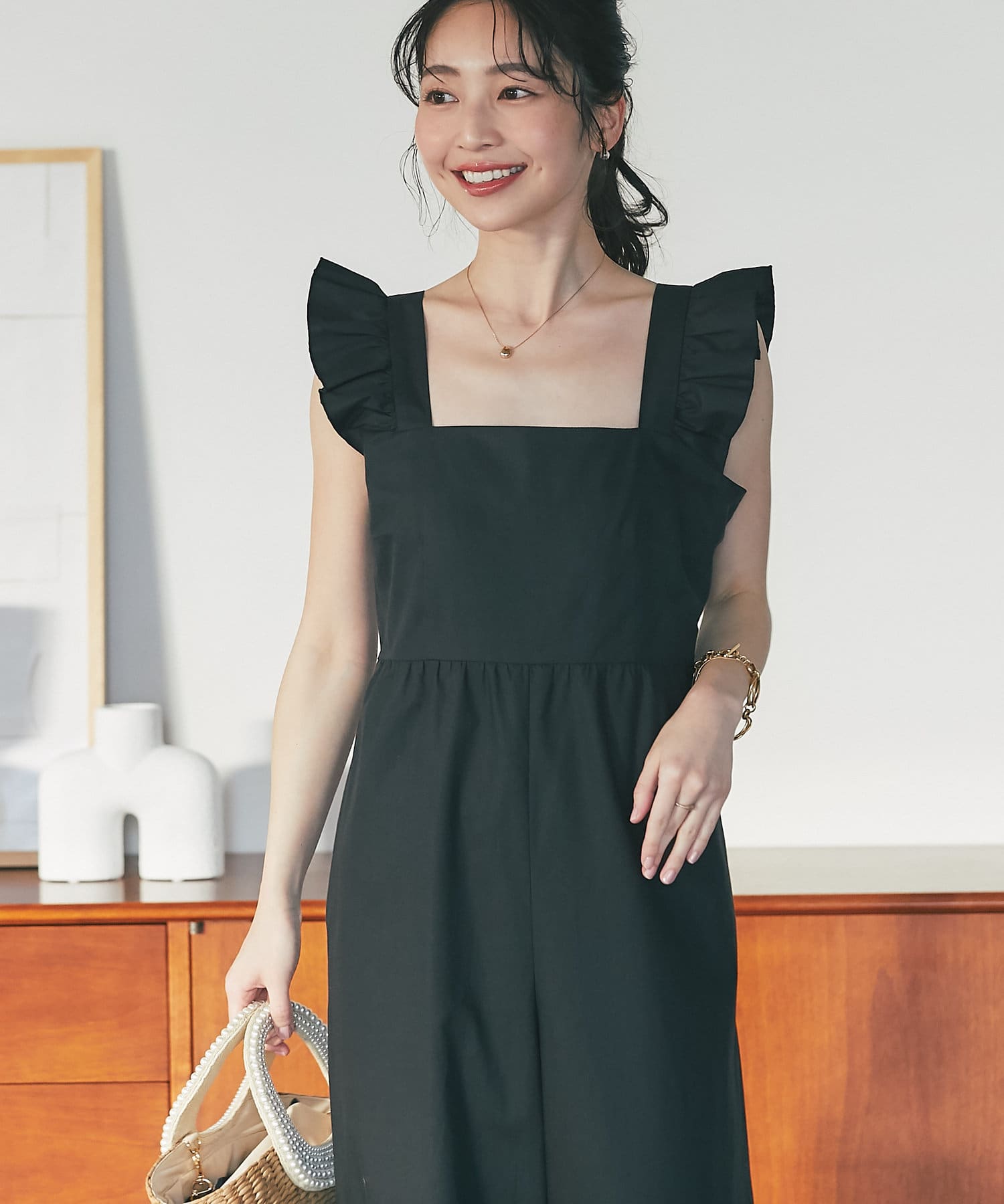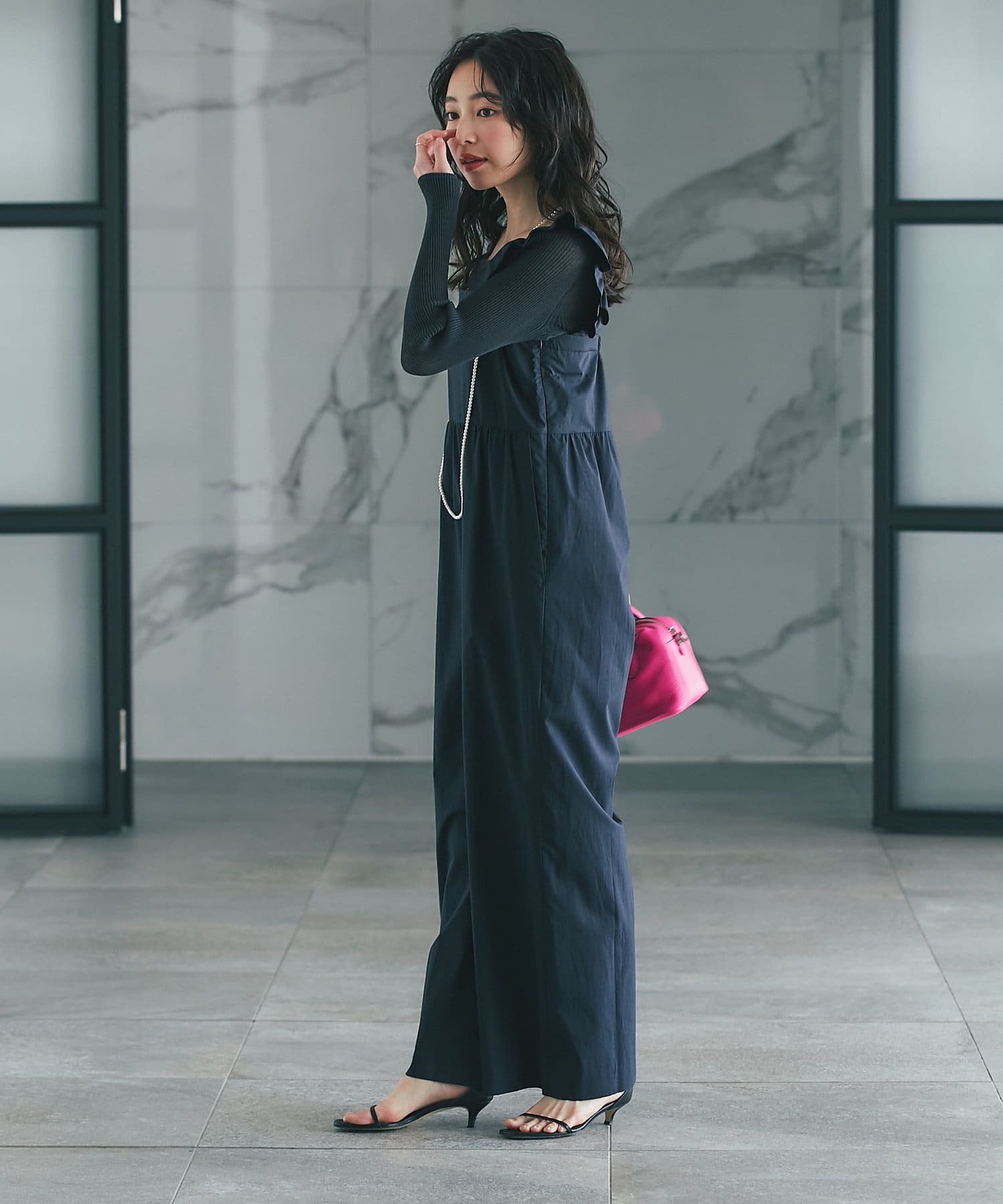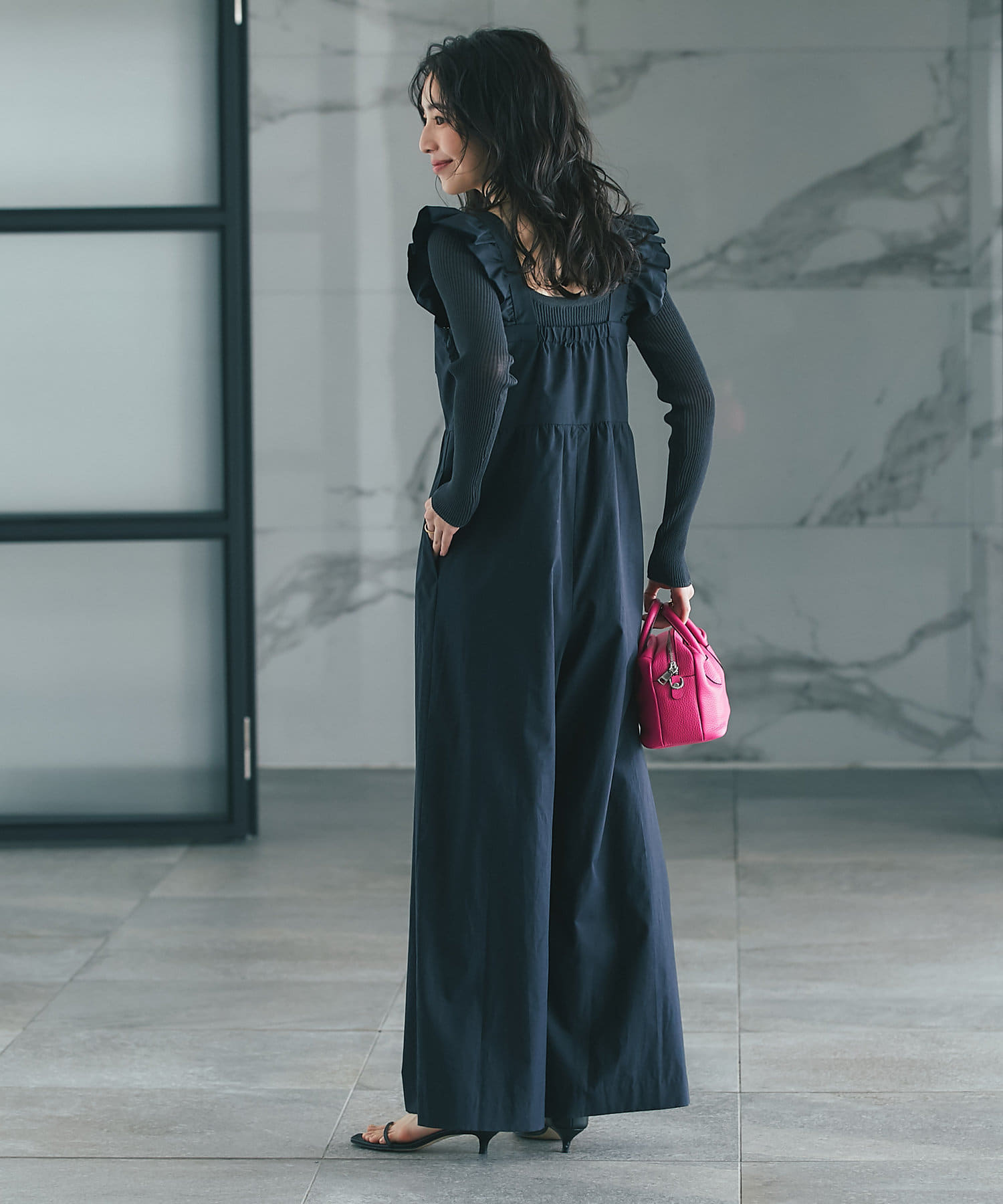 肩フリルが大人フェミニンなオールインワンです。