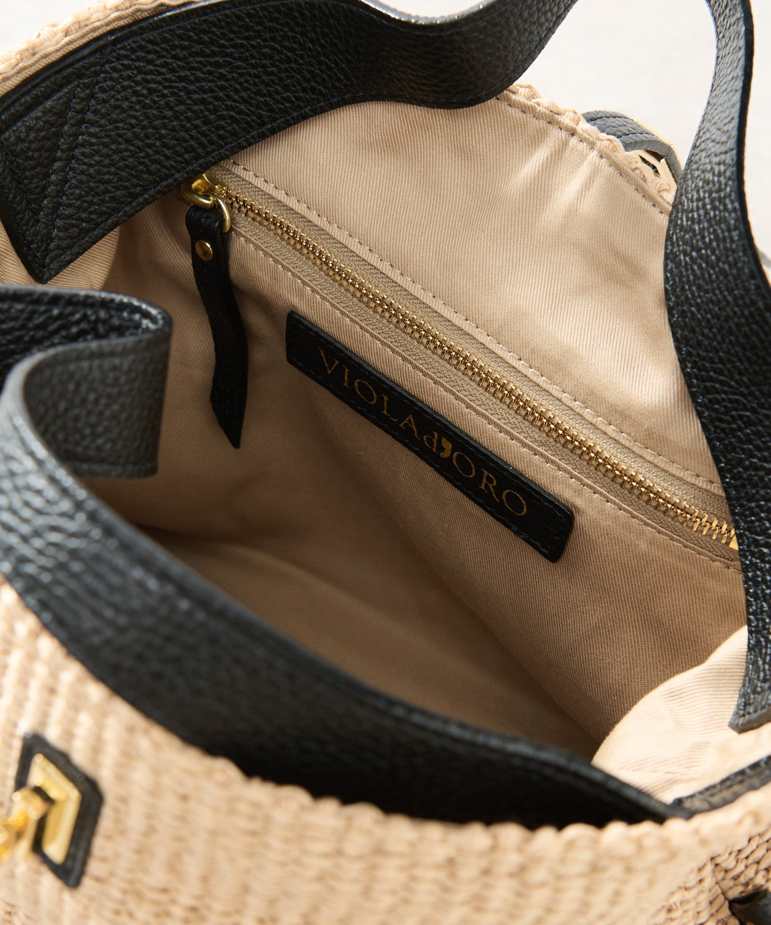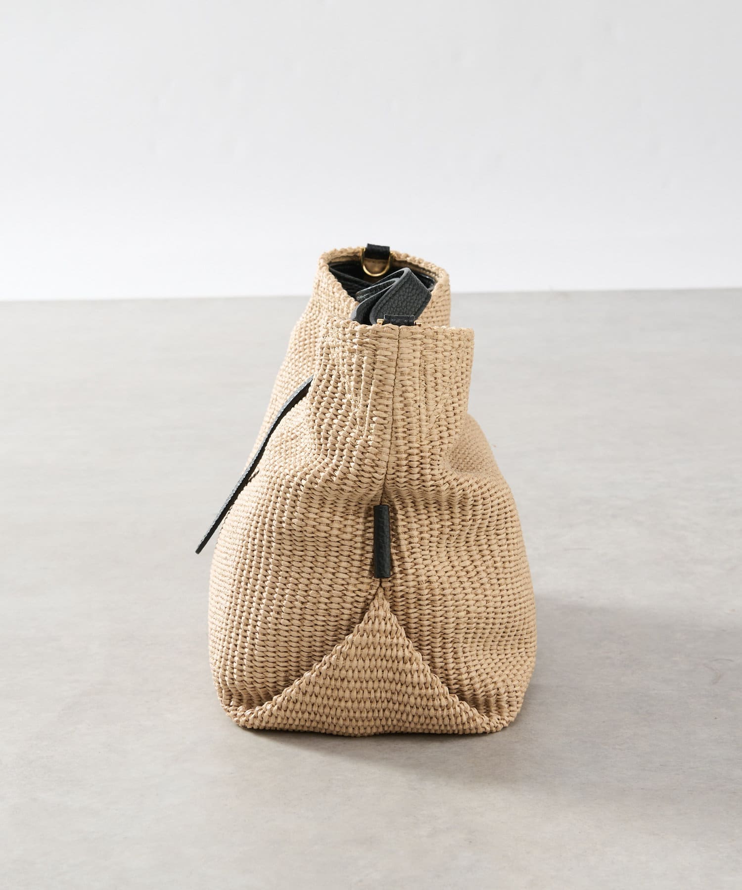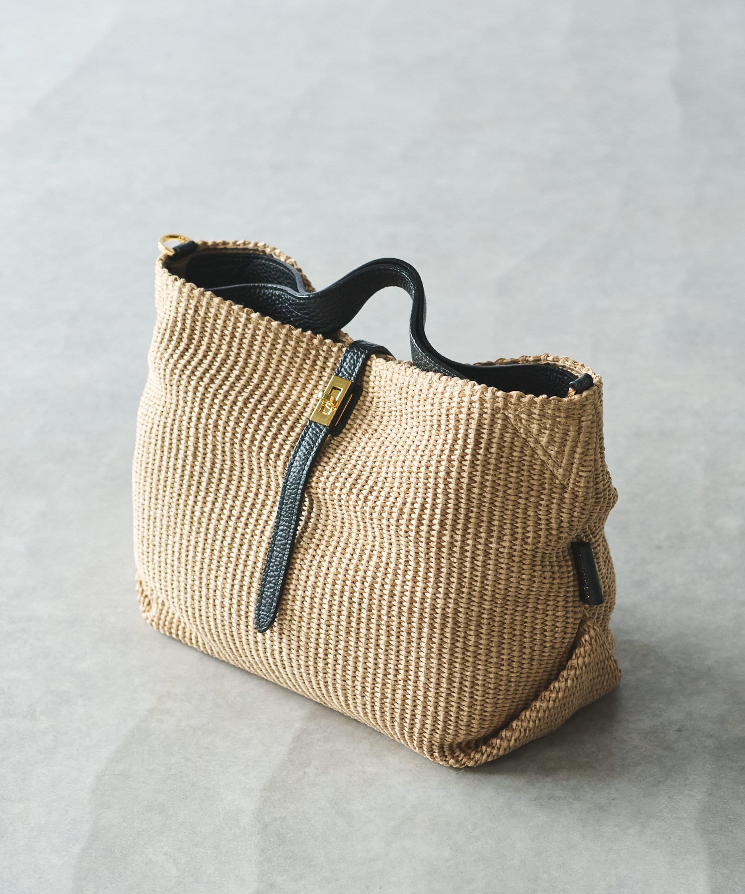 上品な風合いとカラーが魅力のイタリア製のラフィア調シートを使用したかごバッグ。