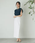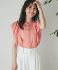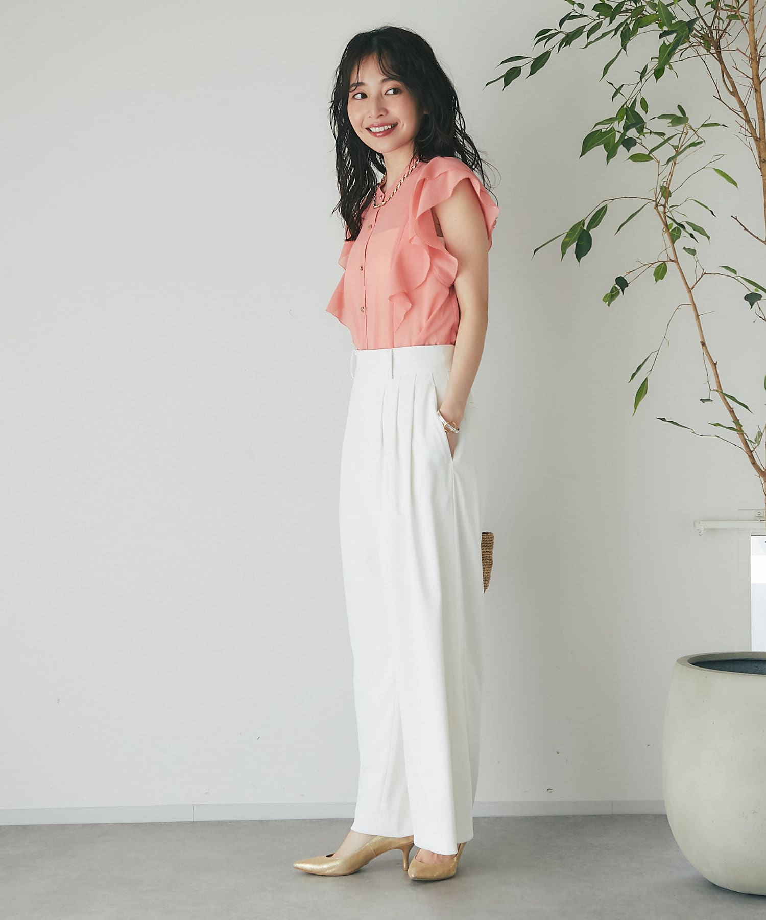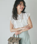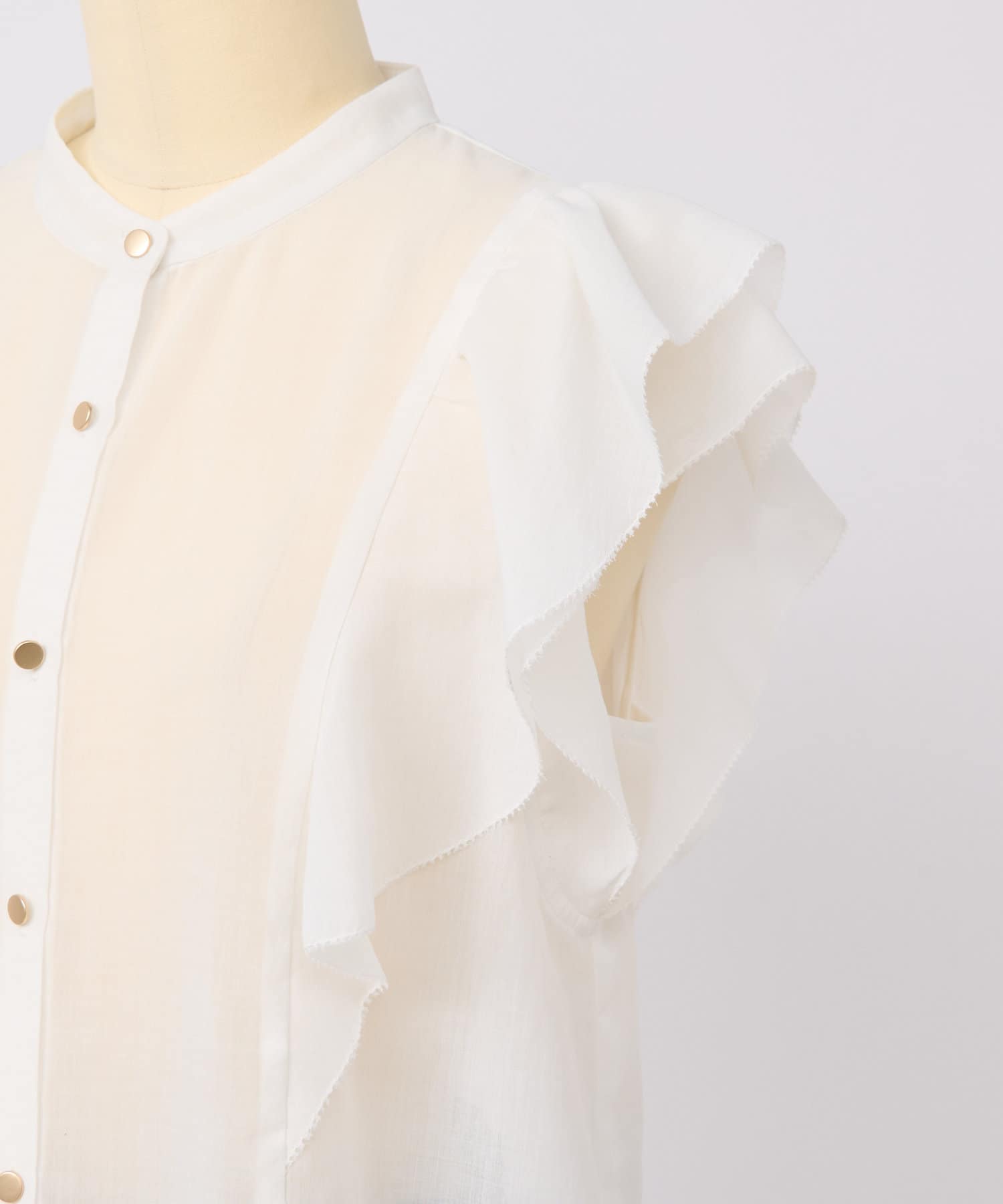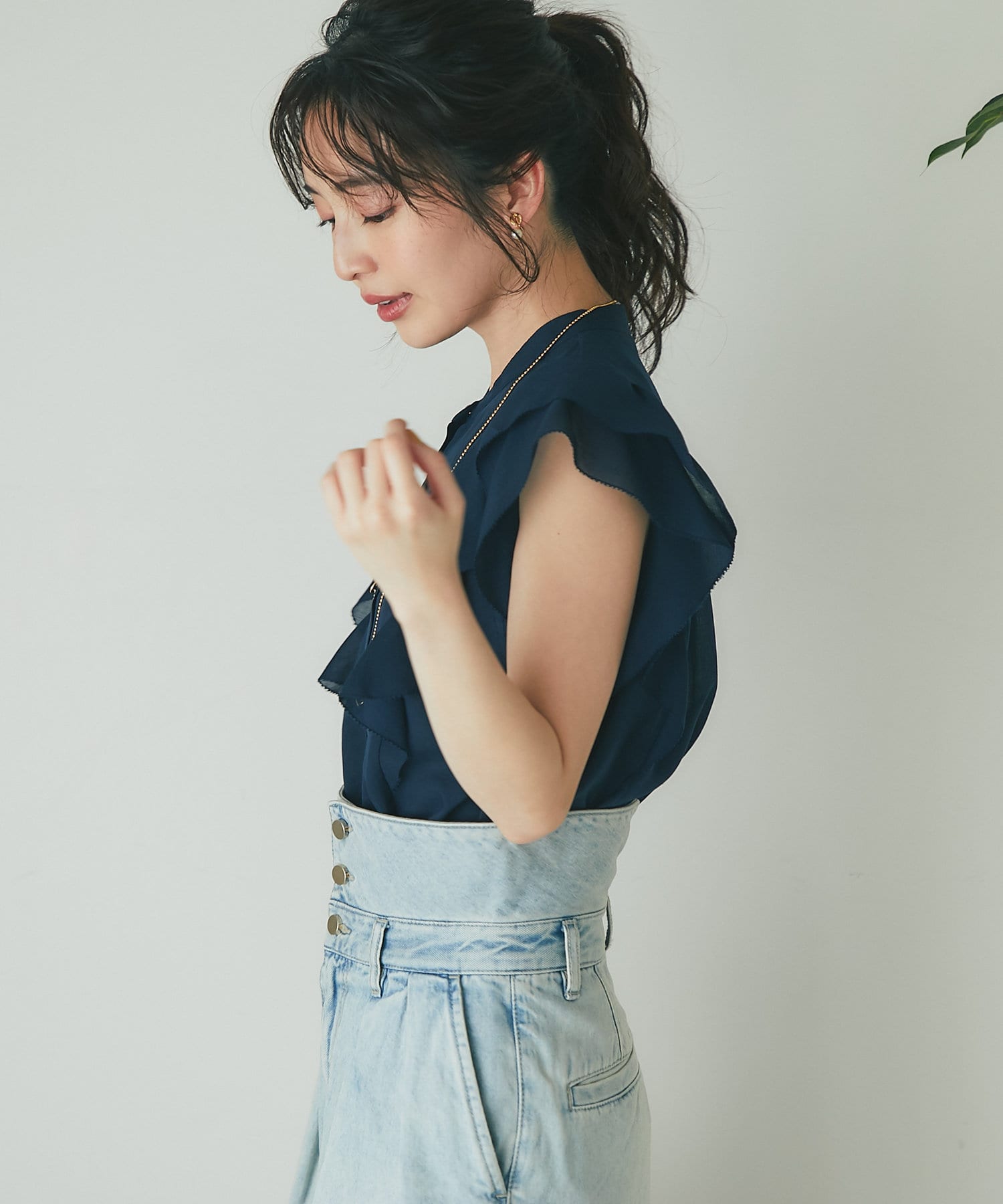 胸から肩にかけたふんわりしたフリル袖が女性らしい一枚です。