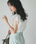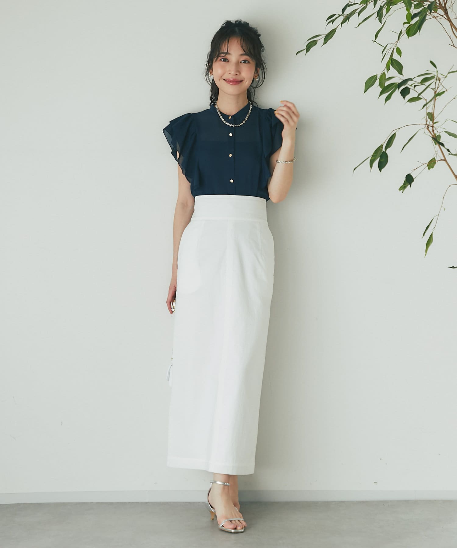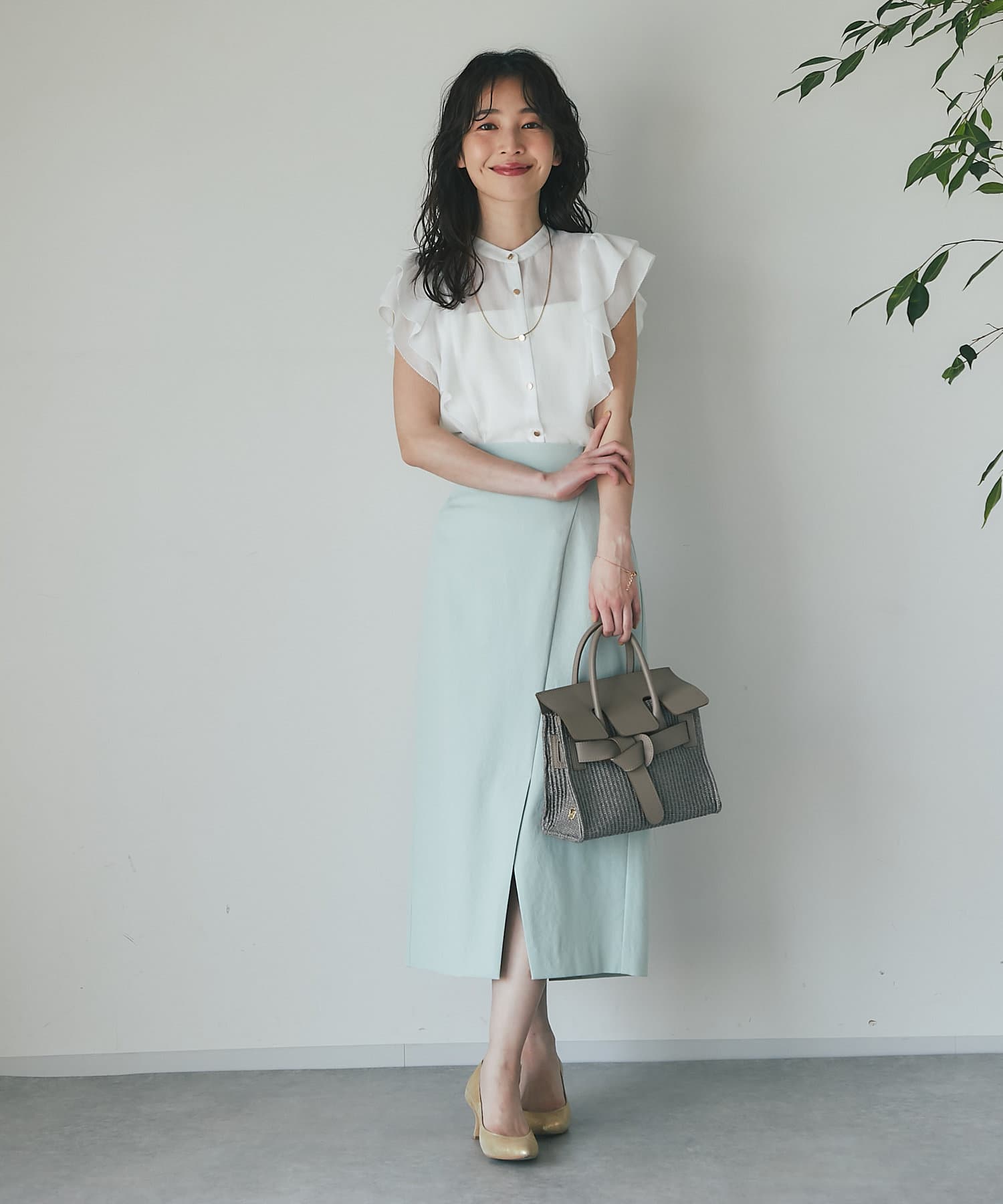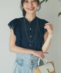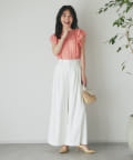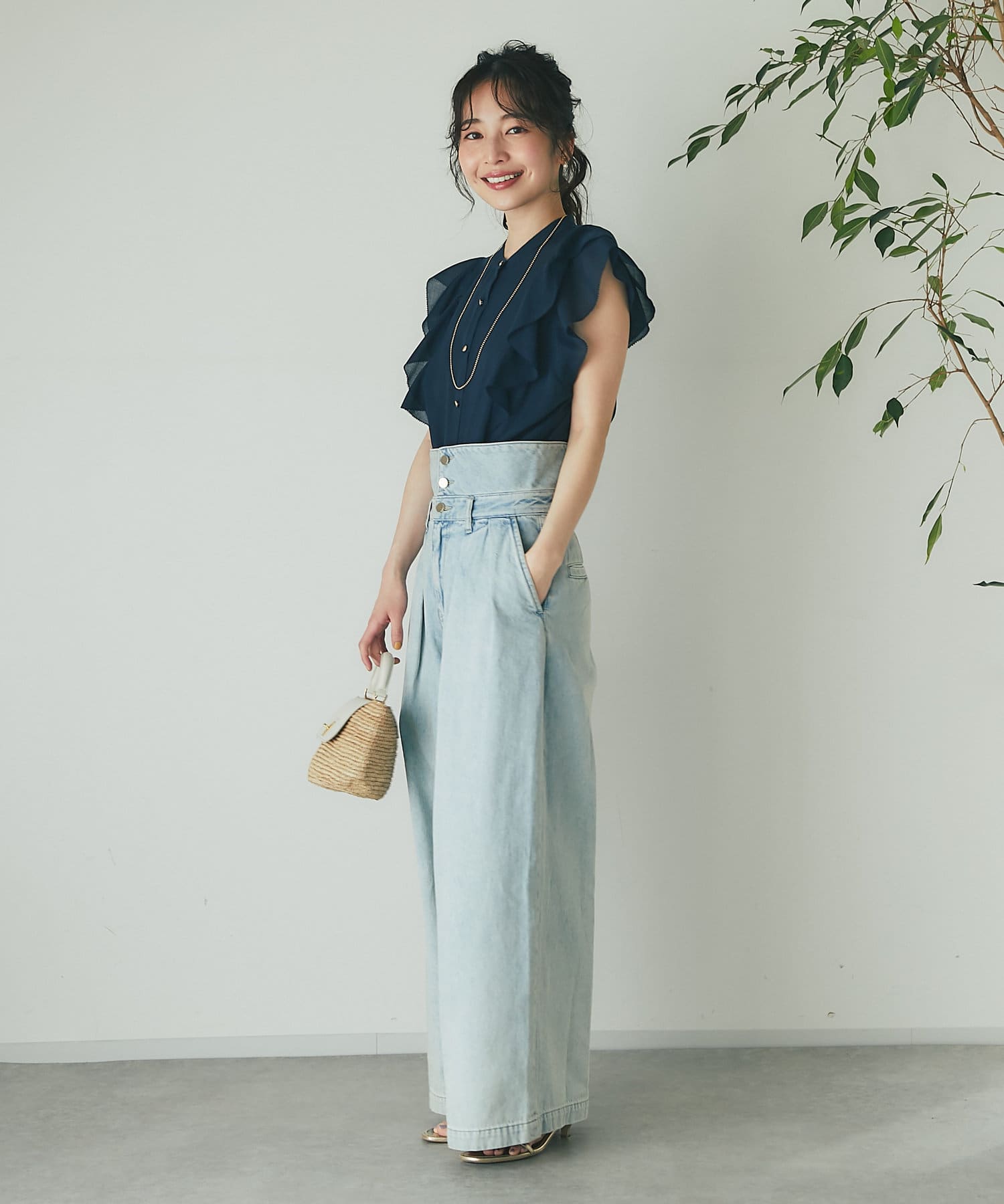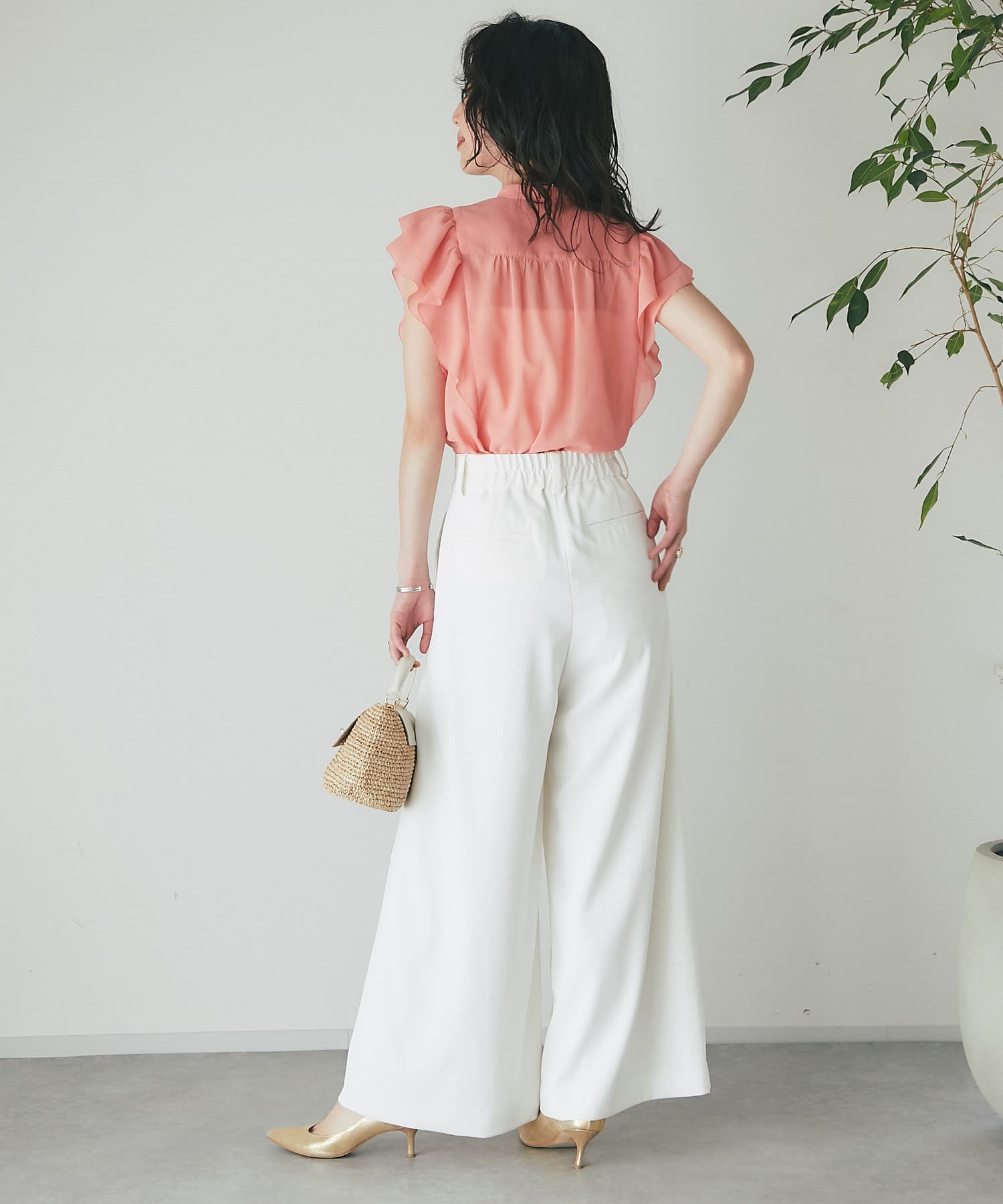 胸から肩にかけたふんわりしたフリル袖が女性らしい一枚です。