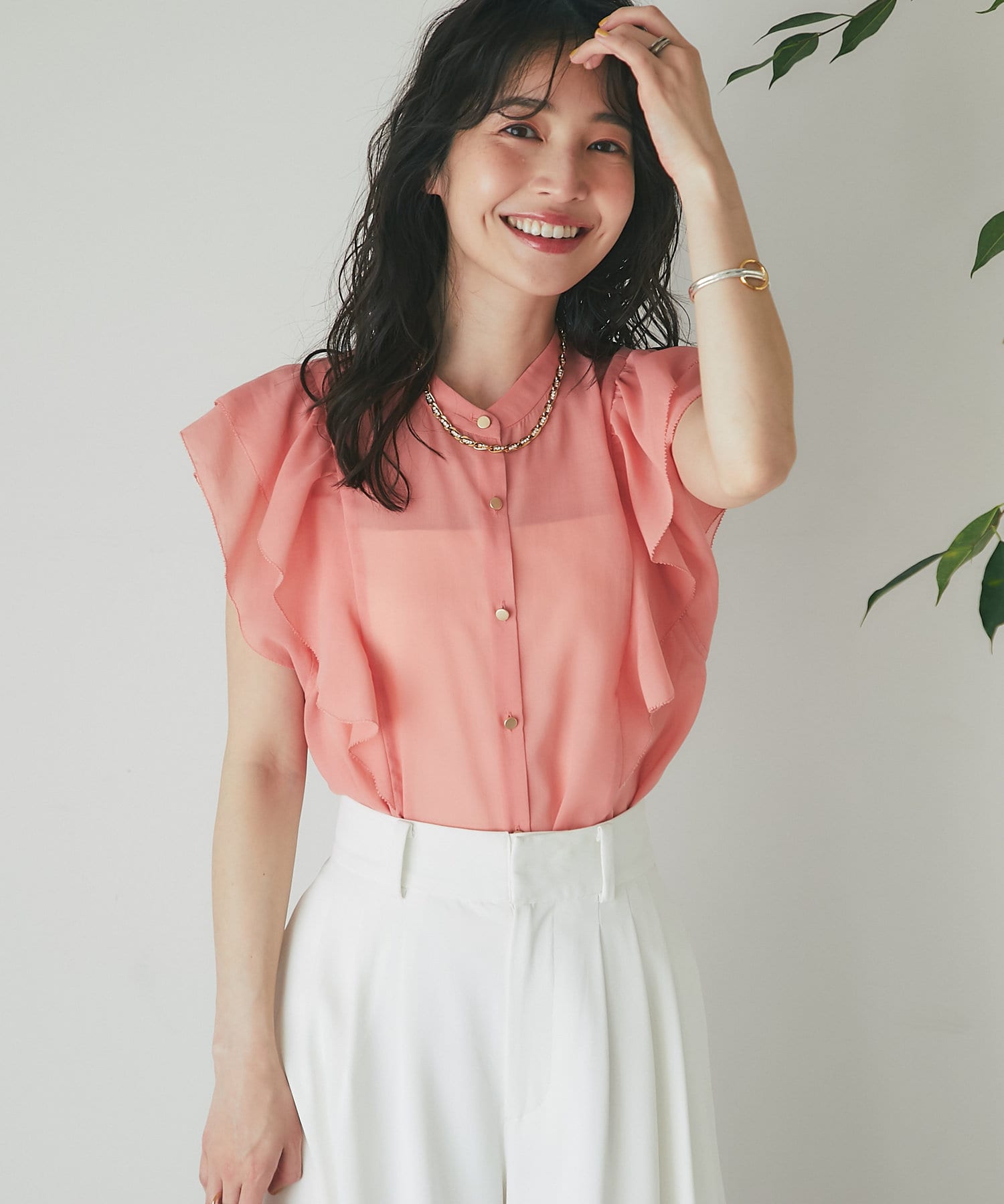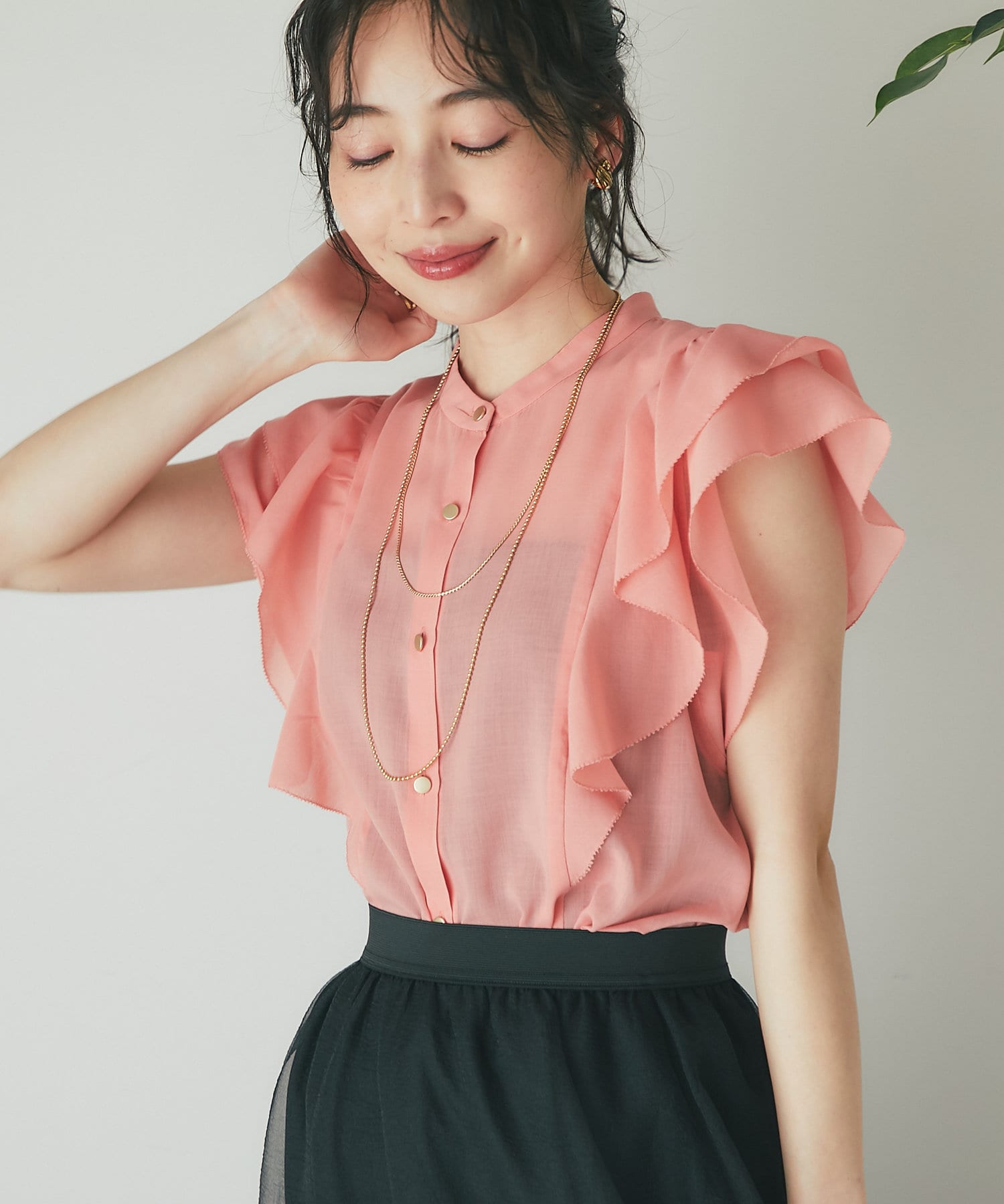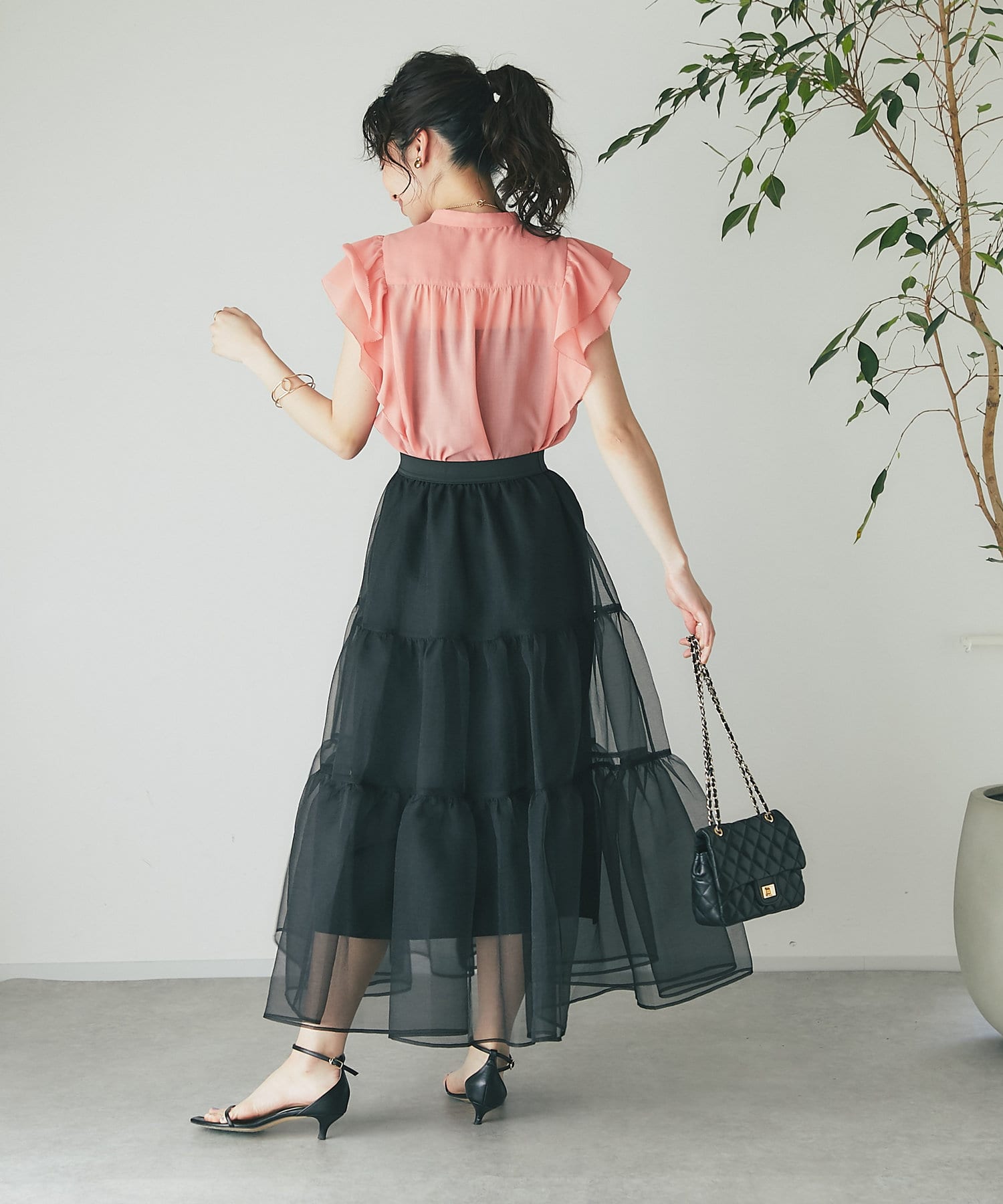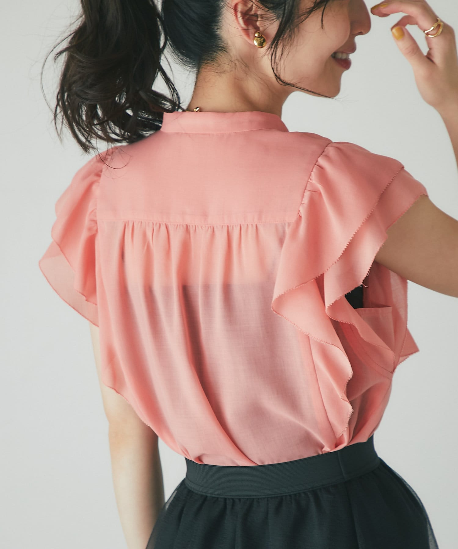 ソフトオーガンジーのしなやかなフリルブラウス。