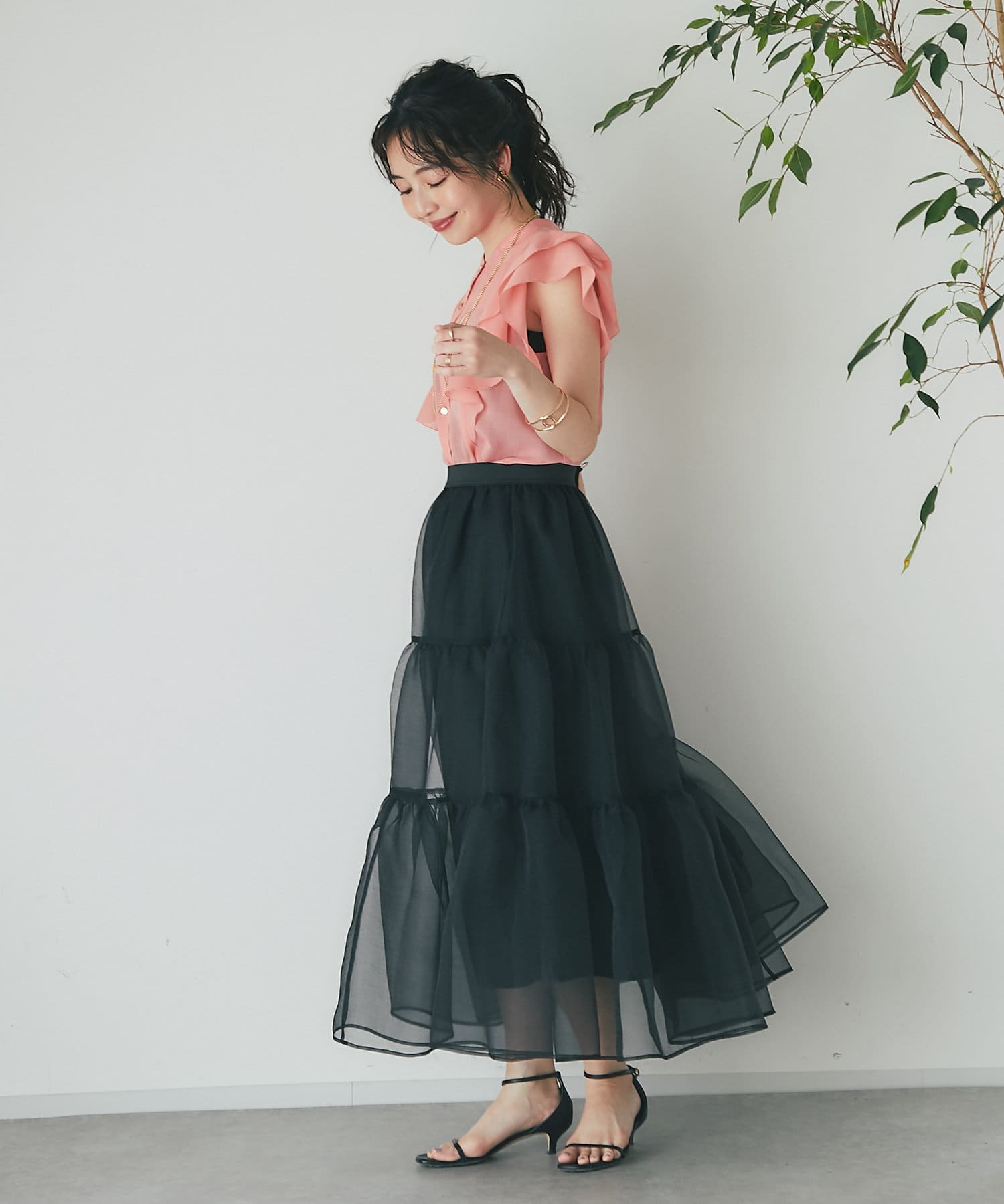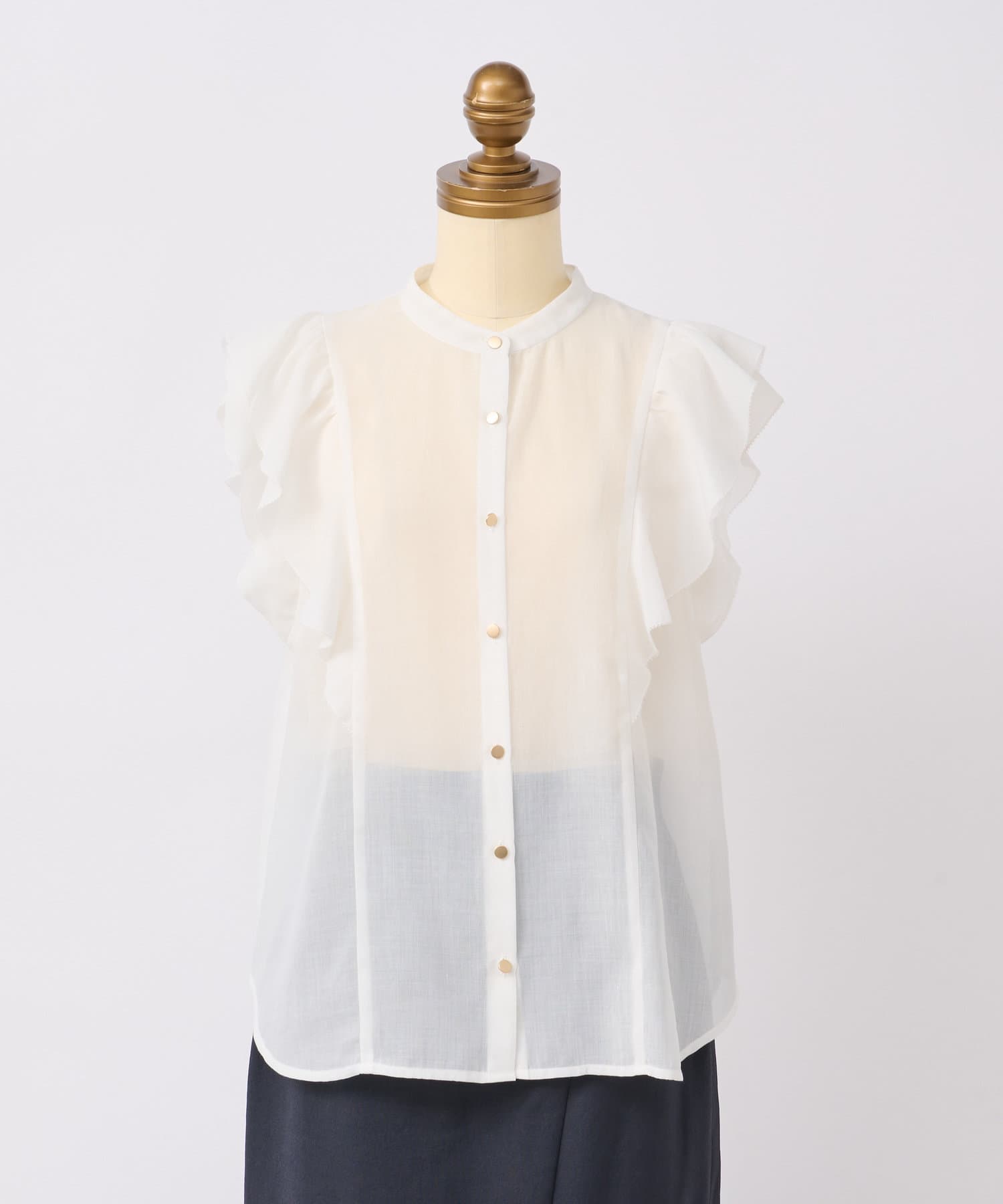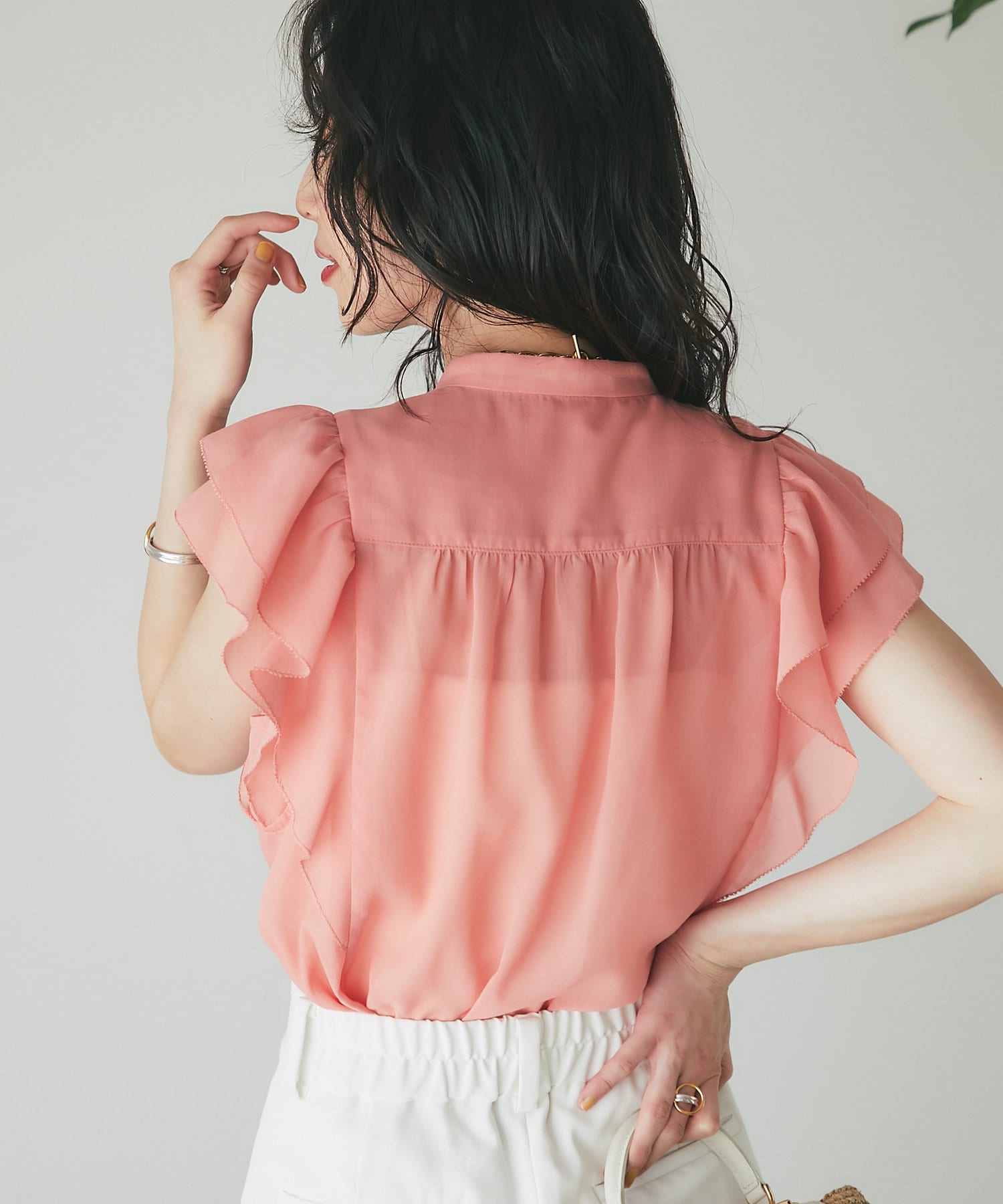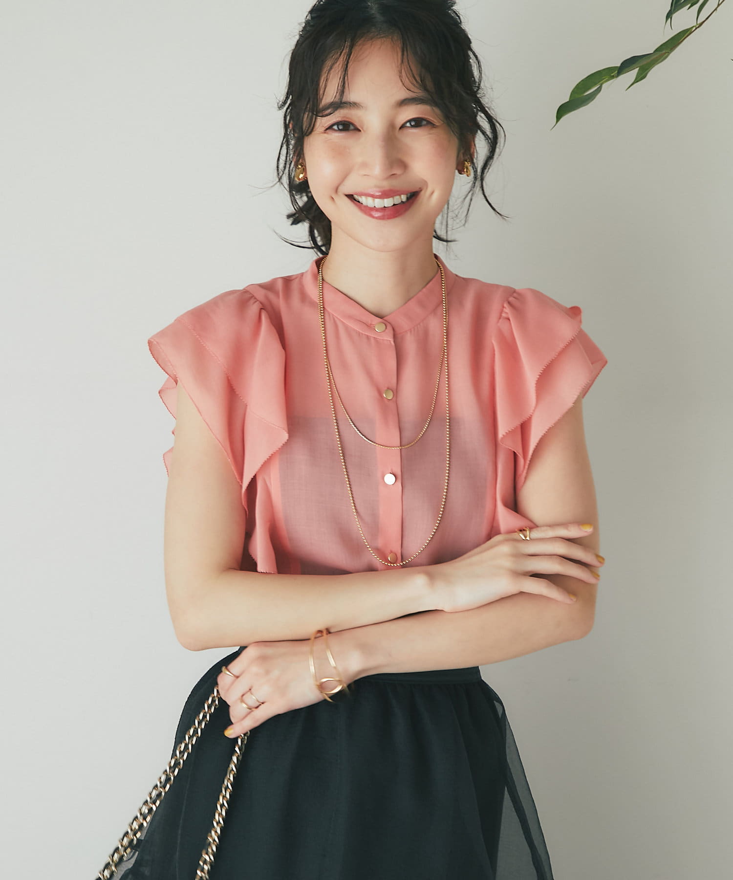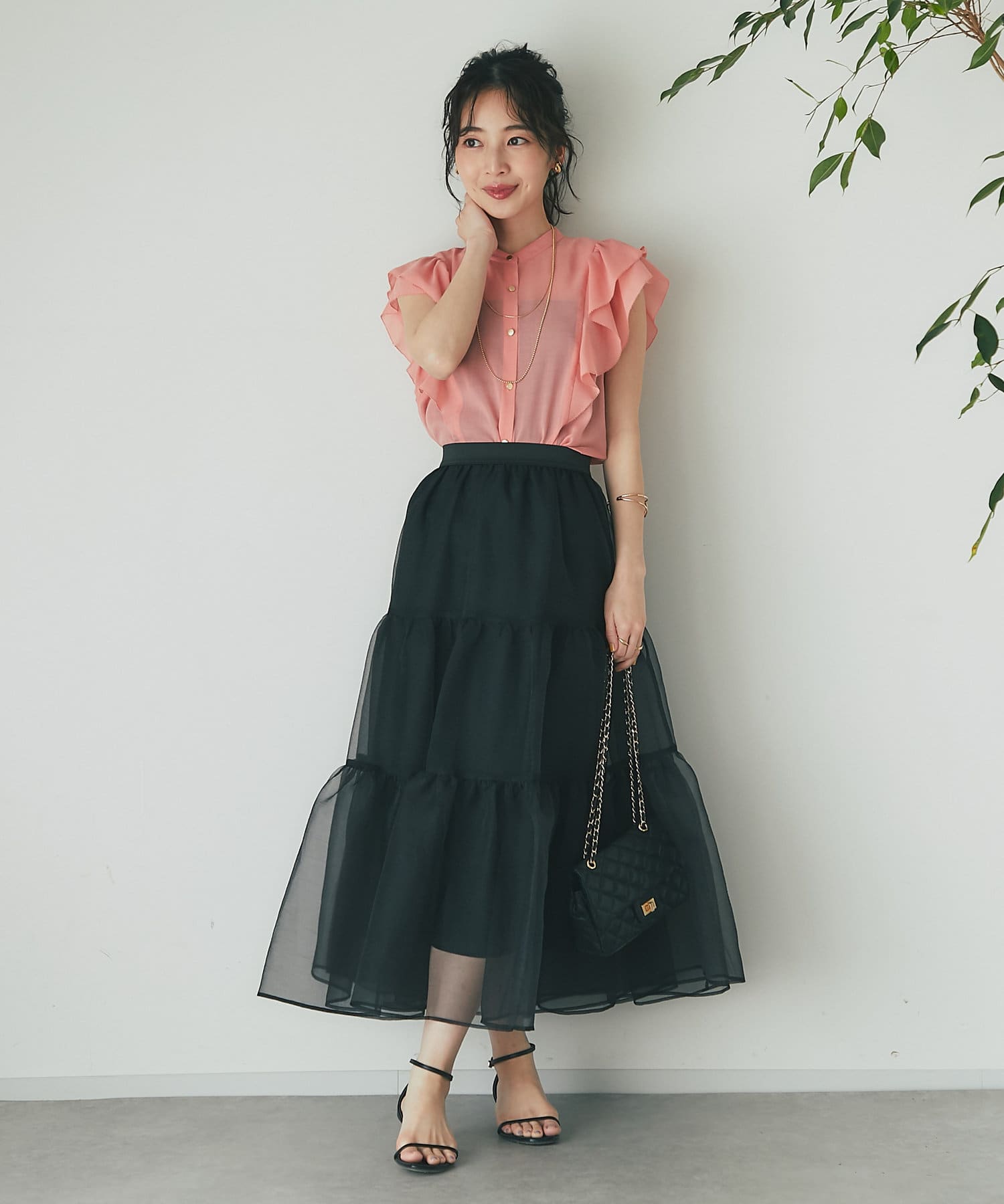 ソフトオーガンジーのしなやかなフリルブラウス。