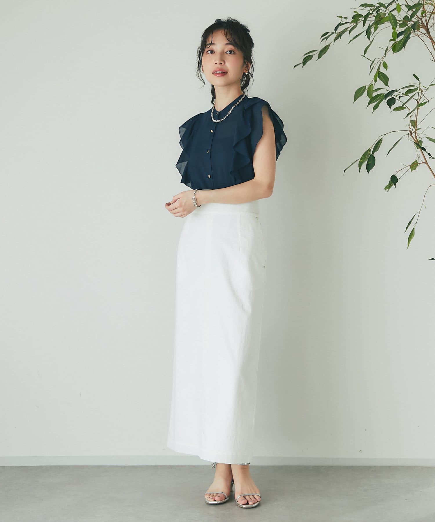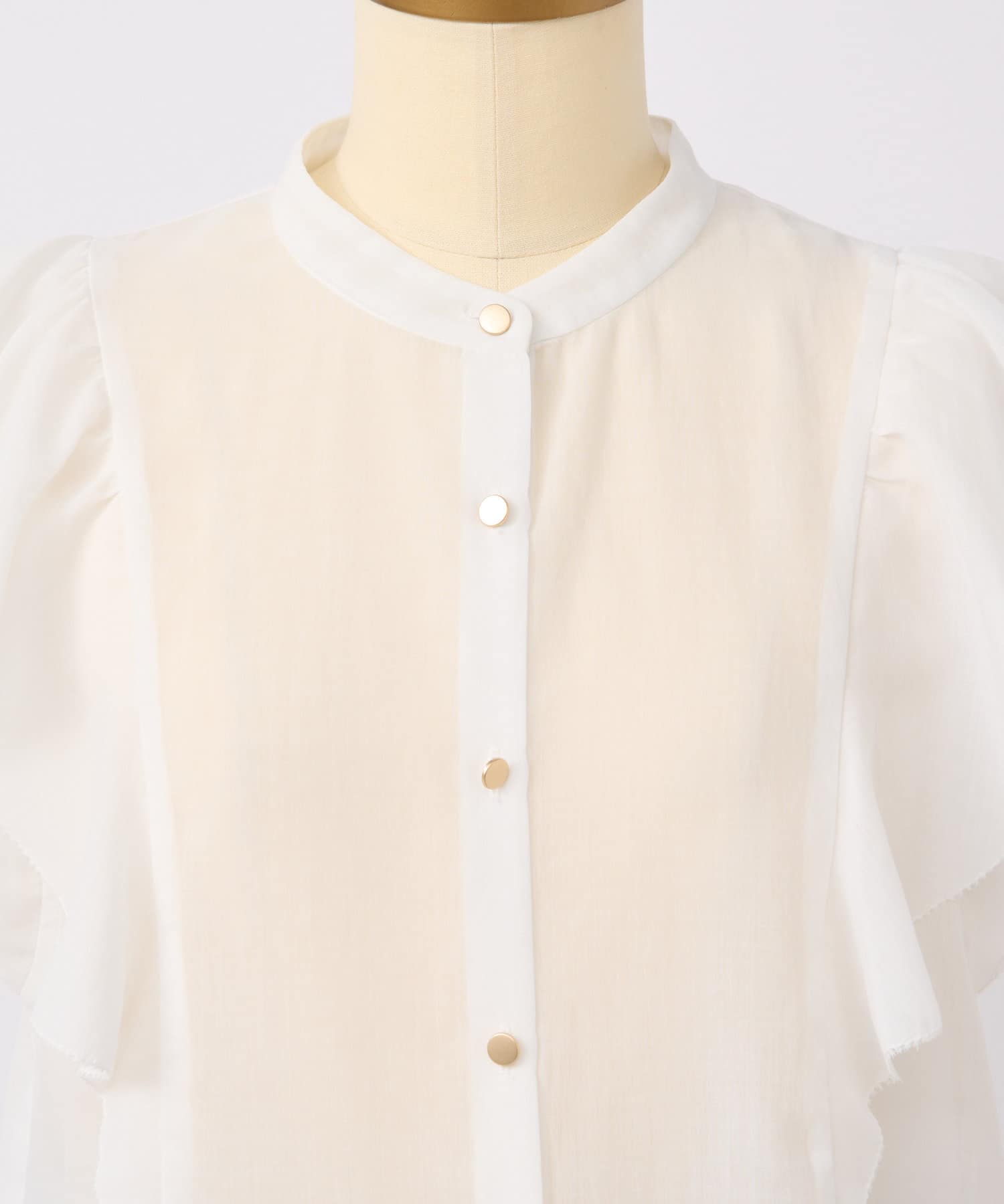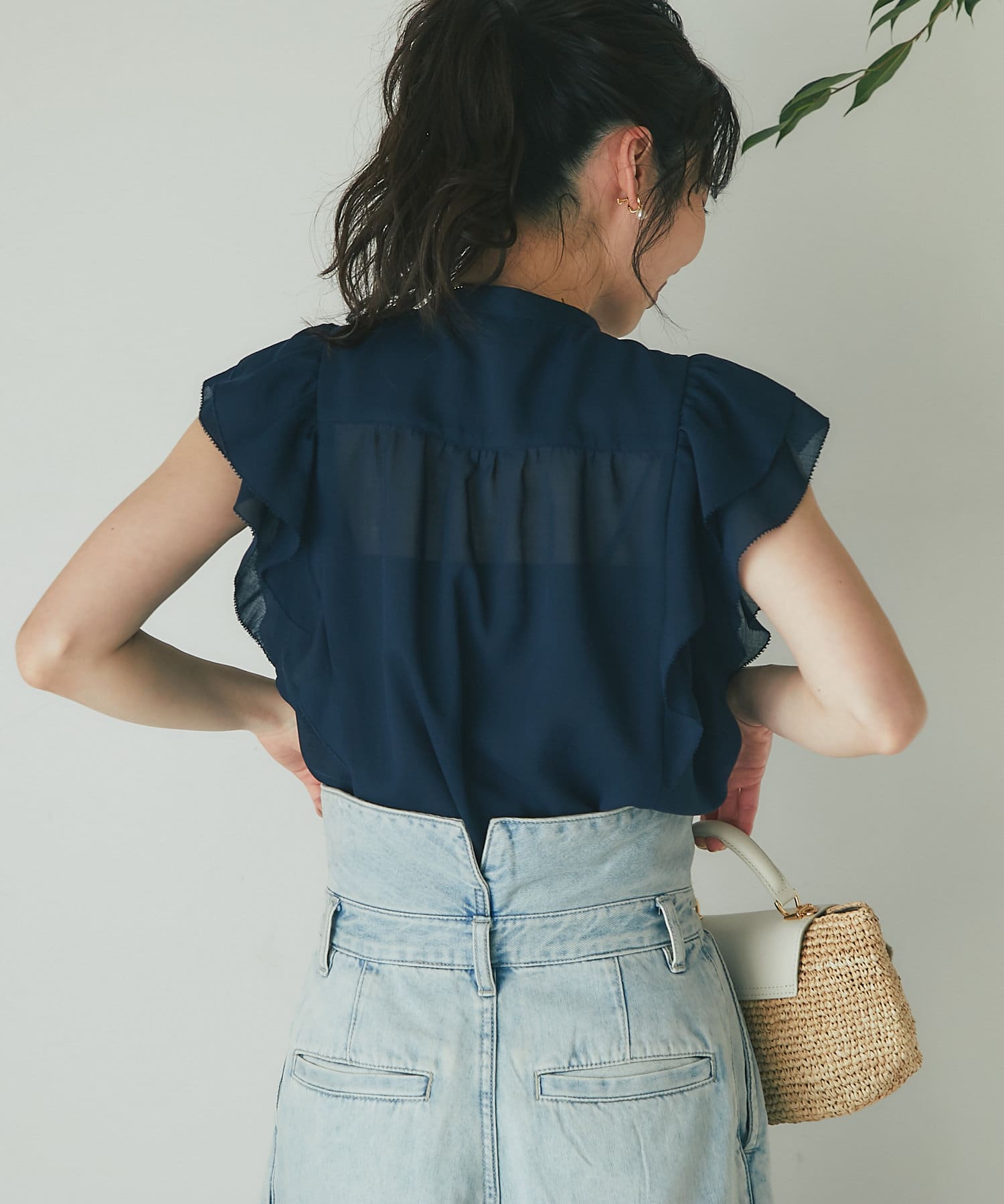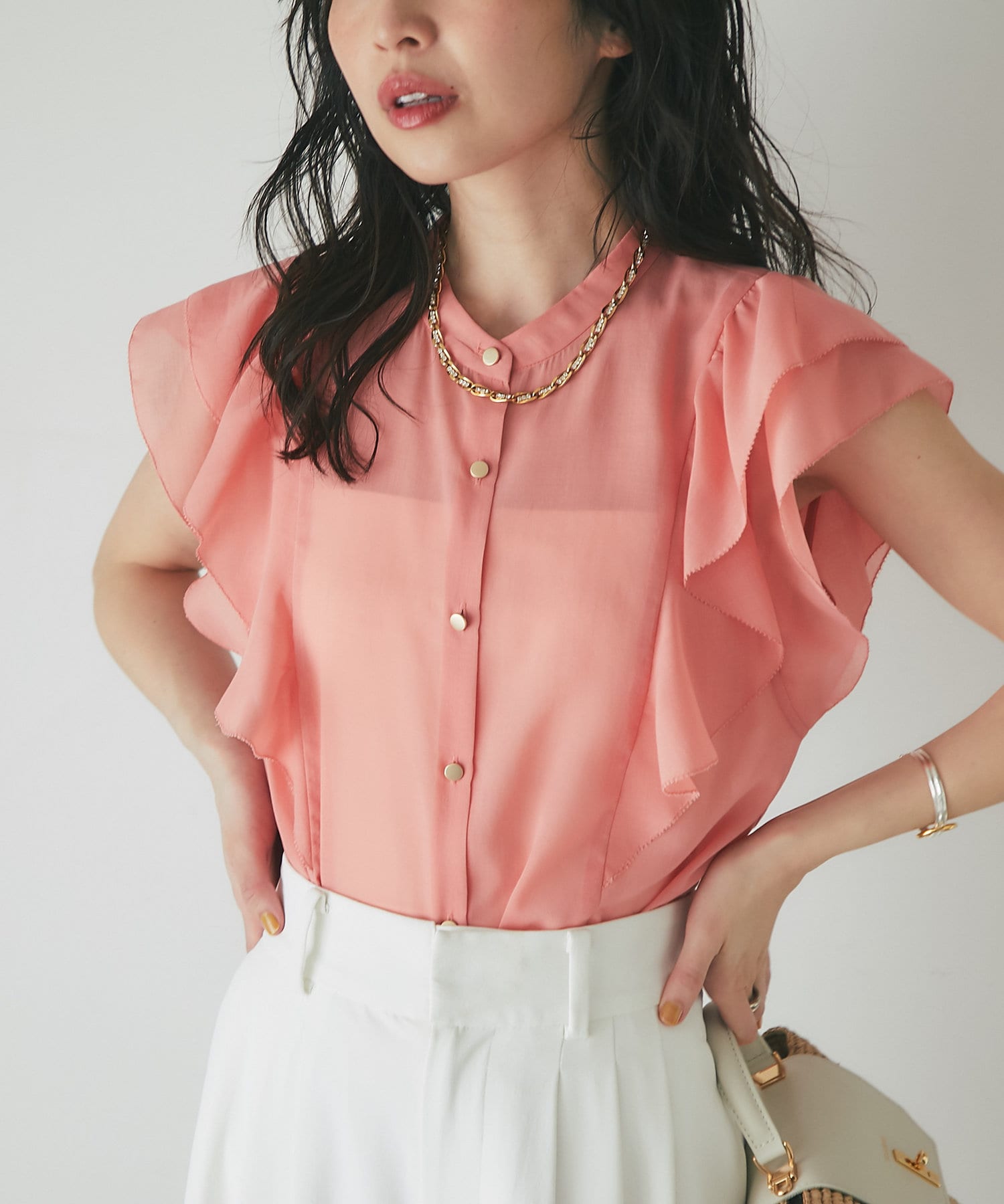ソフトオーガンジーのしなやかなフリルブラウス。