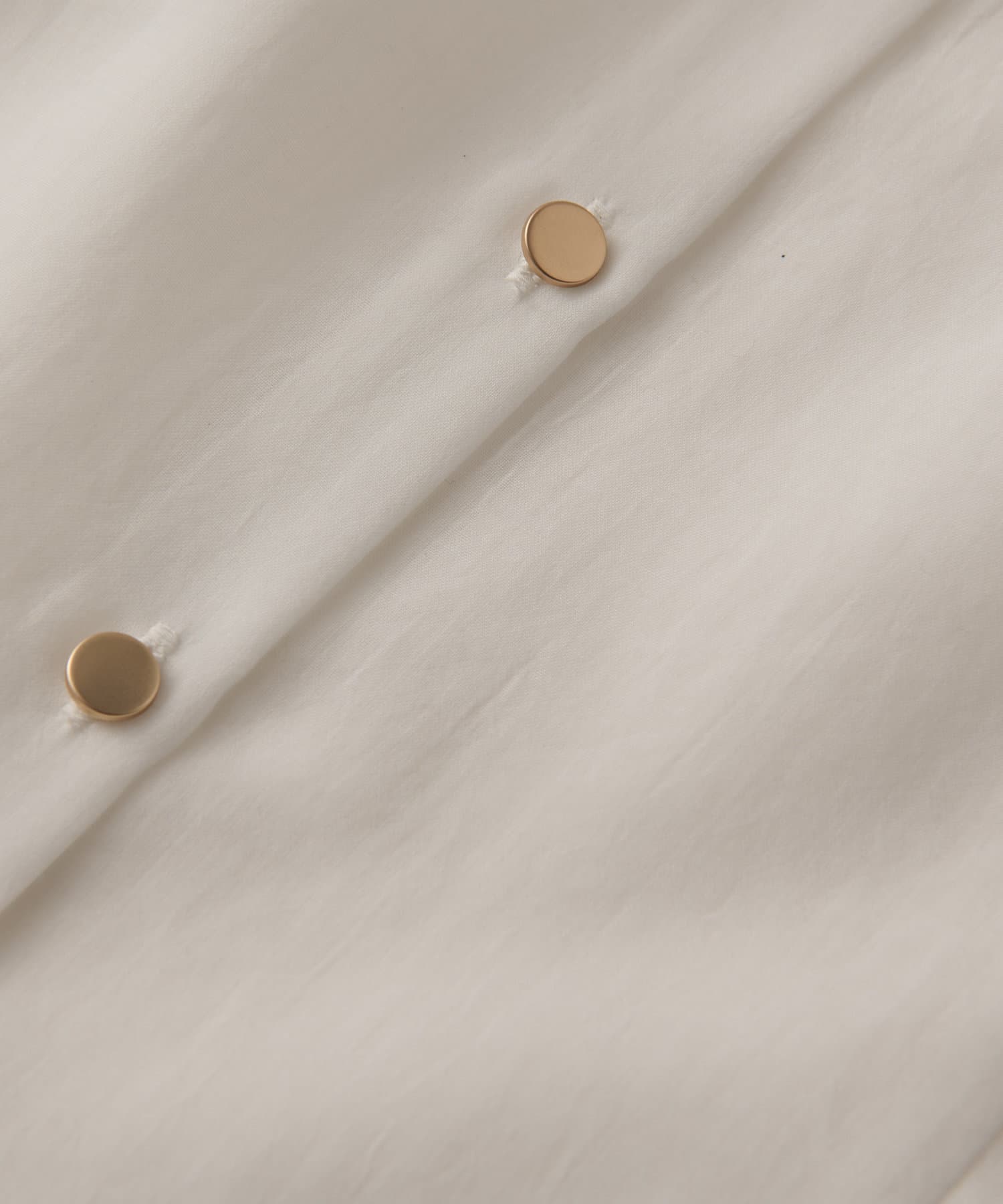 スタンドネックにゴールドボタンがきちんと感があるのでオフィスコーデにもピッタリ。