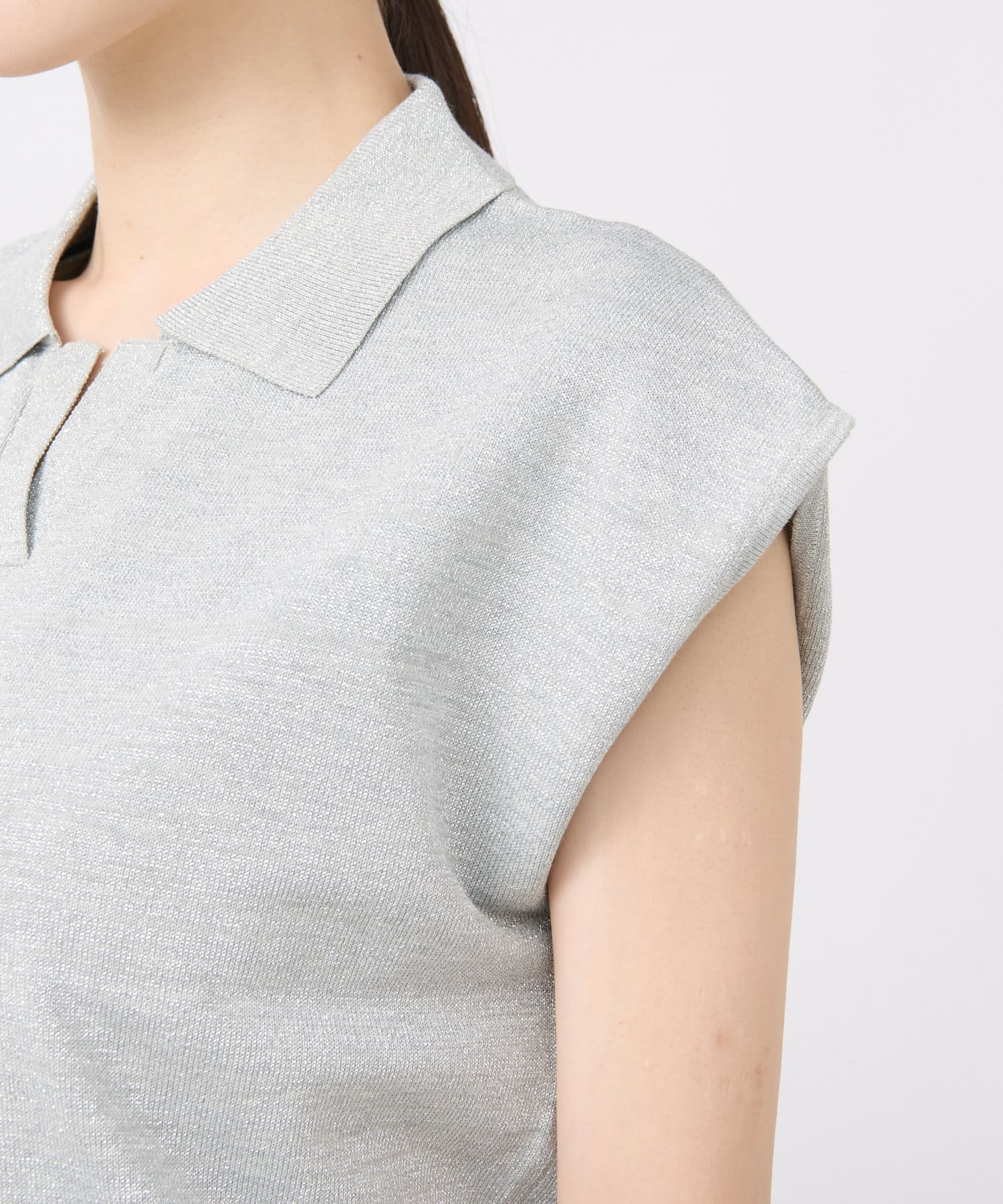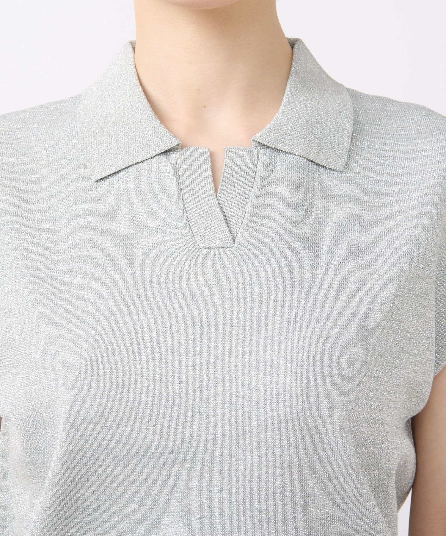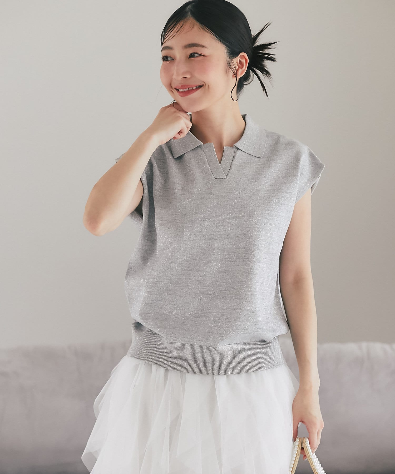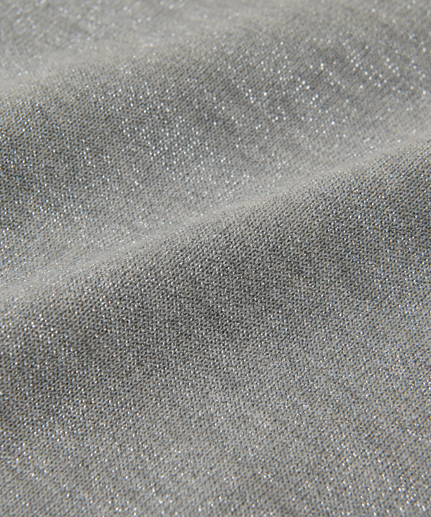 襟元のすっきりしたデザインとラメの上品さで、カジュアルでもキレイ目に着こなせます。