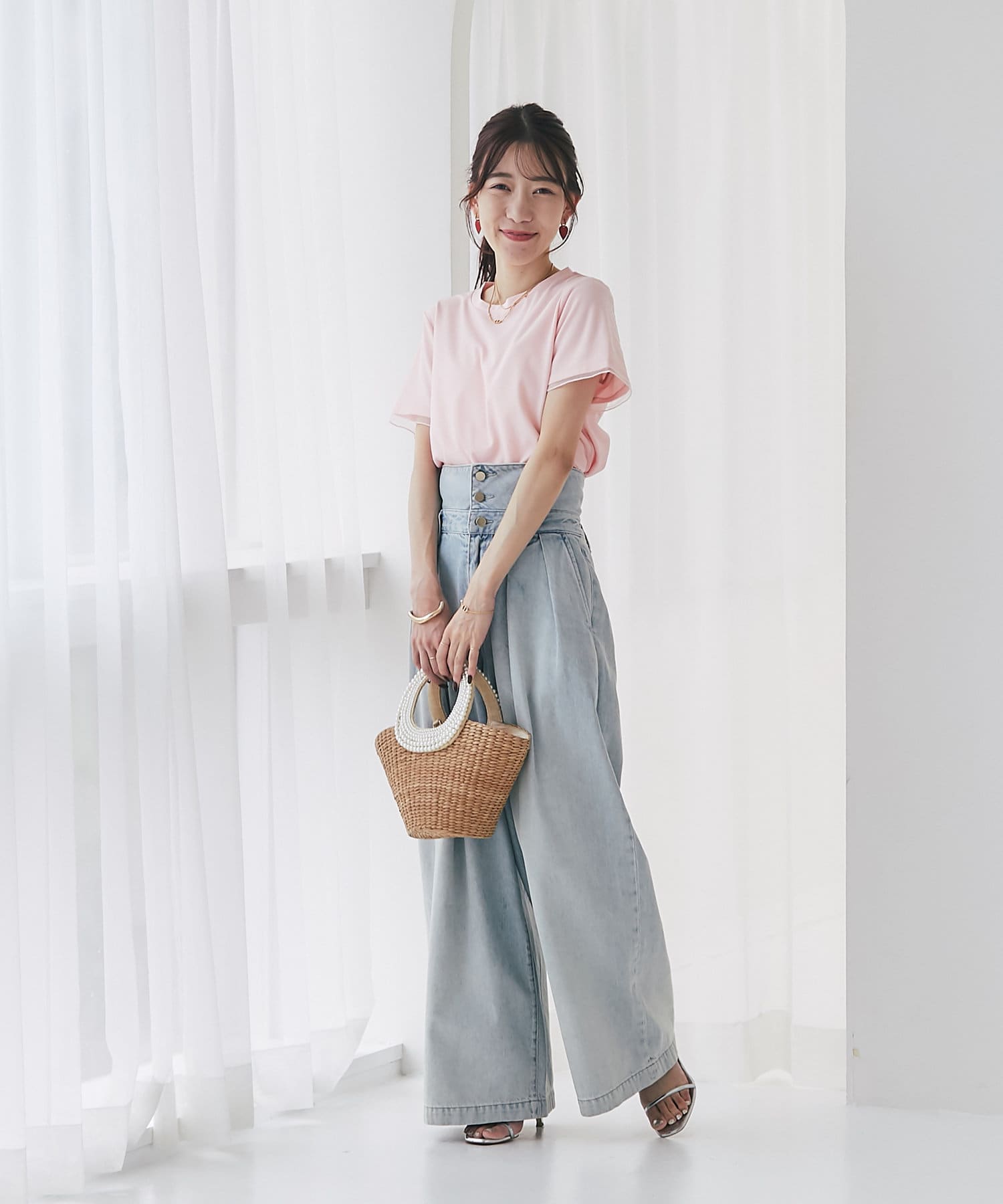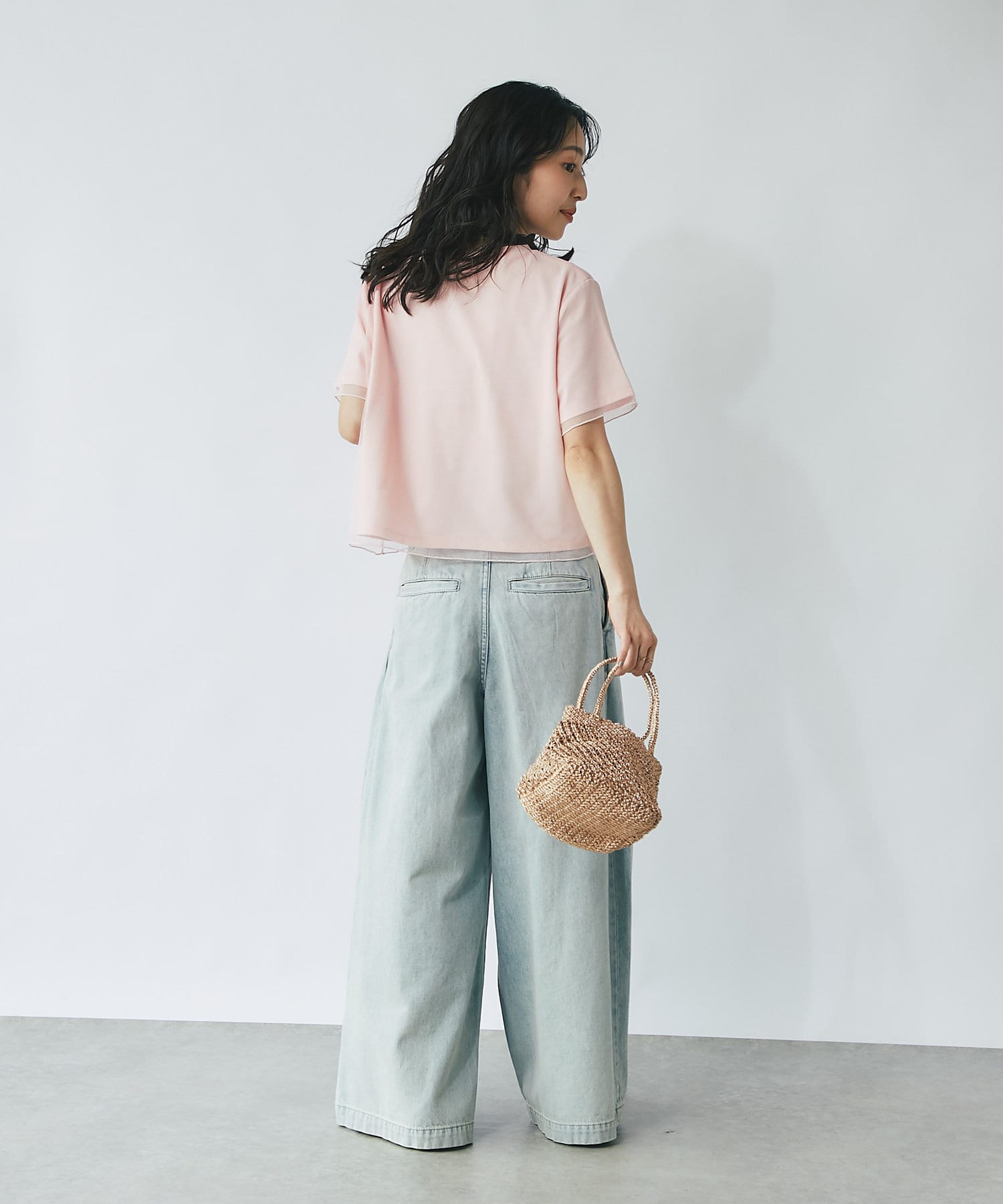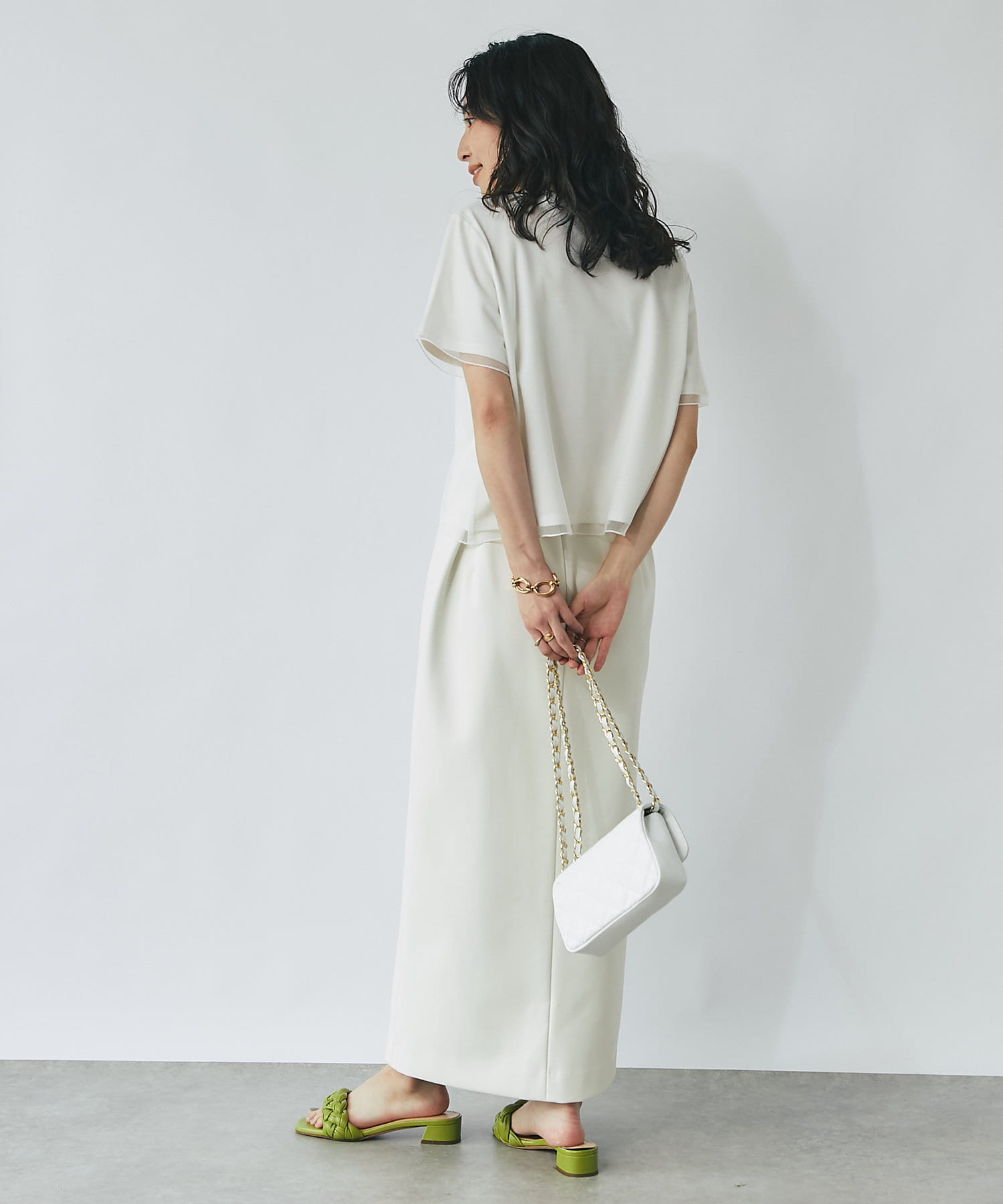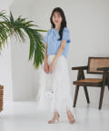 シンプルなので、オフィススタイルからデイリースタイルまでボトムを選ばず着用できます。