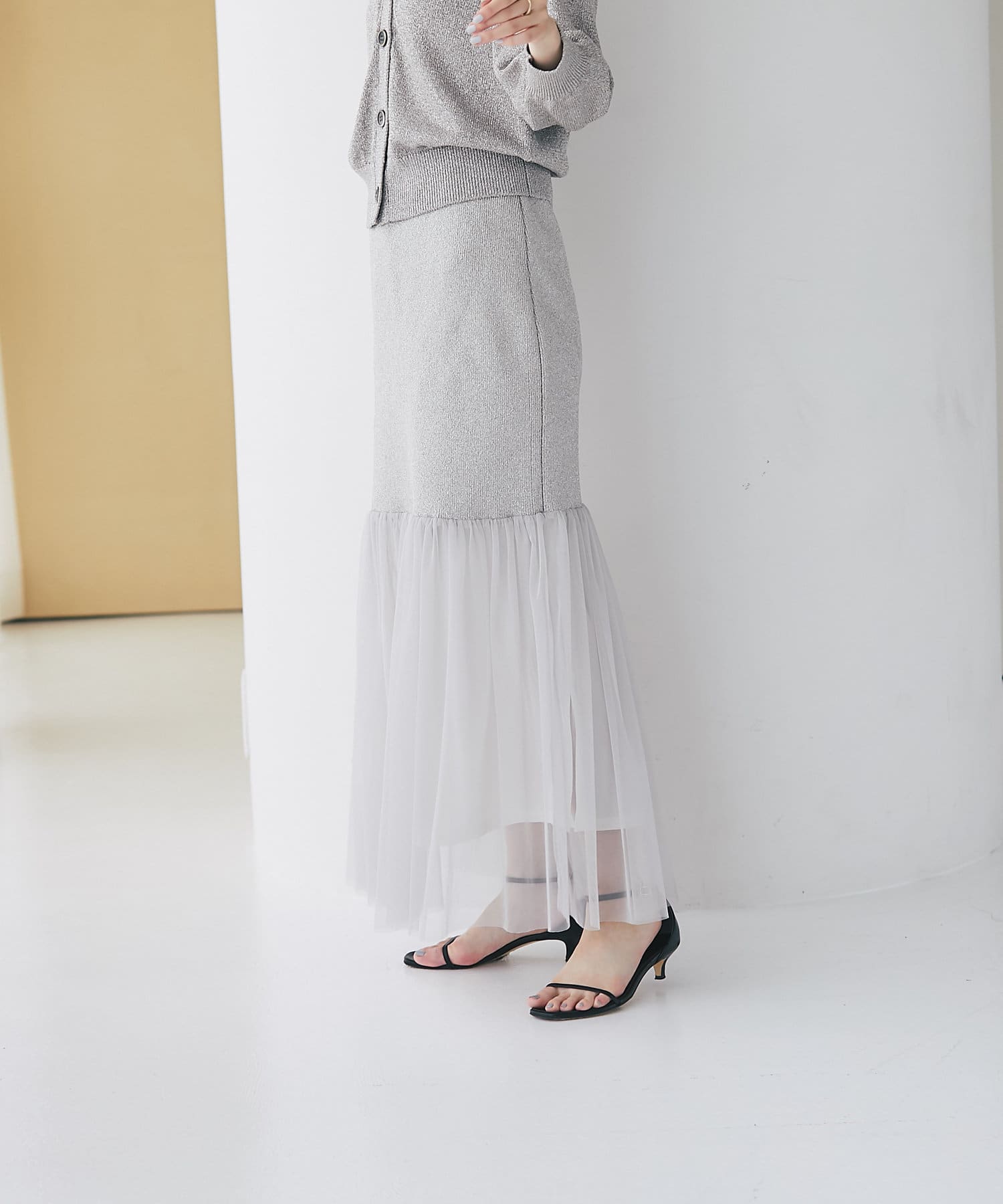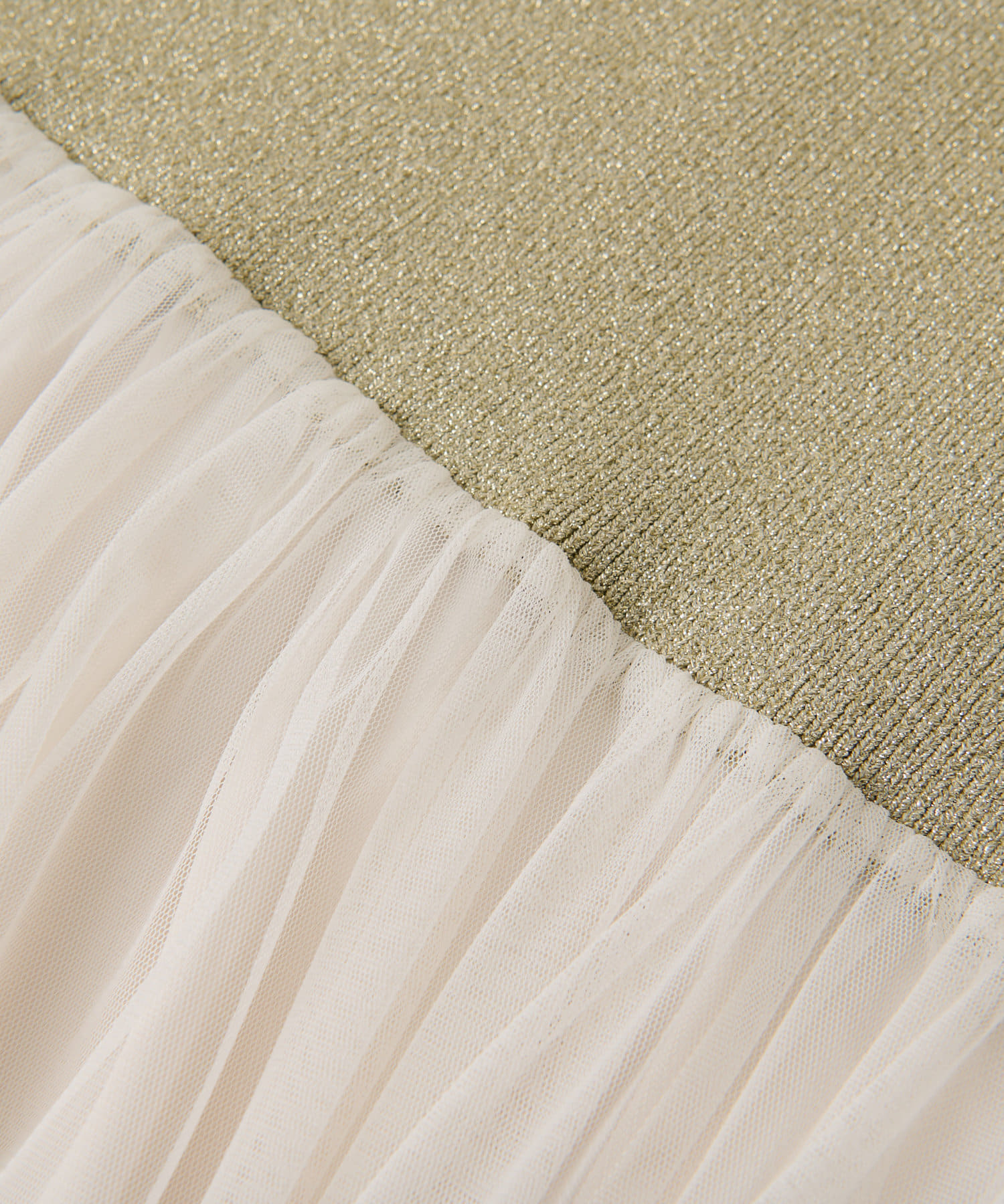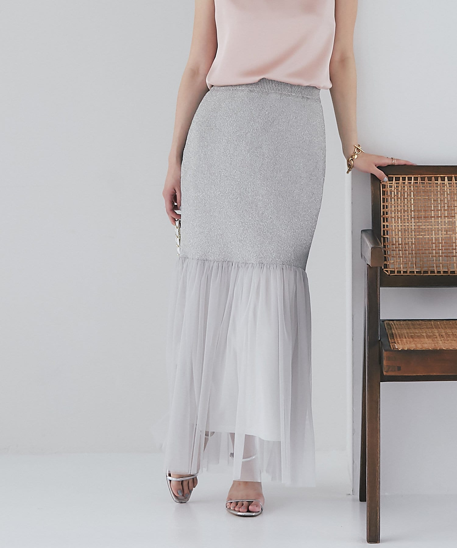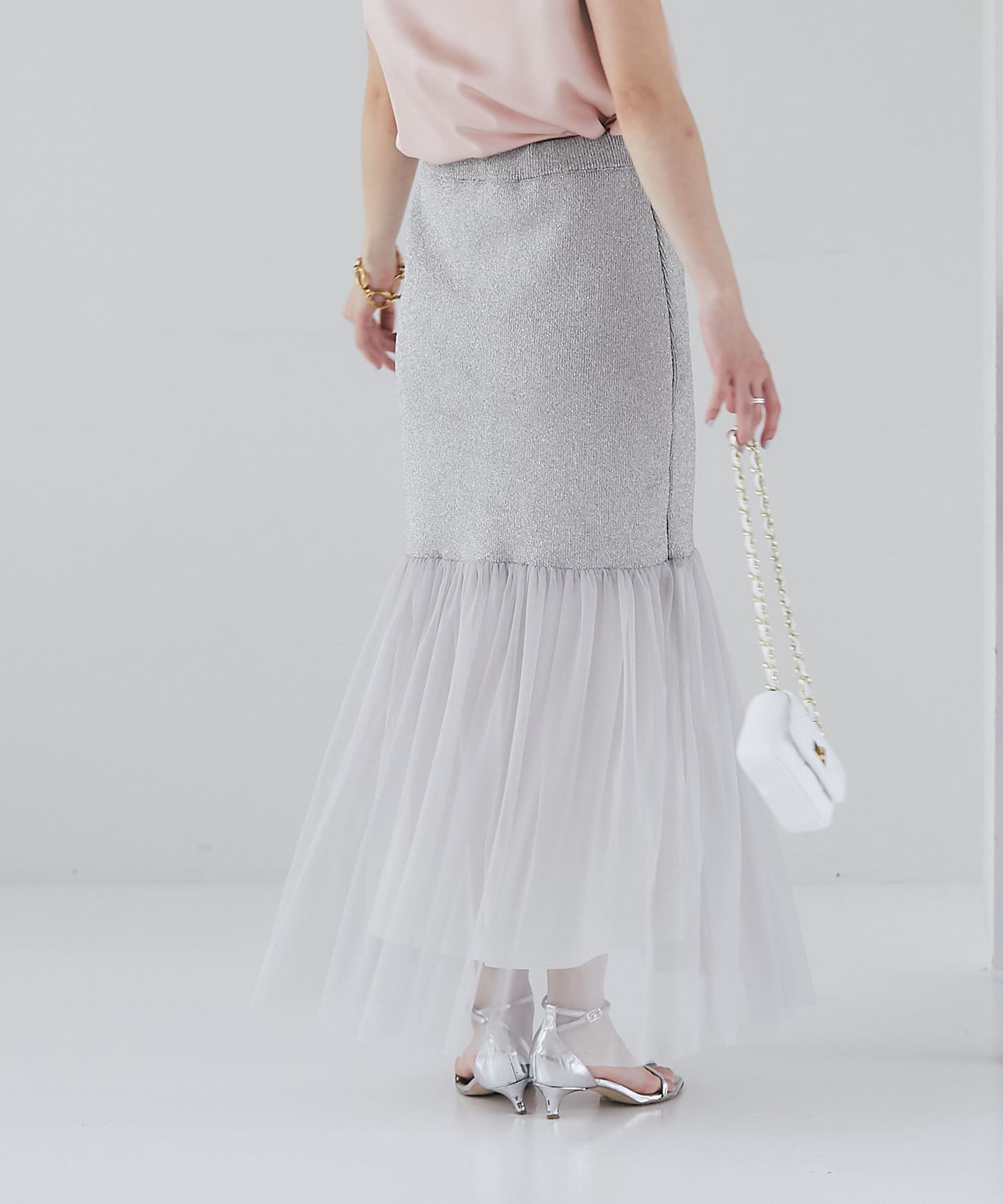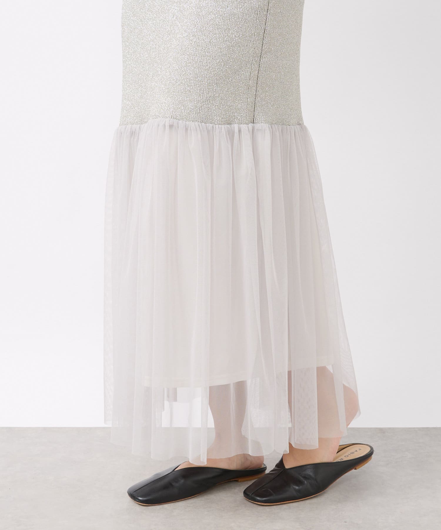 チュールをレイヤードしたような異素材ドッキングスカート。
