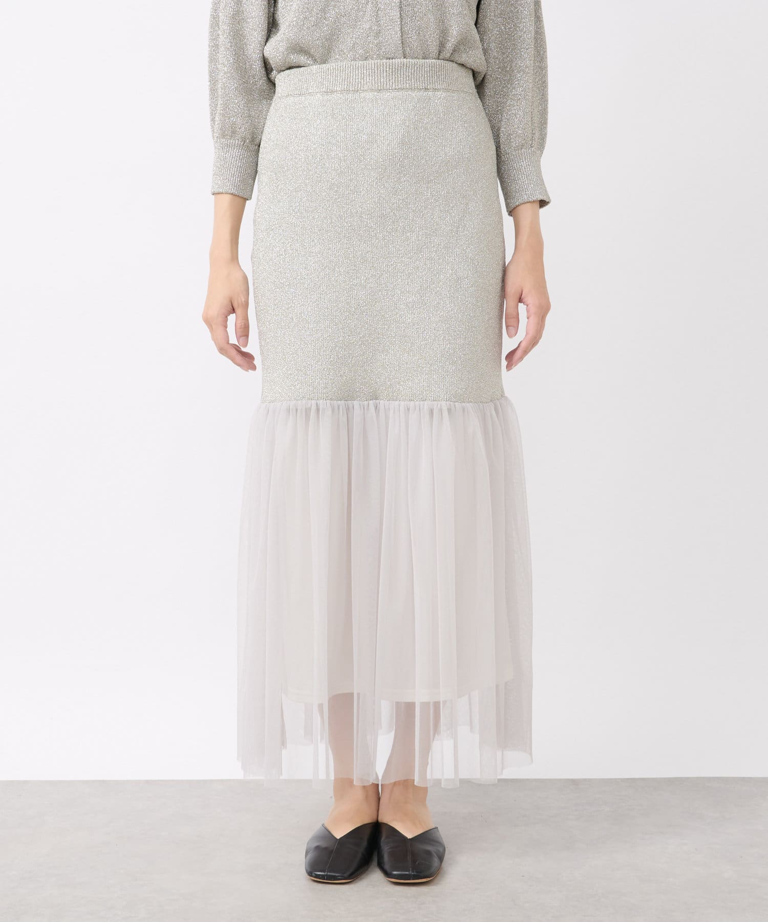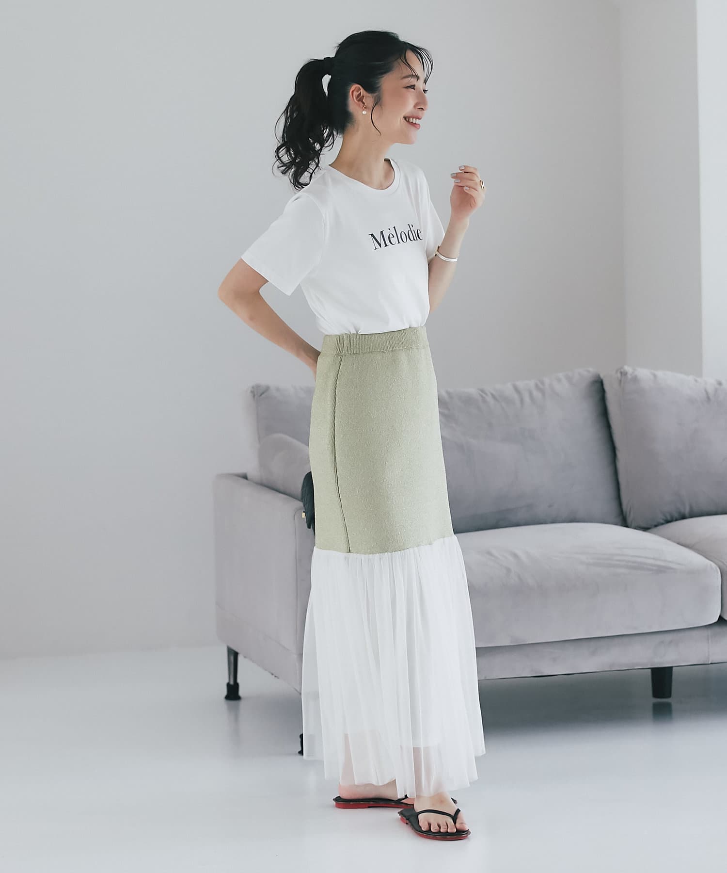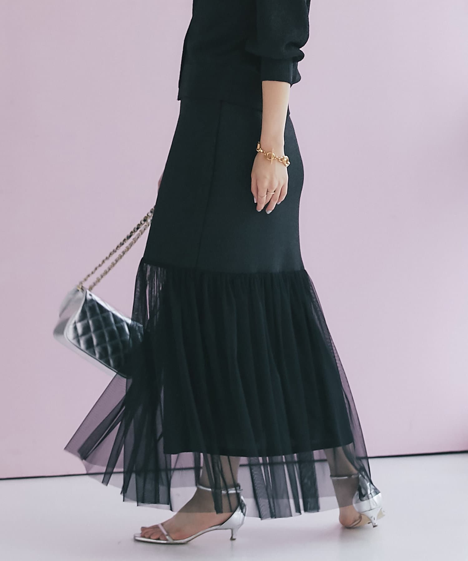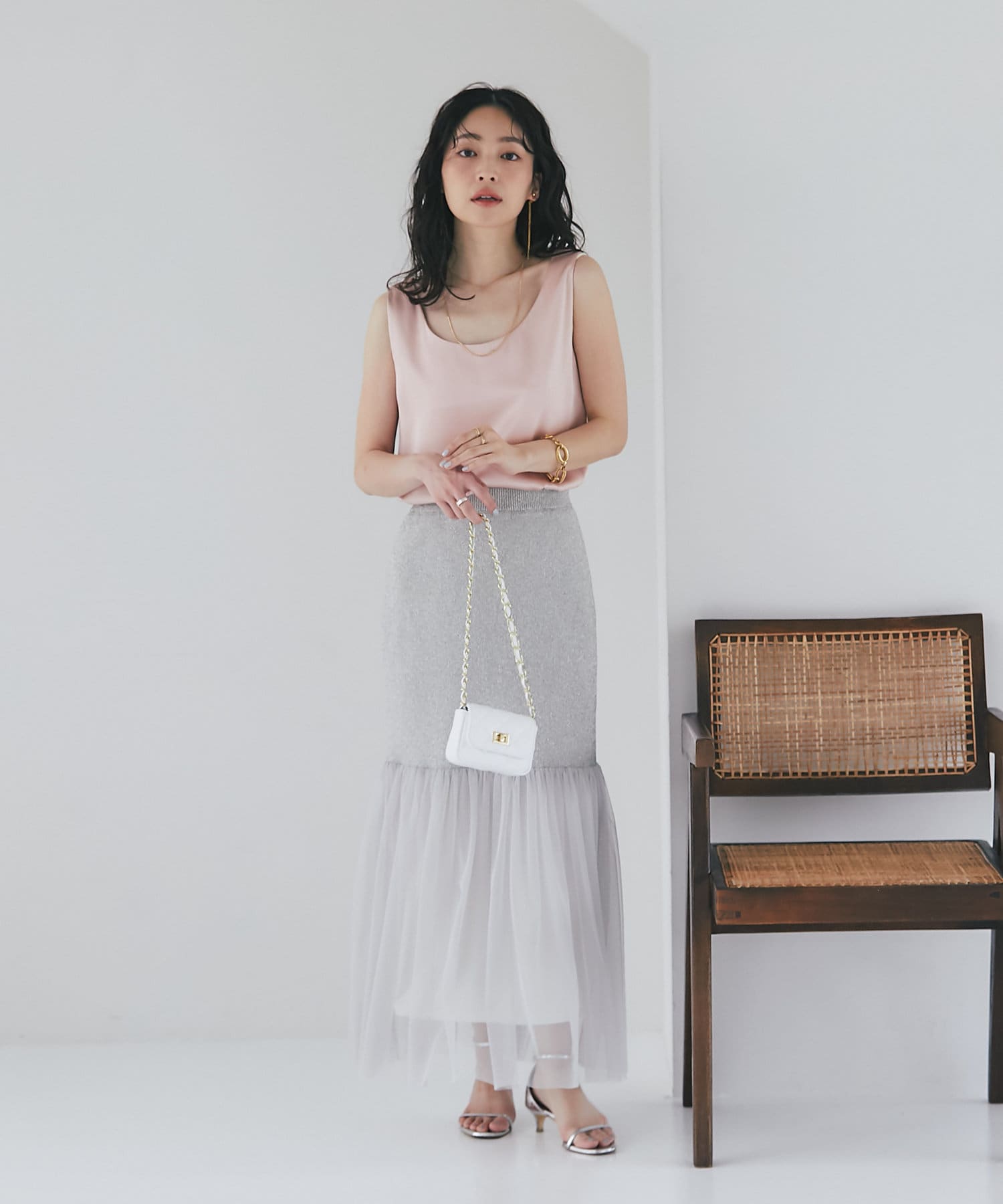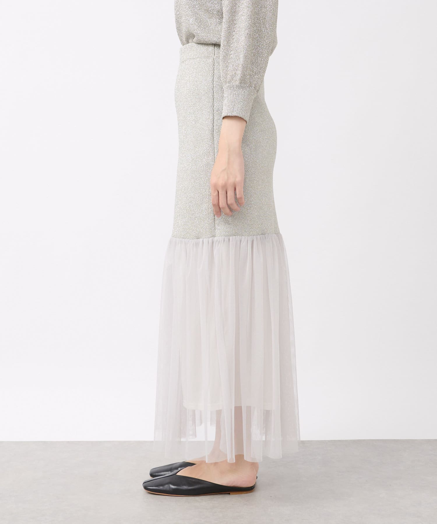 チュールをレイヤードしたような異素材ドッキングスカート。