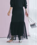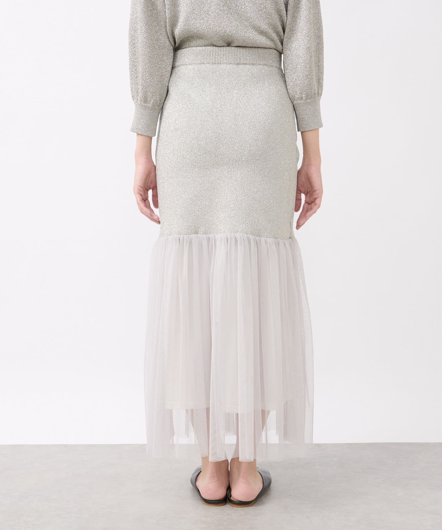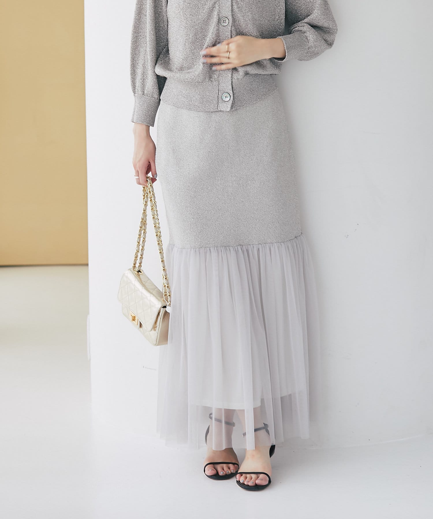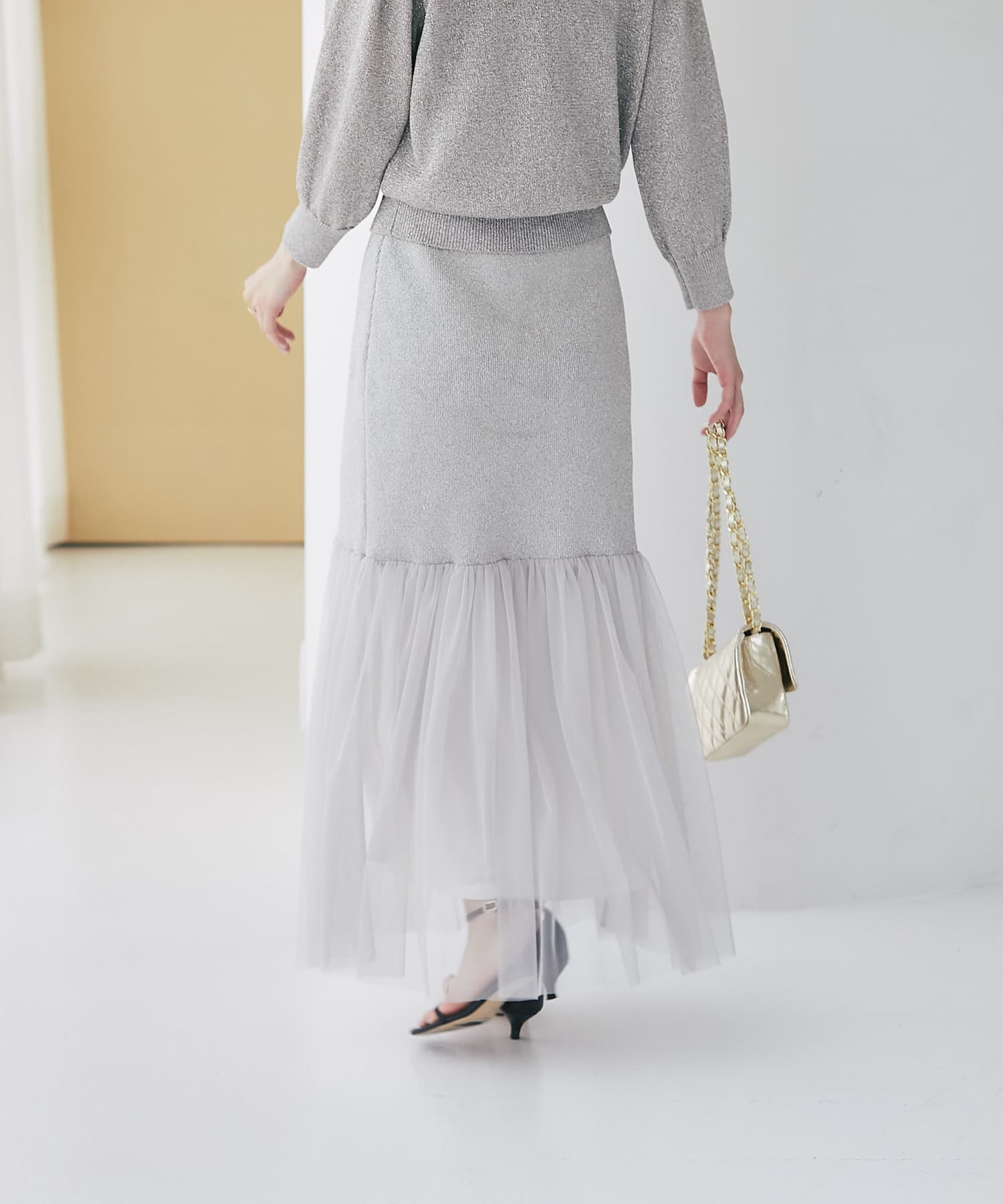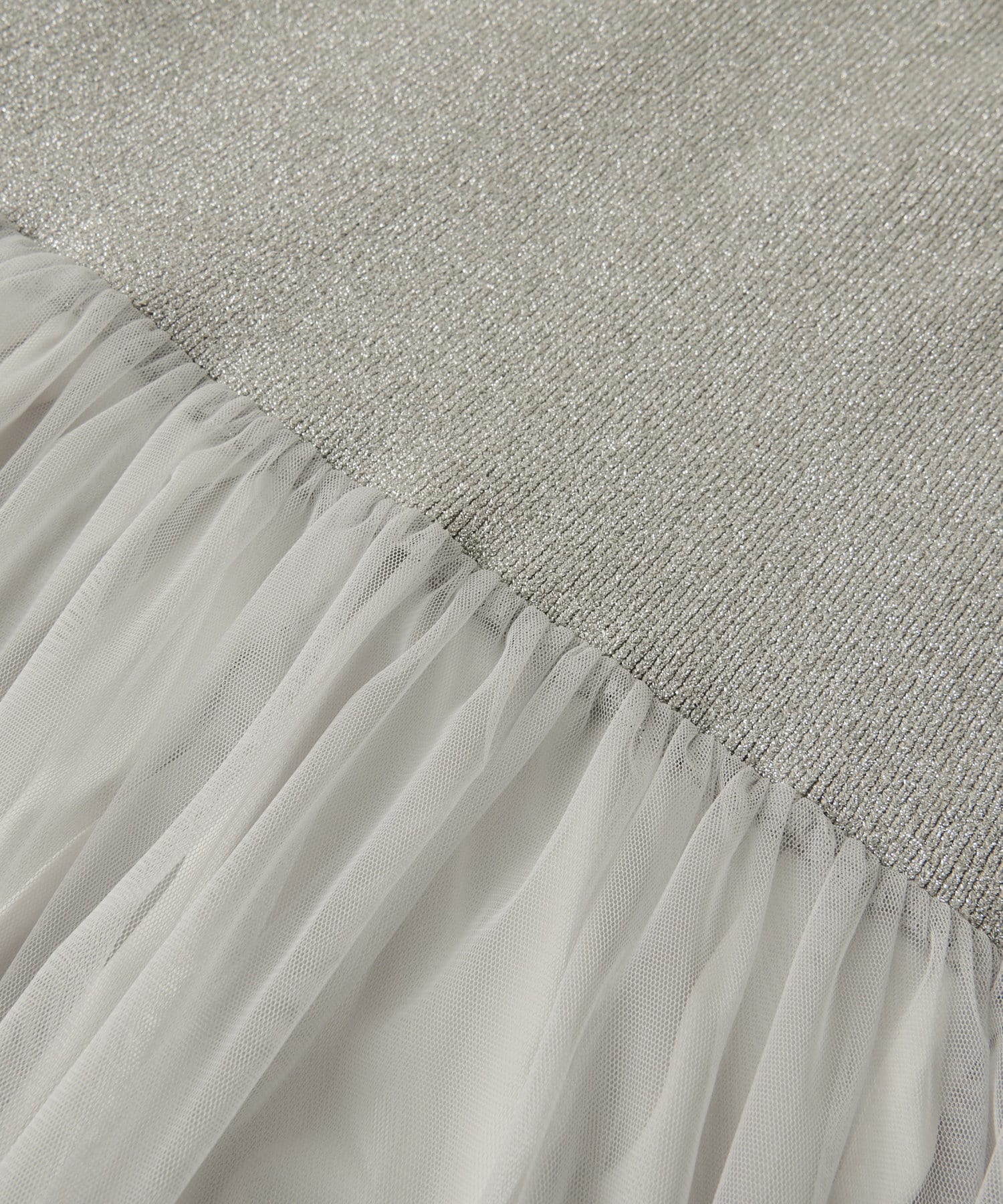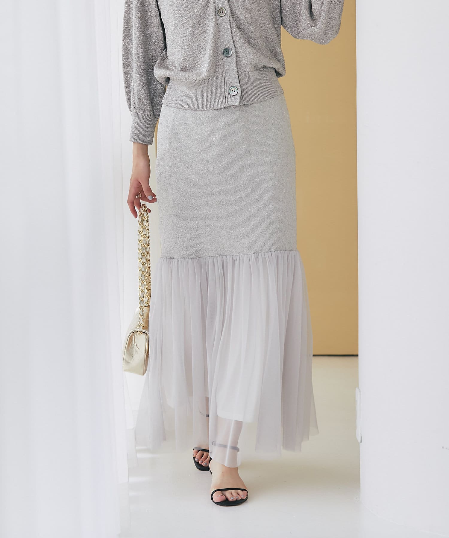 チュールをレイヤードしたような異素材ドッキングスカート。