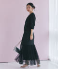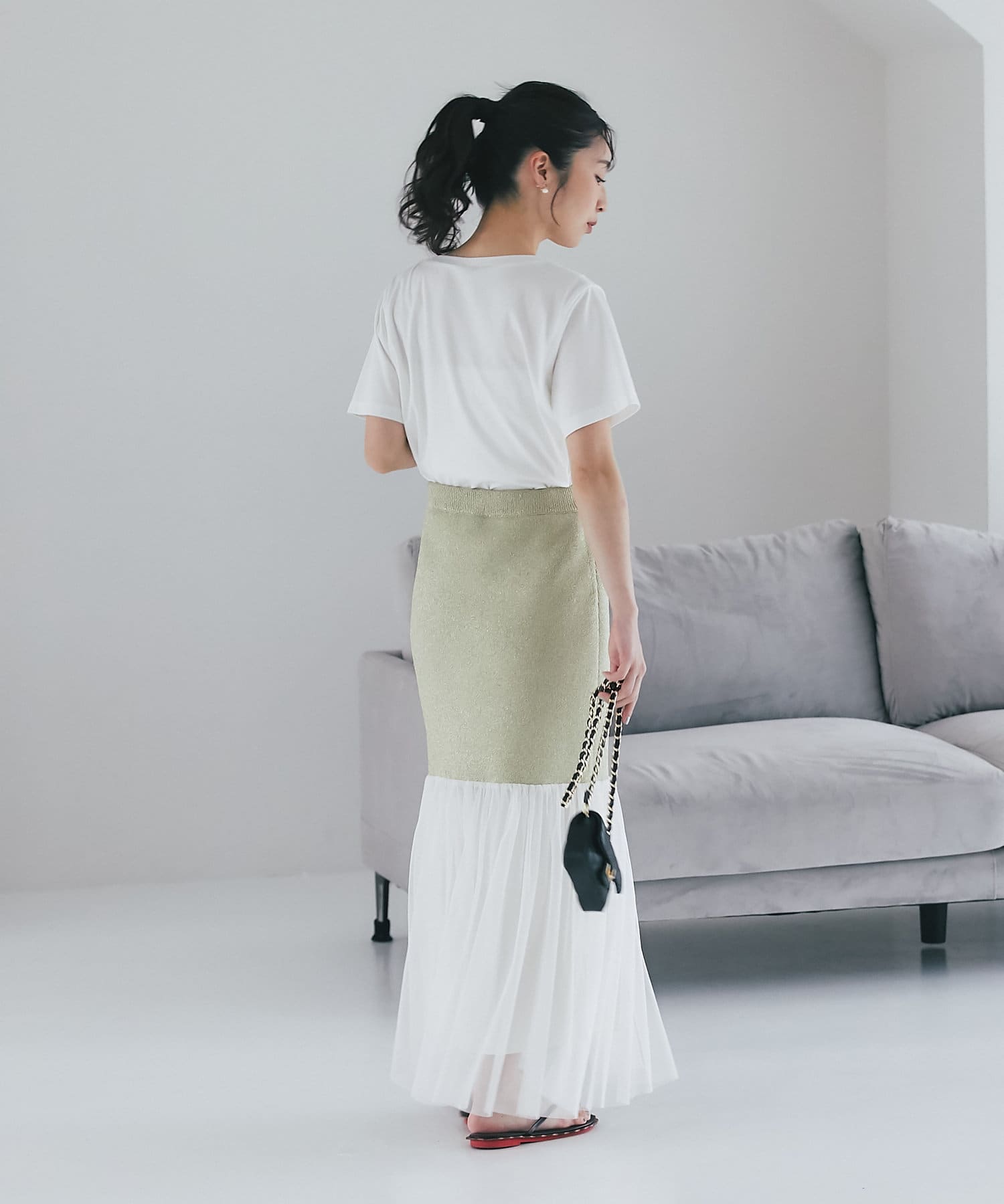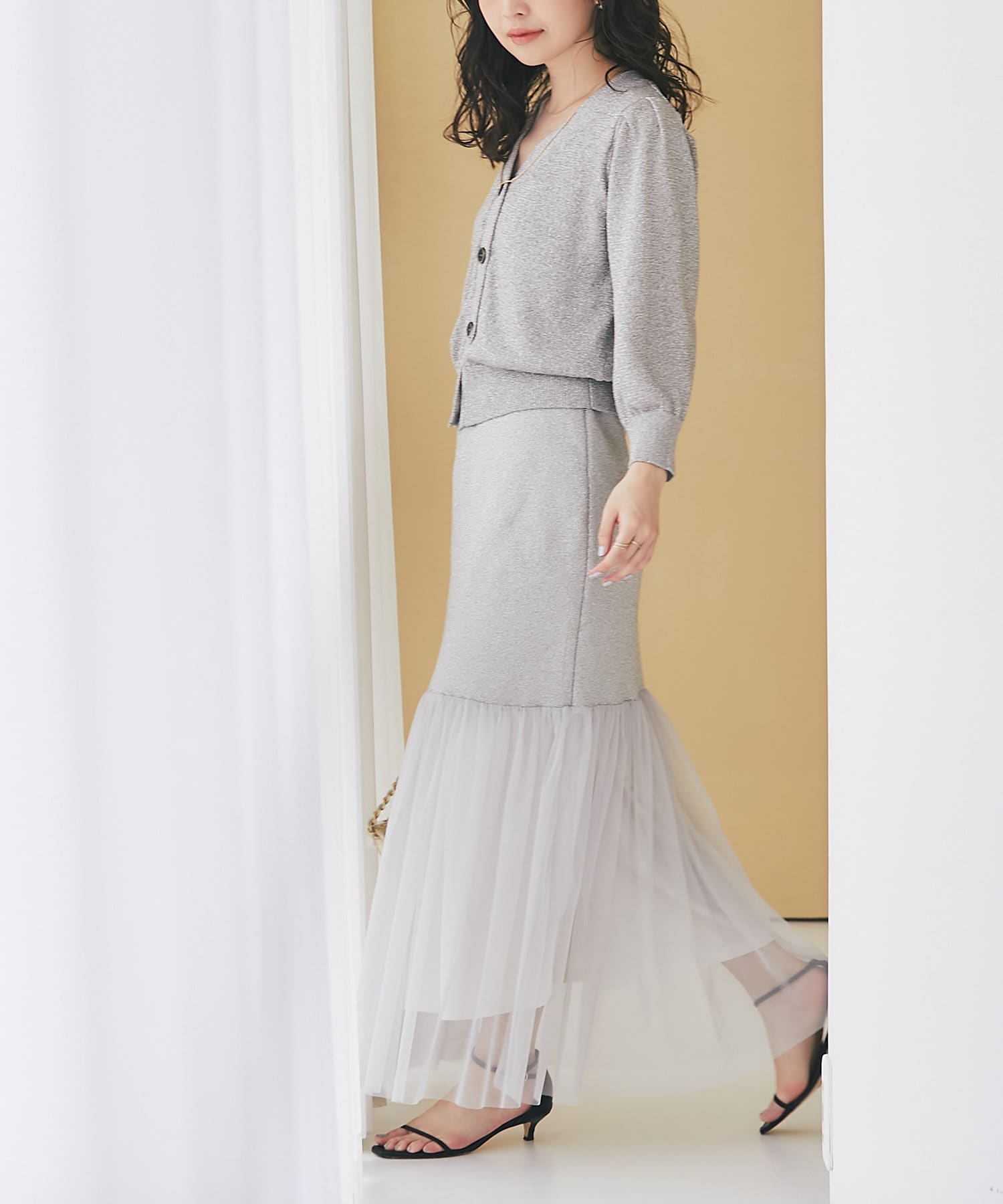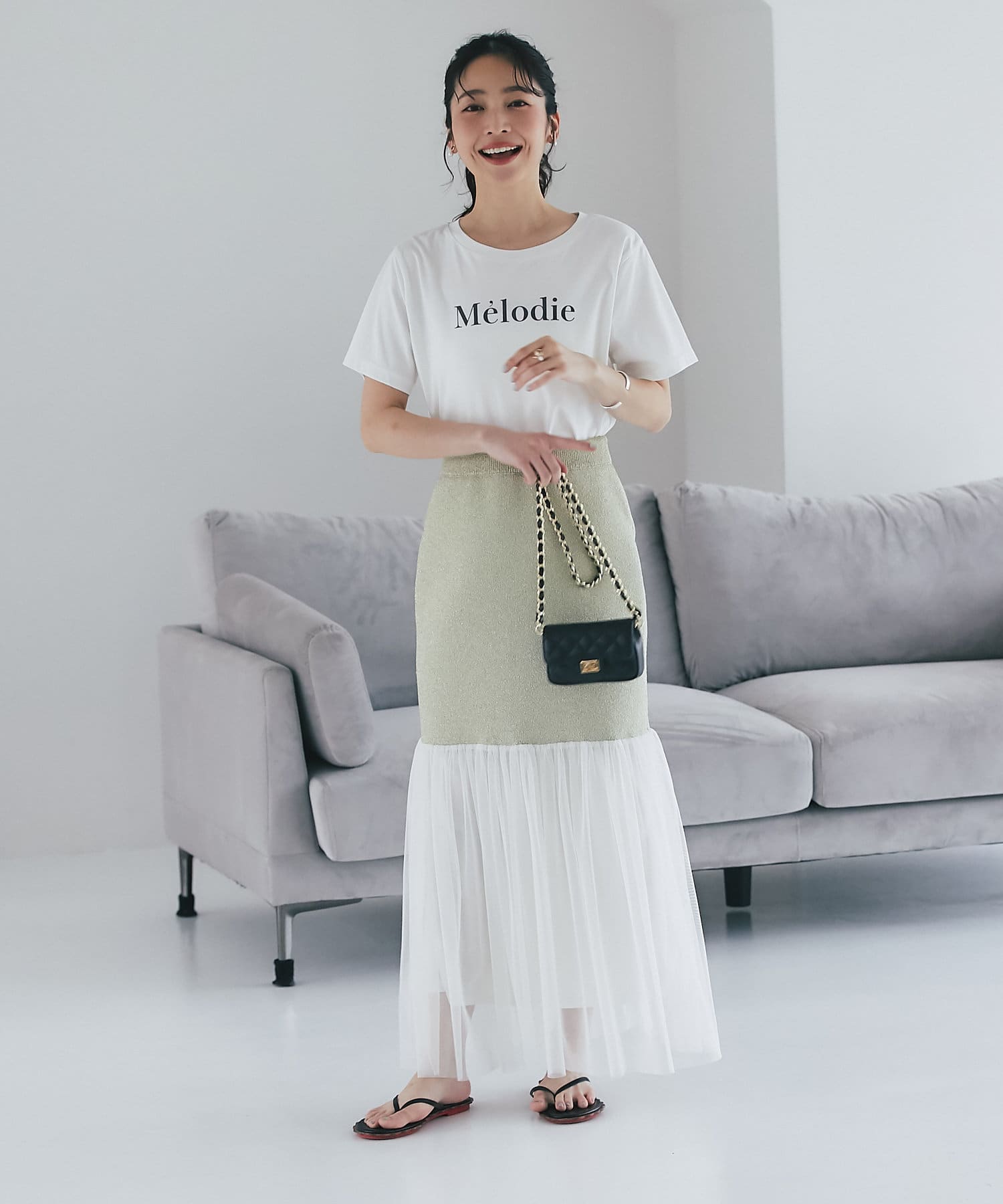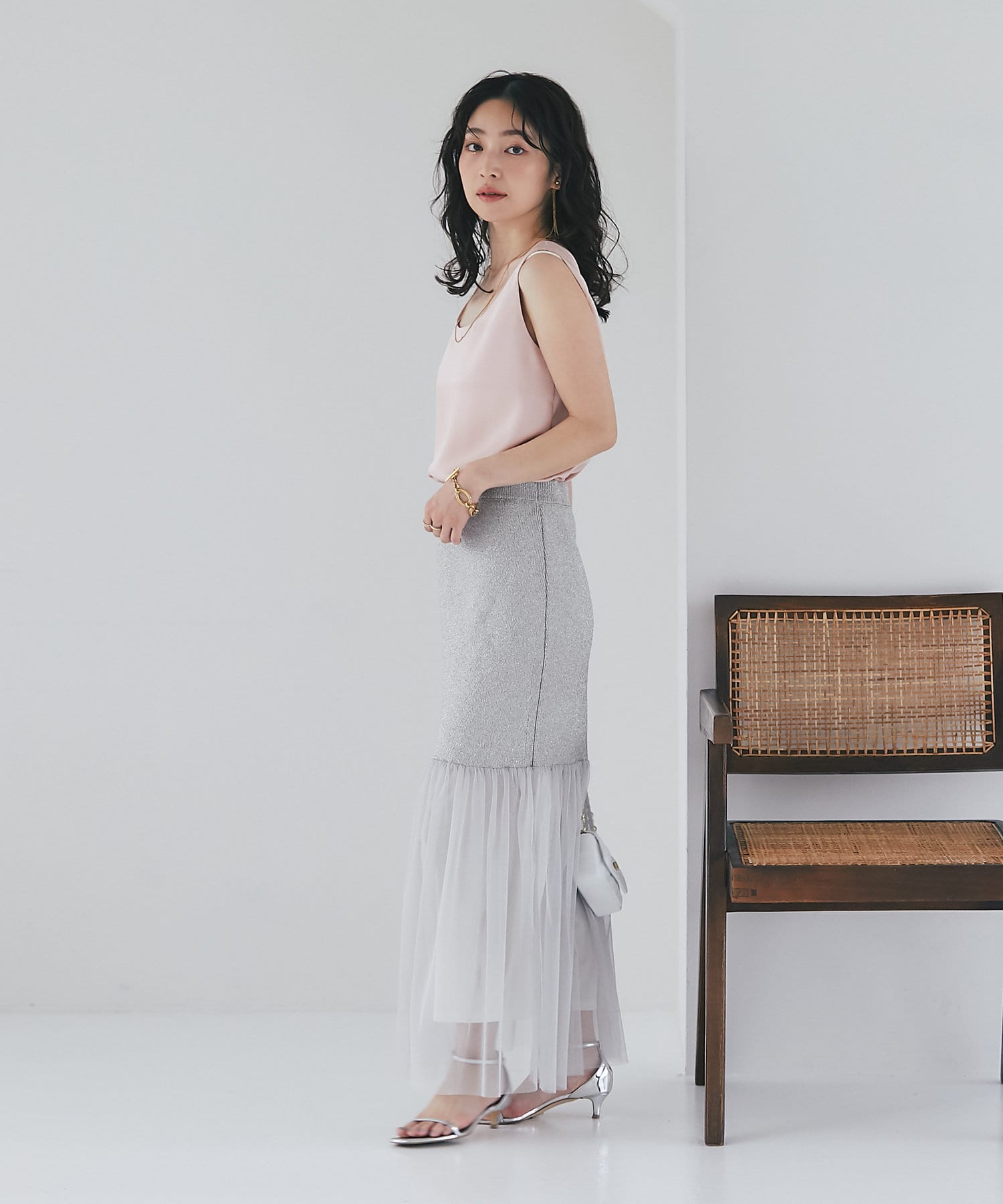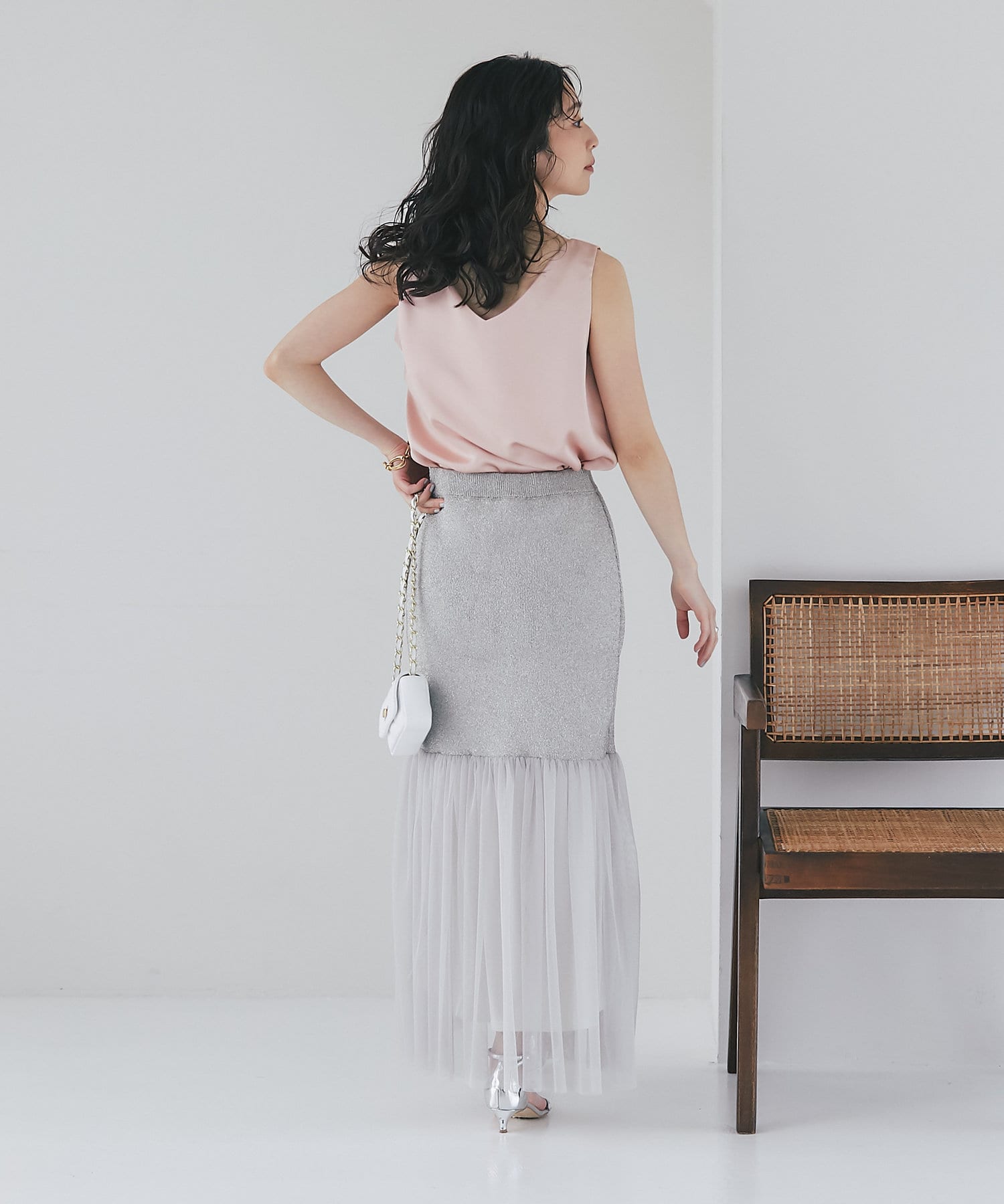 チュールをレイヤードしたような異素材ドッキングスカート。