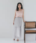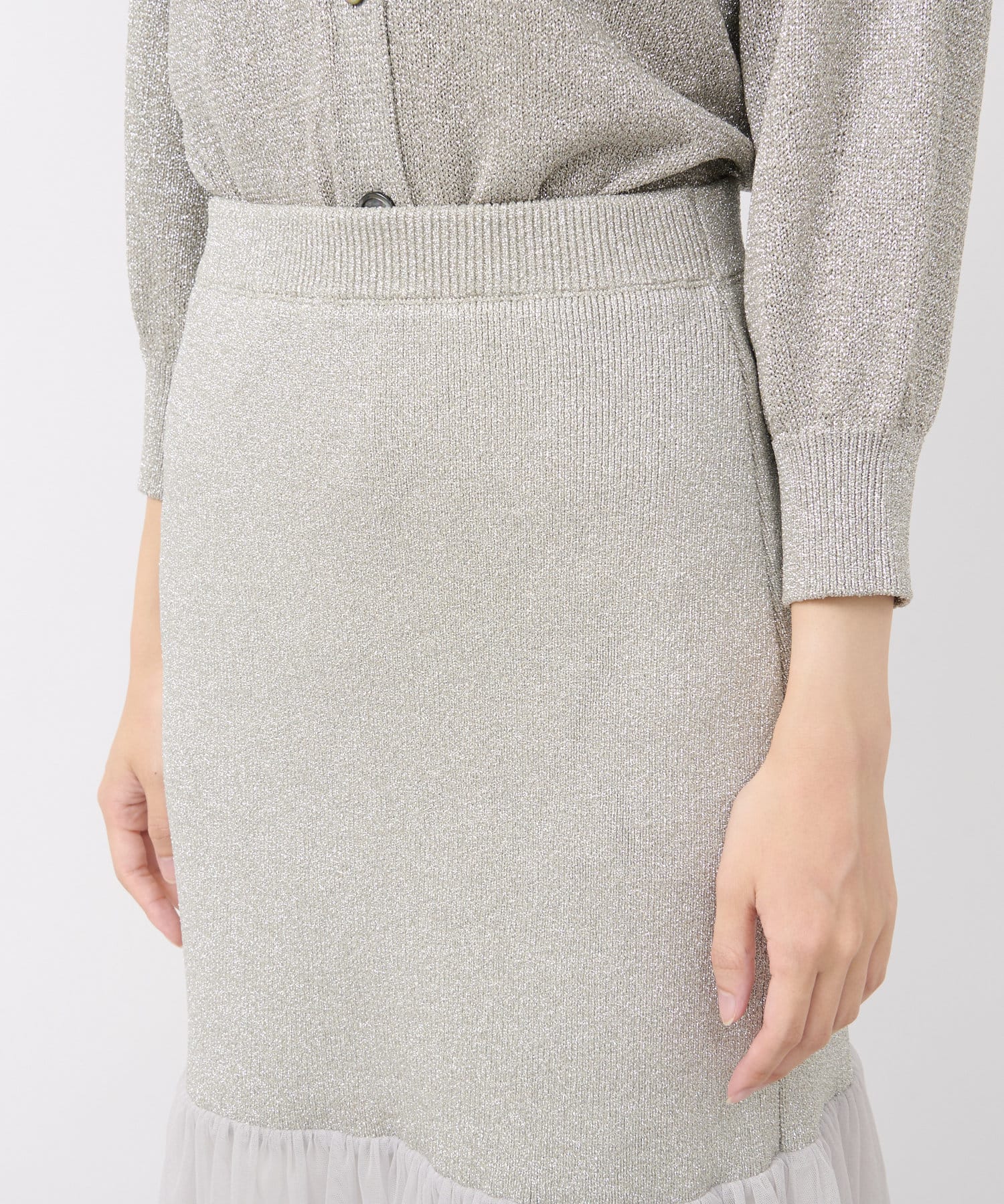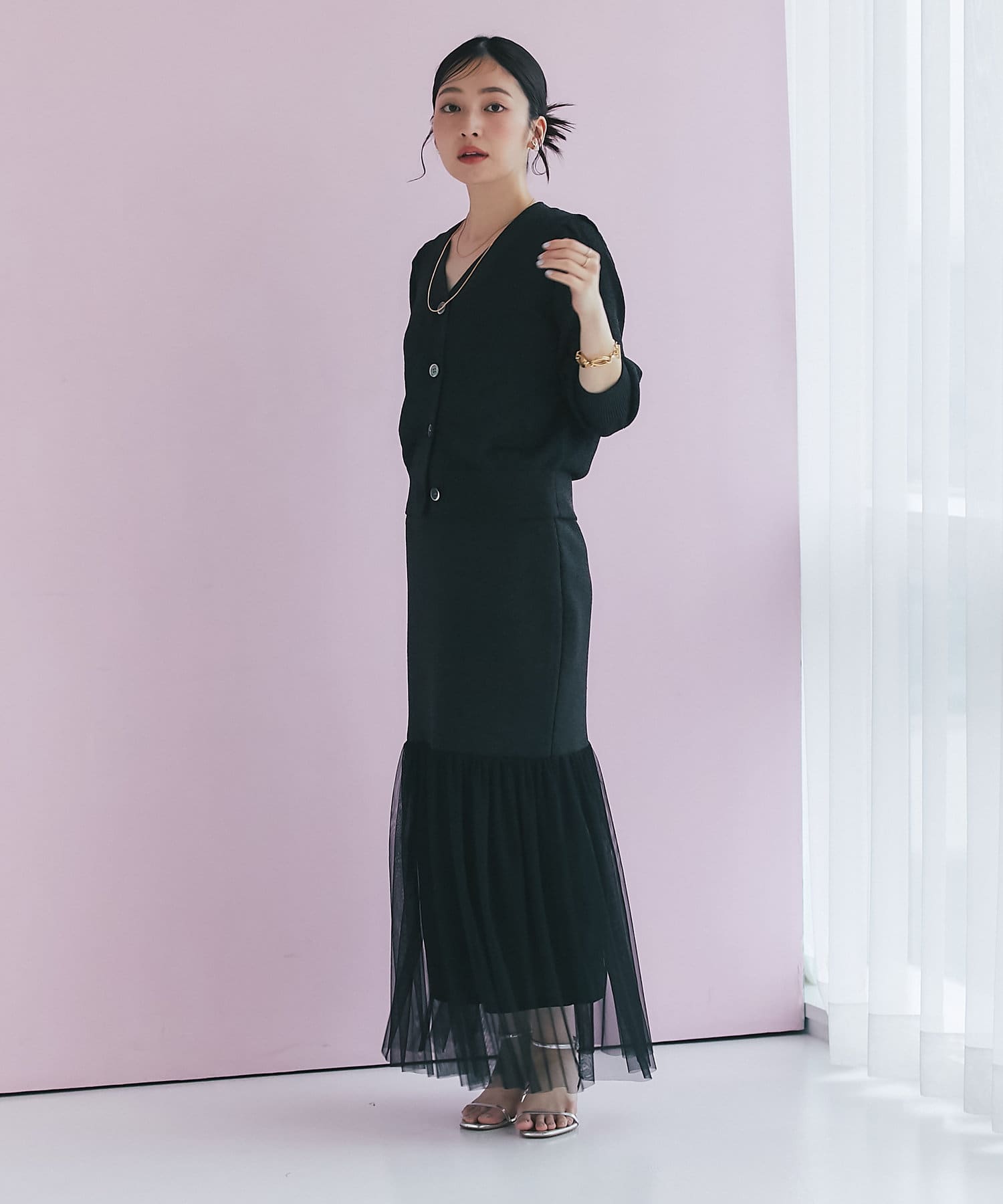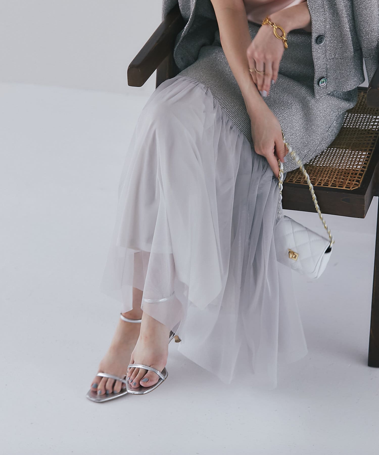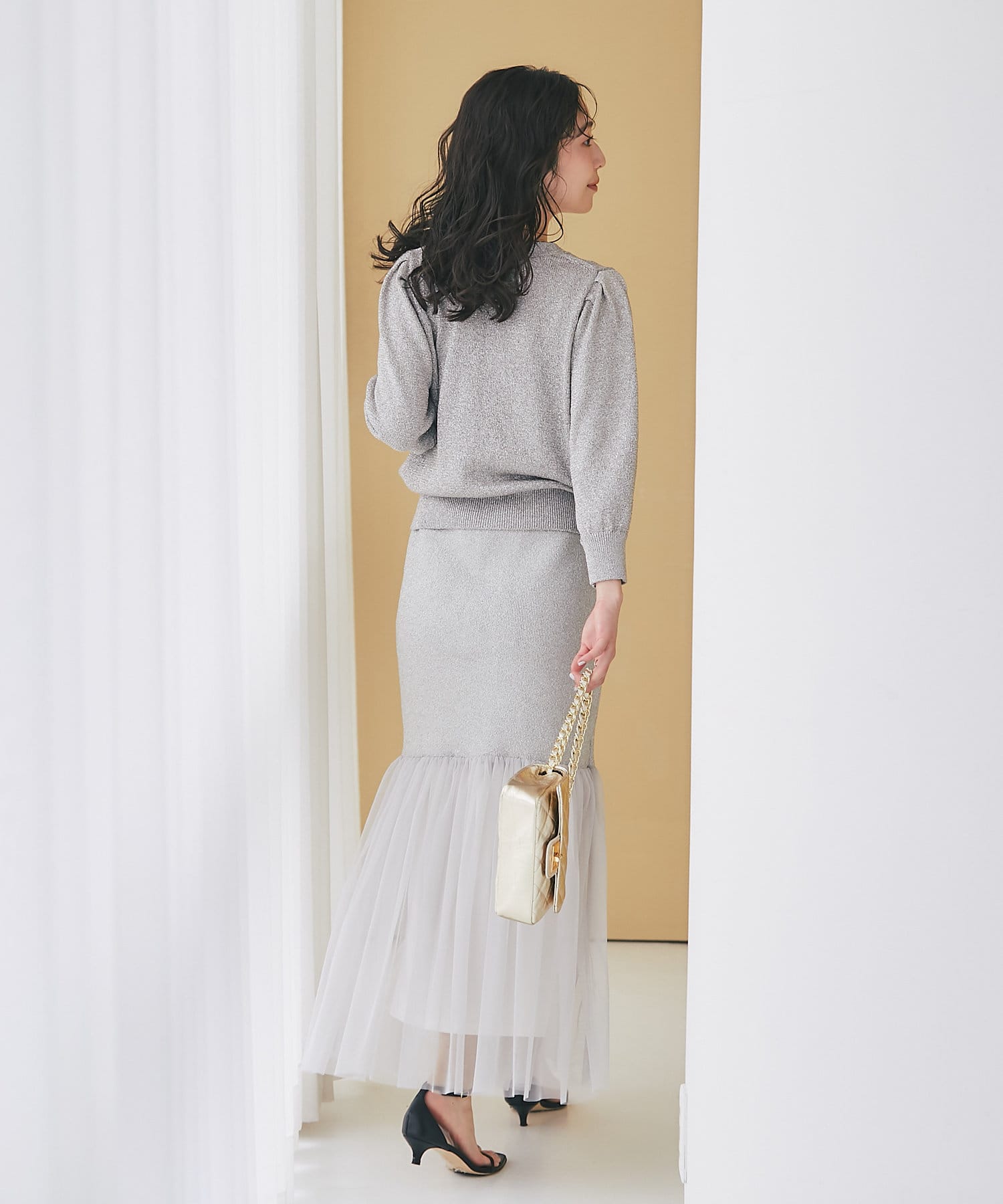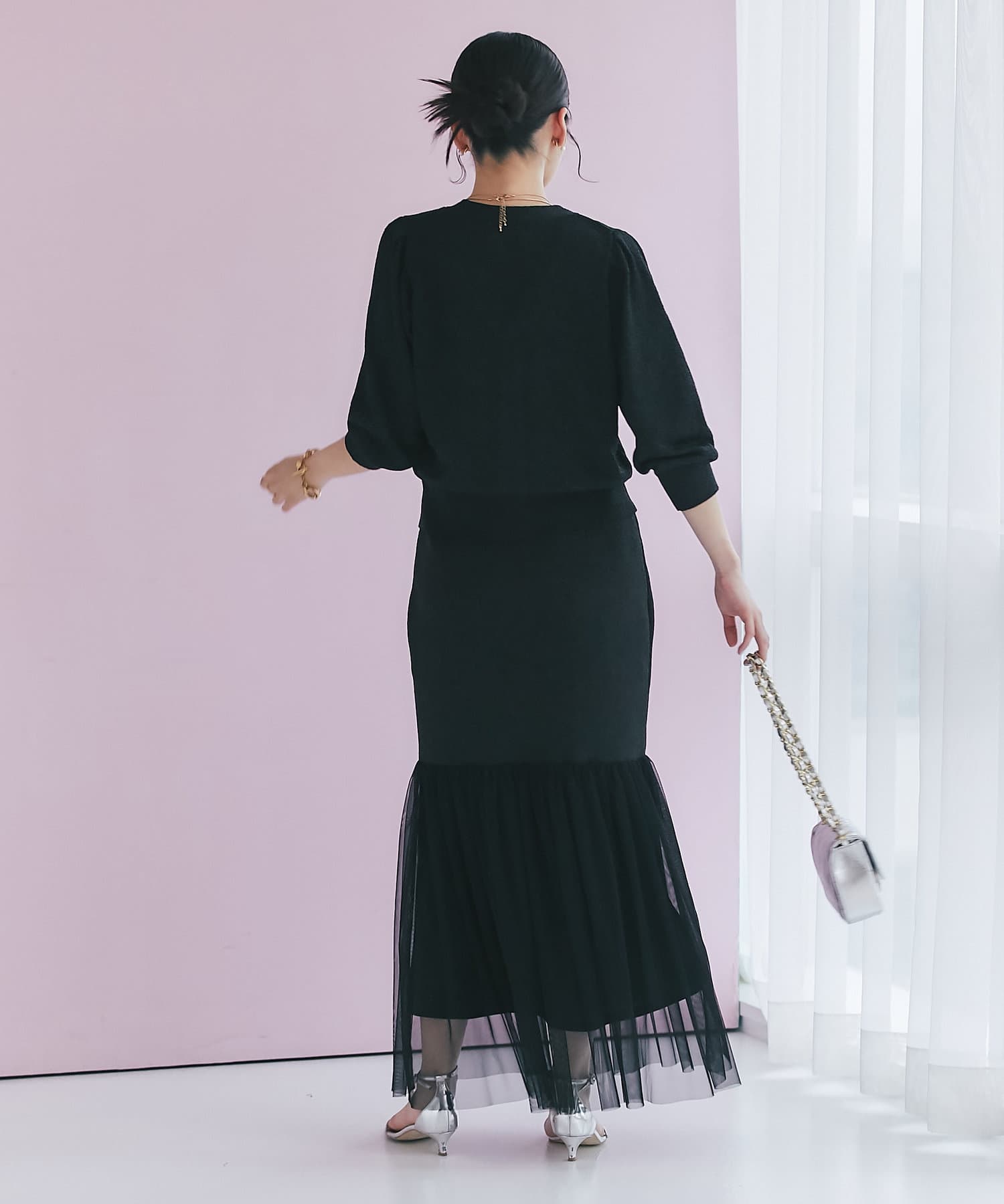 チュールをレイヤードしたような異素材ドッキングスカート。