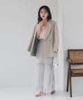 柔らかいトーンでまとめたスタイルもおすすめ。