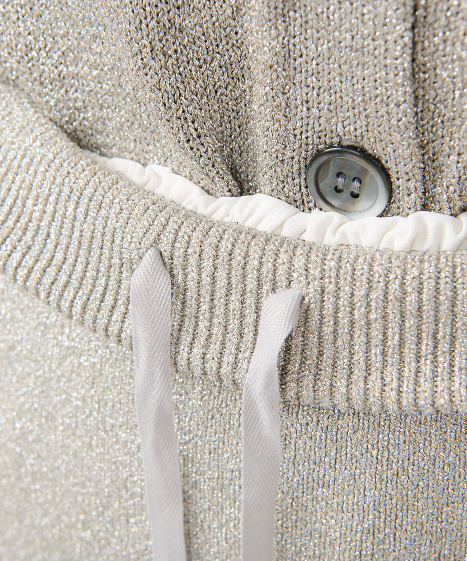 ほどよい光沢感のニットは、華やかさがありながらもストレッチ性があるので楽な履き心地。