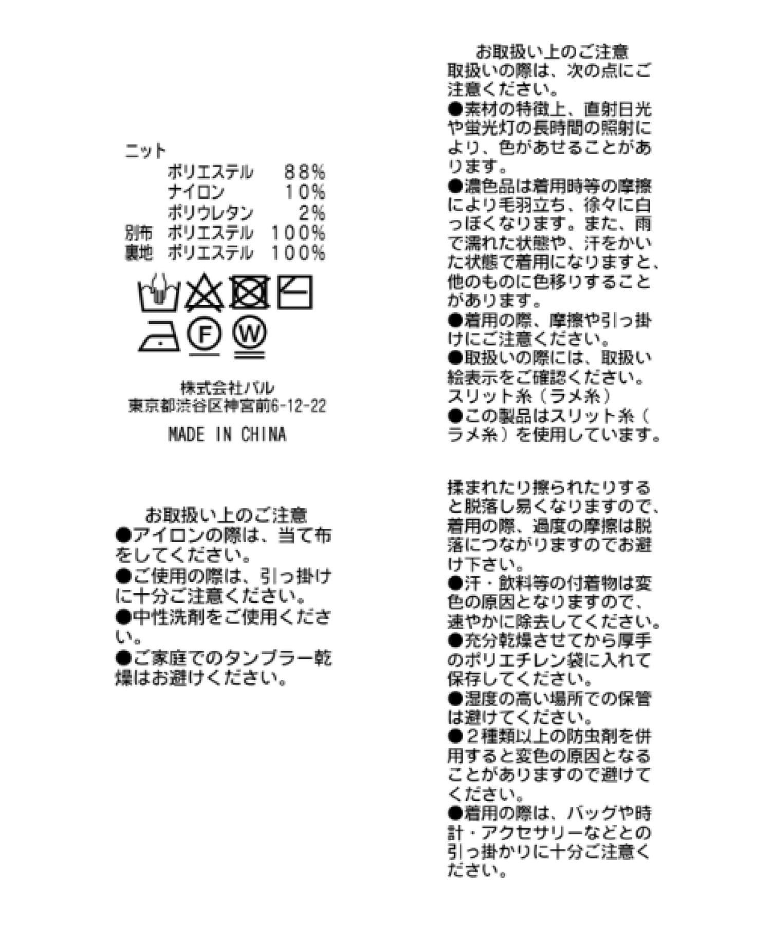 品番 LBZ1042101A0004 素材 本体(ニット):ポリエステル88% ナイロン10% ポリウレタン2%