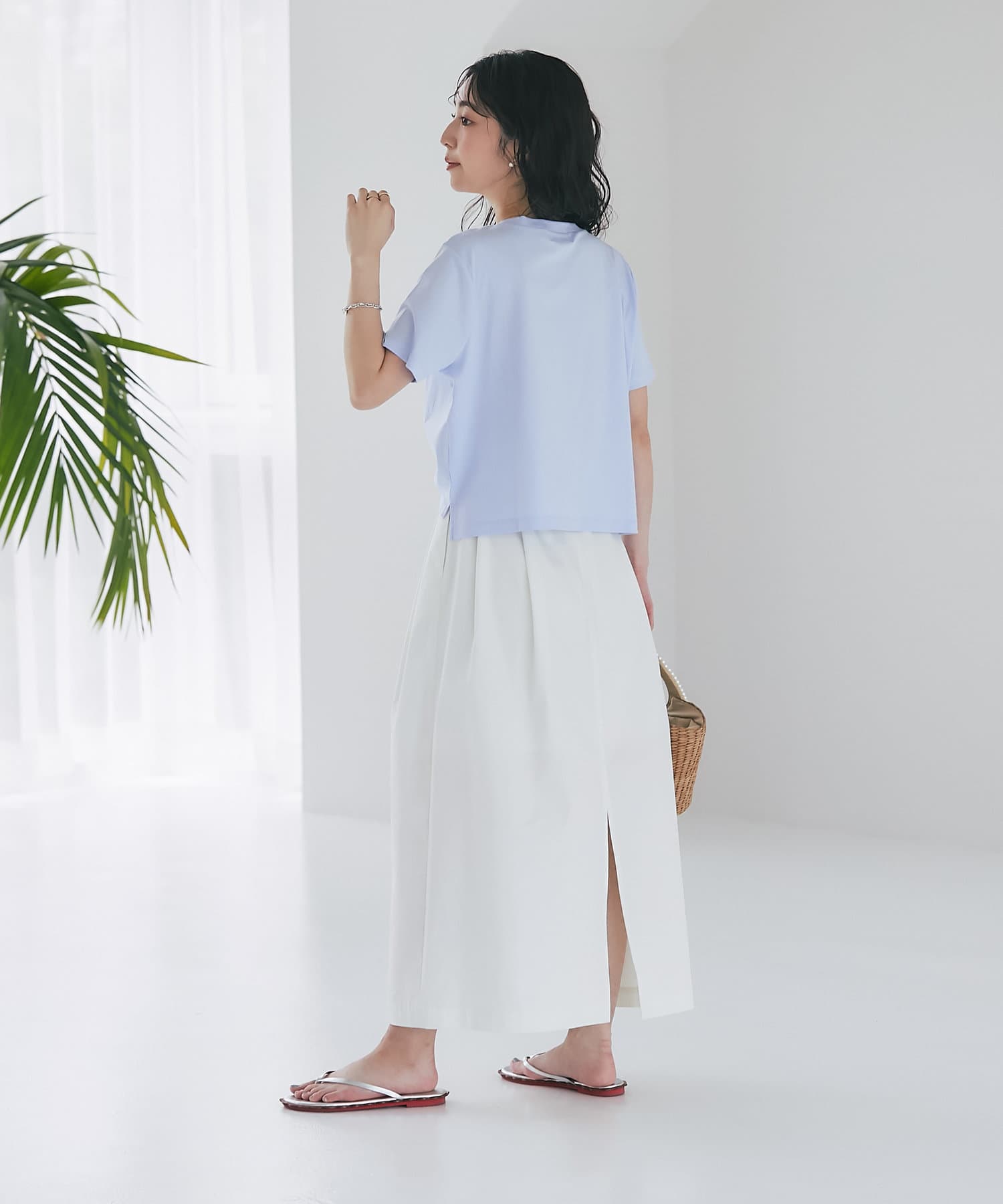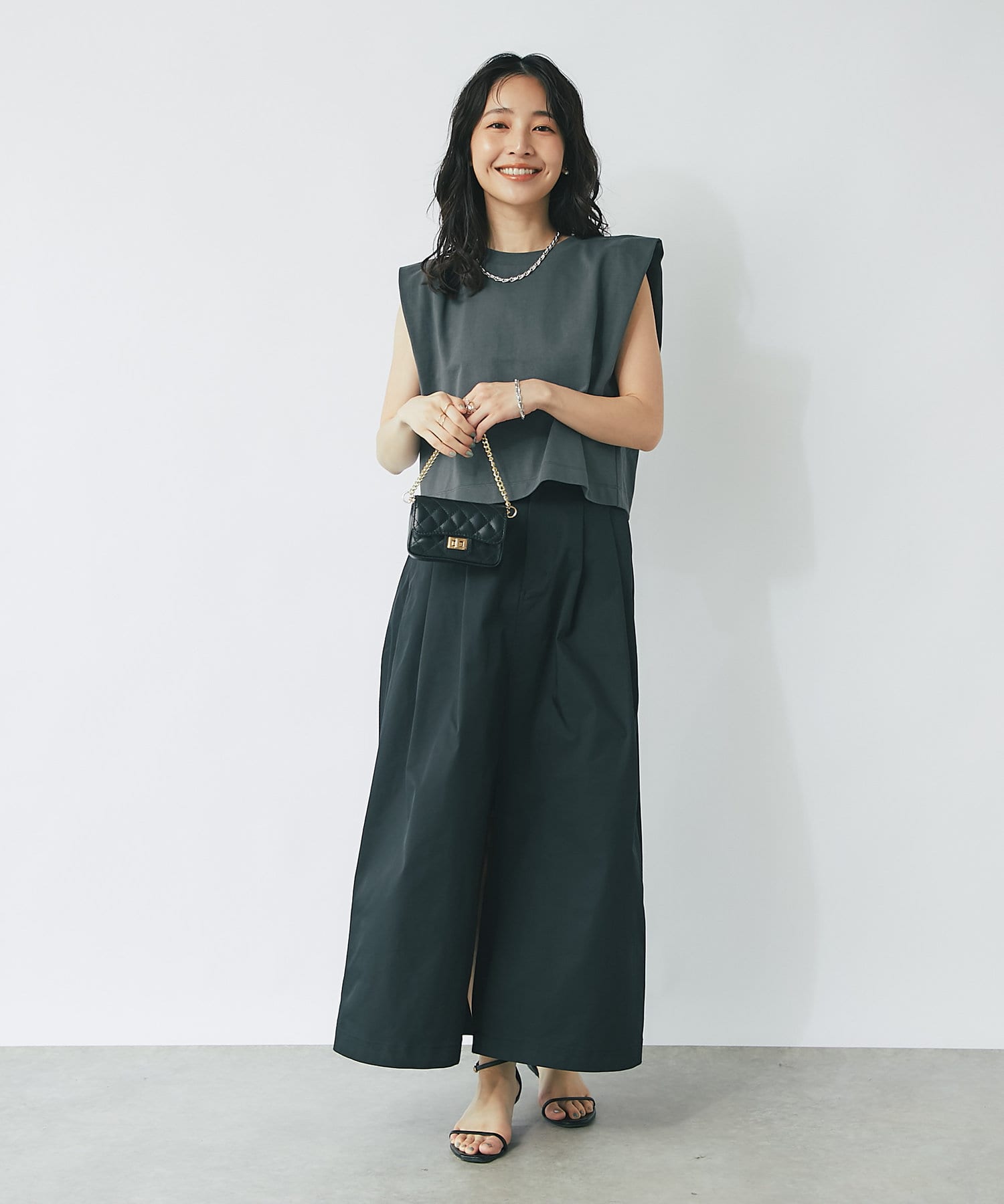 • ハリのある素材がカジュアルなスタイリングもキレイに仕上げてくれる