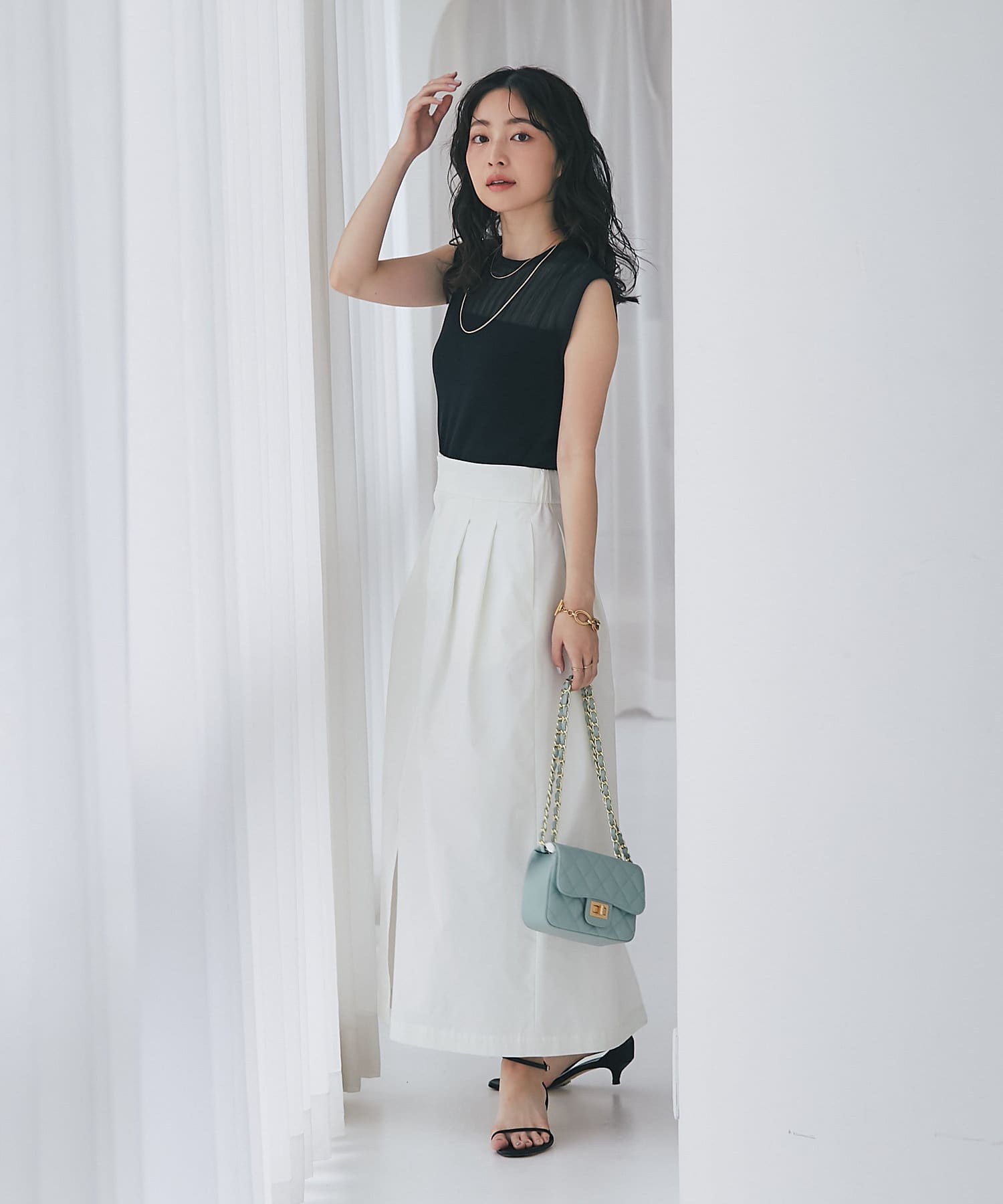 今シーズンはメニーリボンブラウスと合わせて、程よい甘さをプラスしたスタイリングもお勧めです。