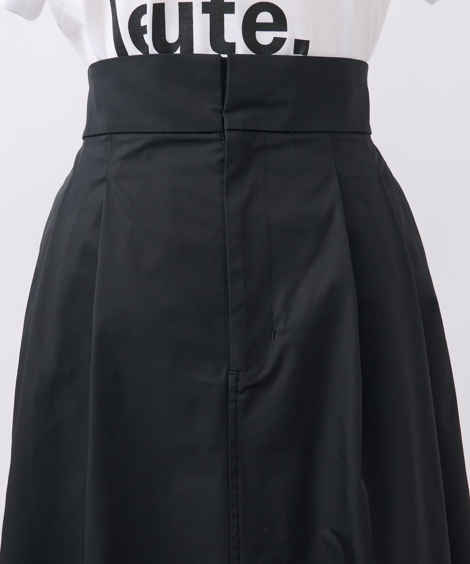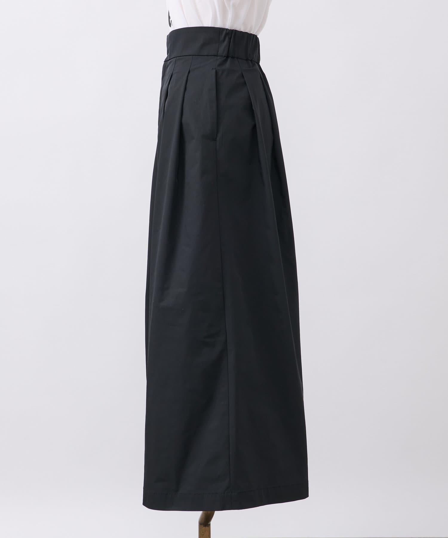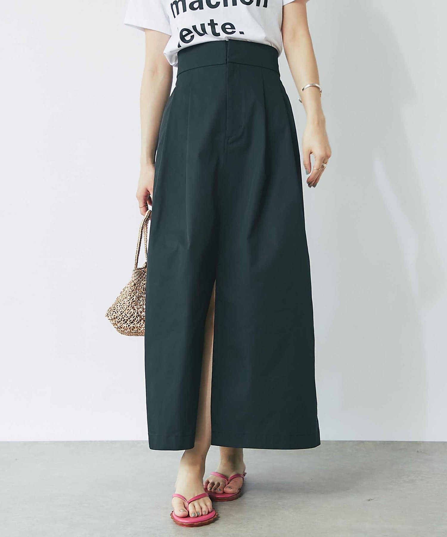 タック入りですが広がらないシルエットで、腰回りにゆとりを与えてくれます。