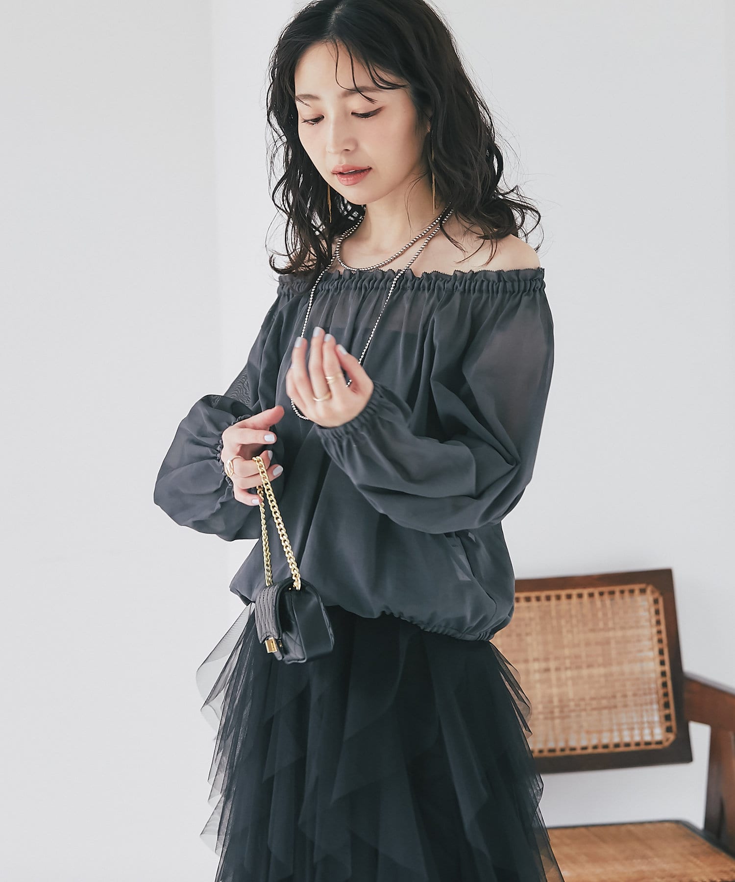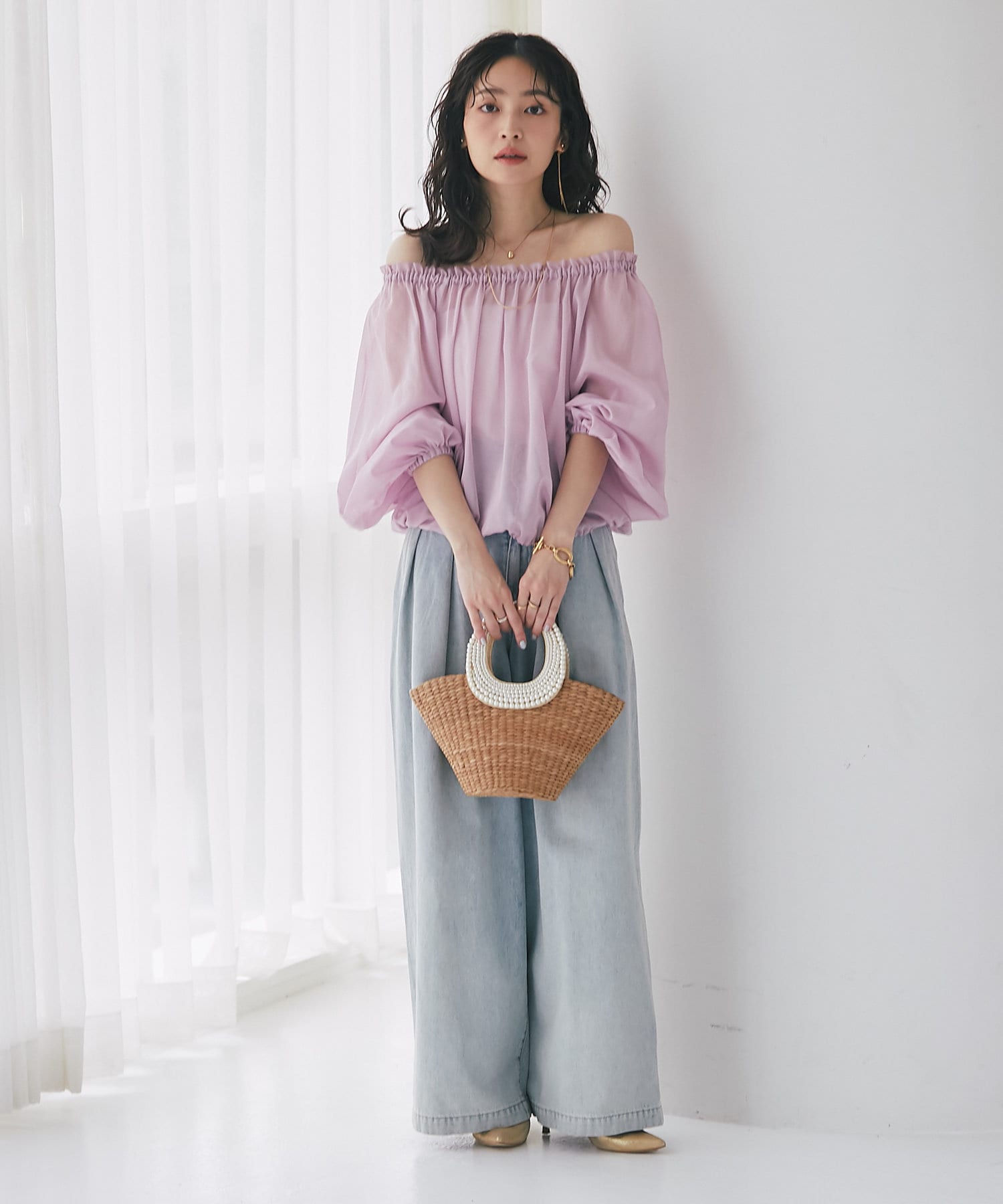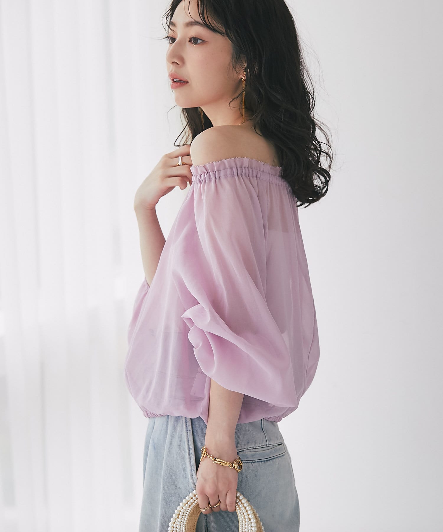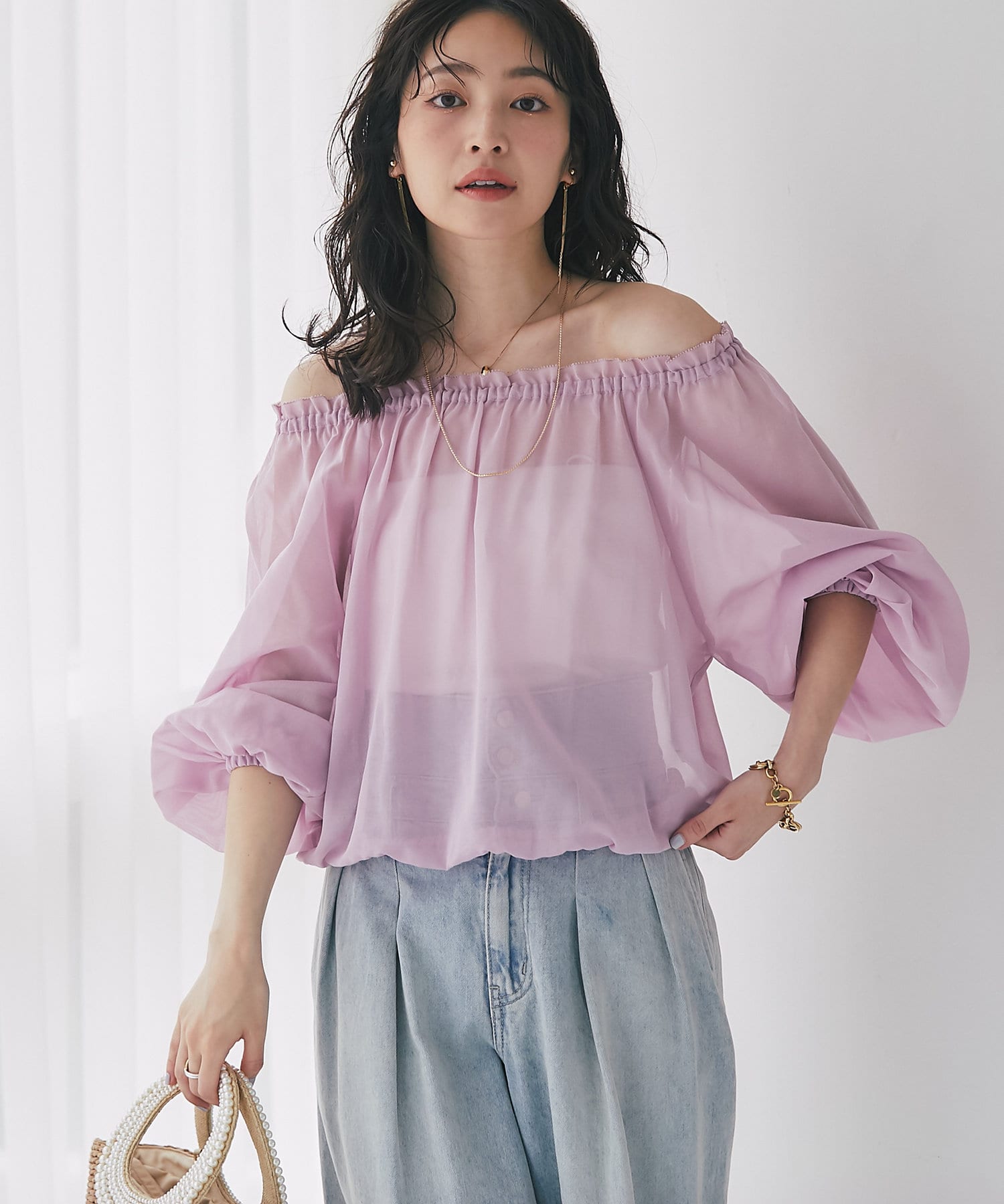 気分によってオフショルも楽しめる、幅広く着回せるブラウスです。