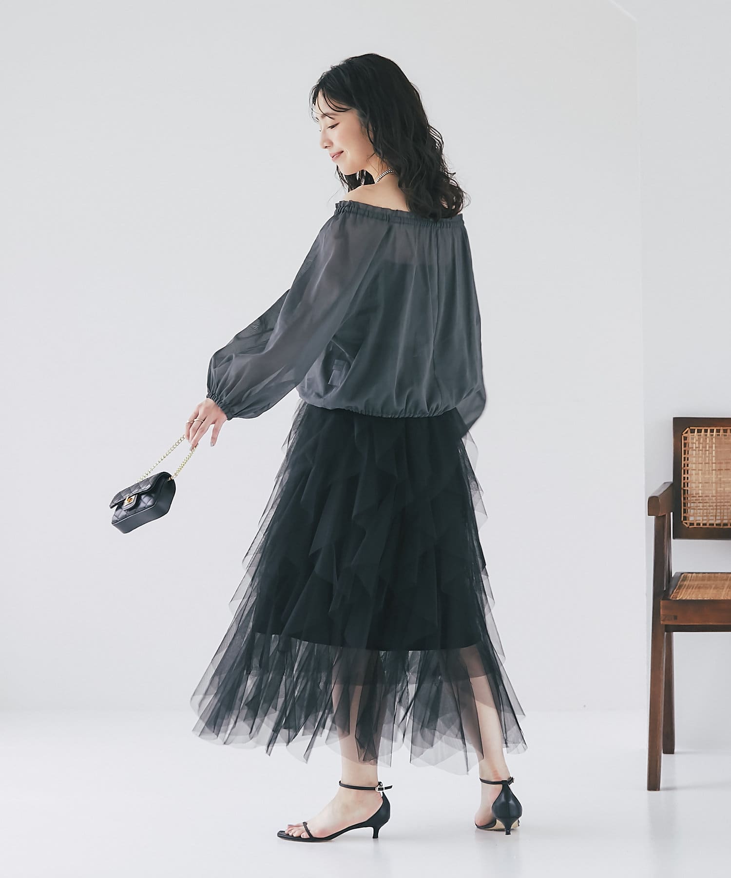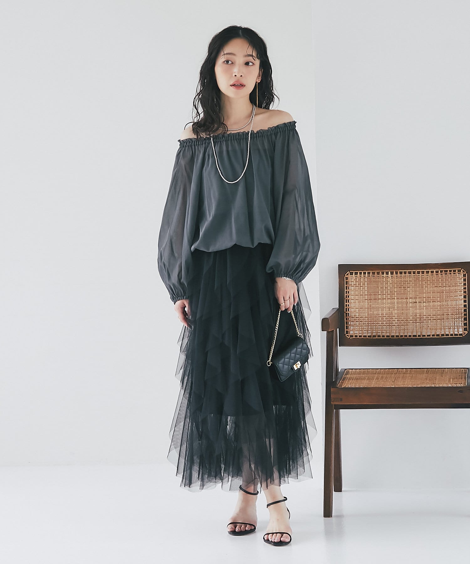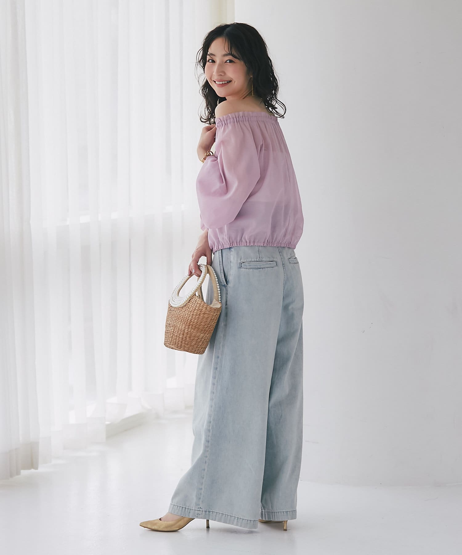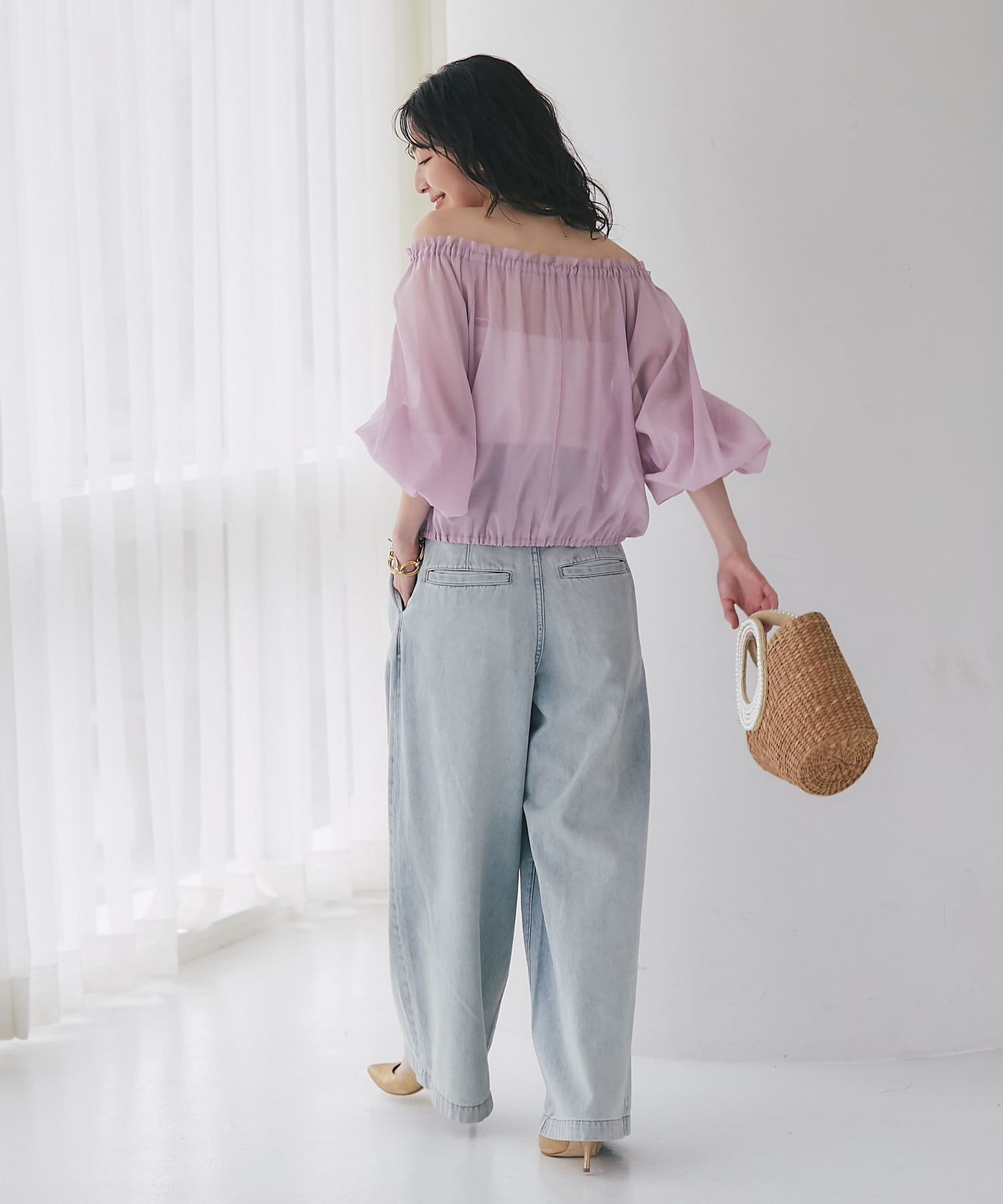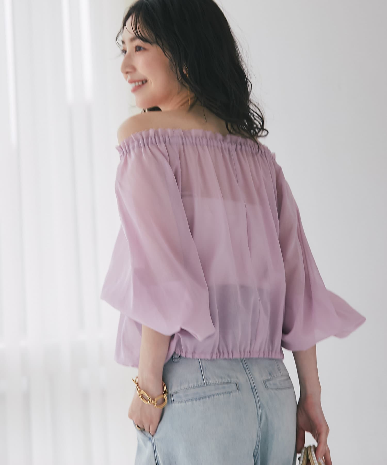 気分によってオフショルも楽しめる、幅広く着回せるブラウスです。