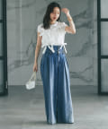 ハイウエストのパンツ、バギーデニム合わせもお勧めです。