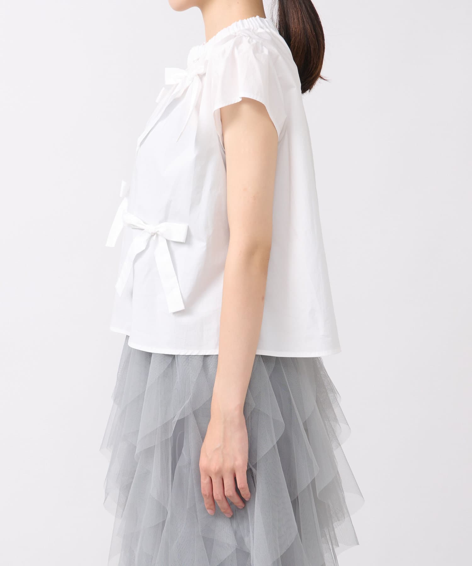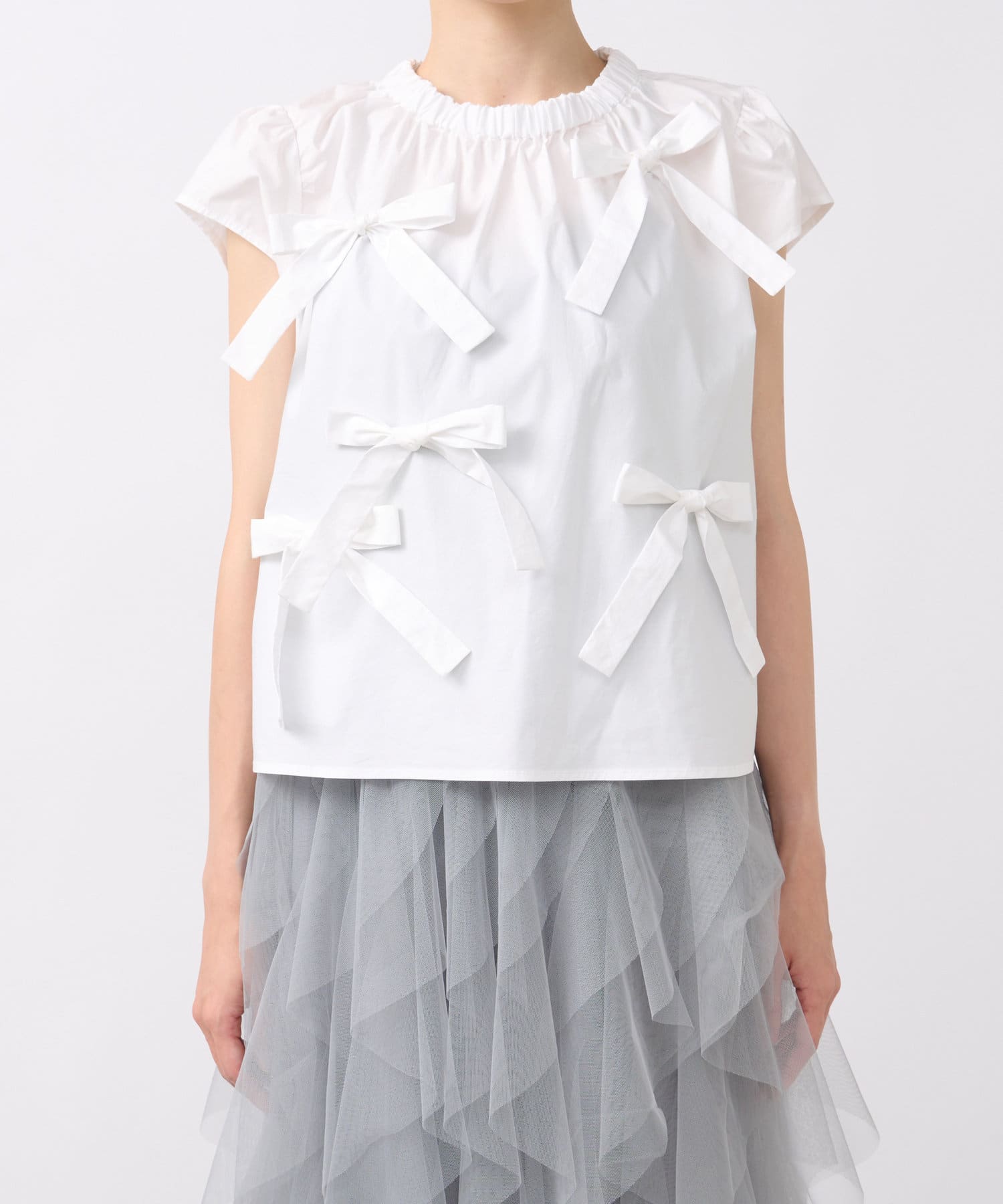 たくさんのリボンでデザインは甘めですが、シャツの素材感が程よく甘さを抑えてくれます。