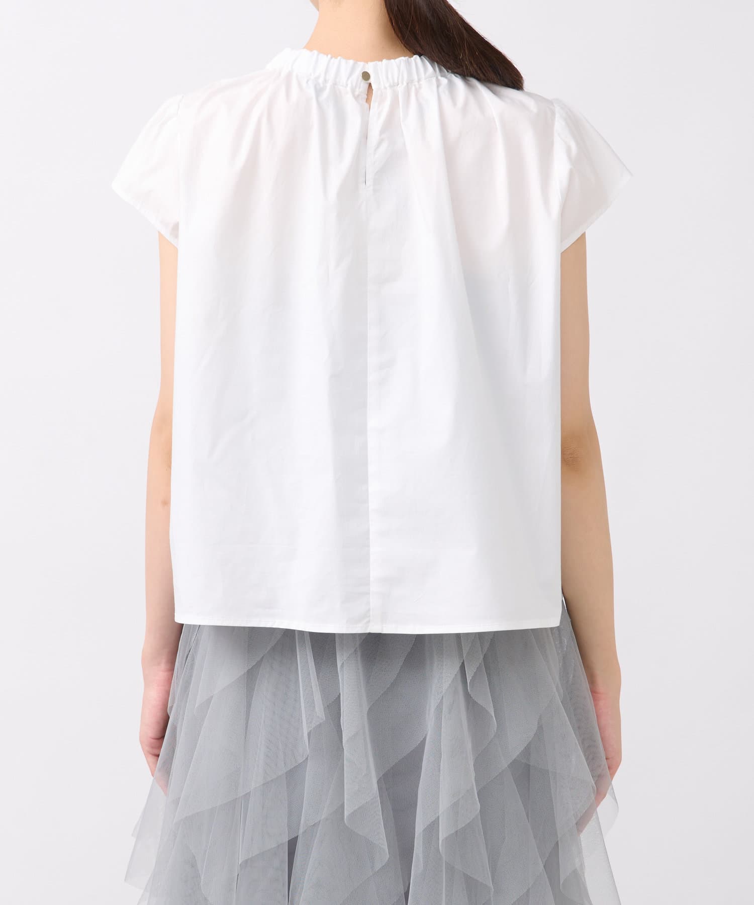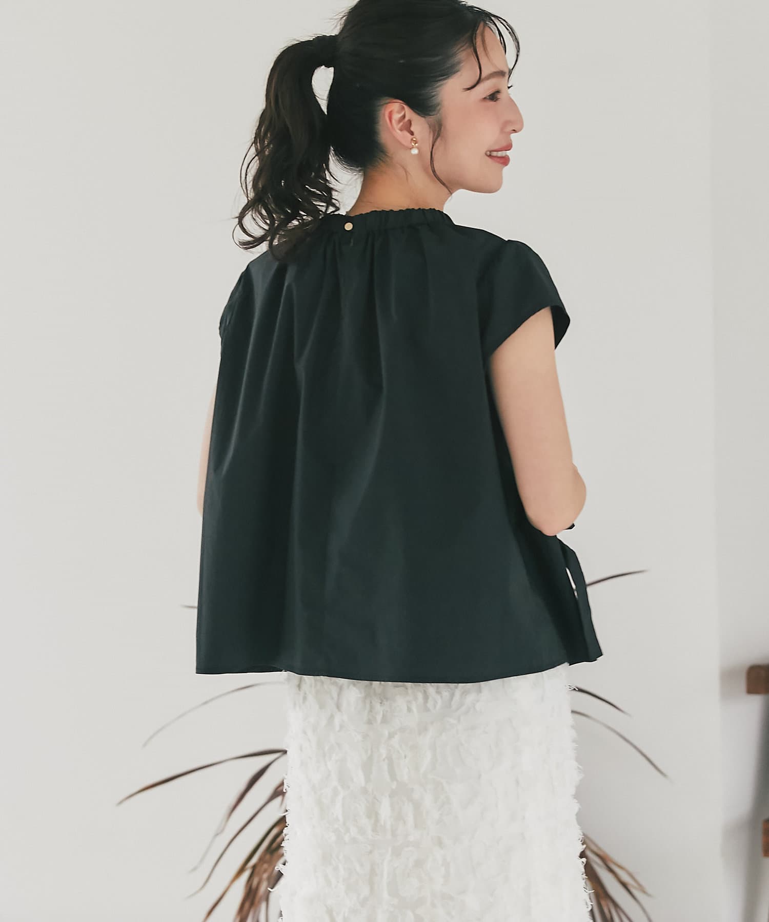 襟元のギャザーも立体感がありながらも押し詰まってあまり広がらないシルエットになっています。