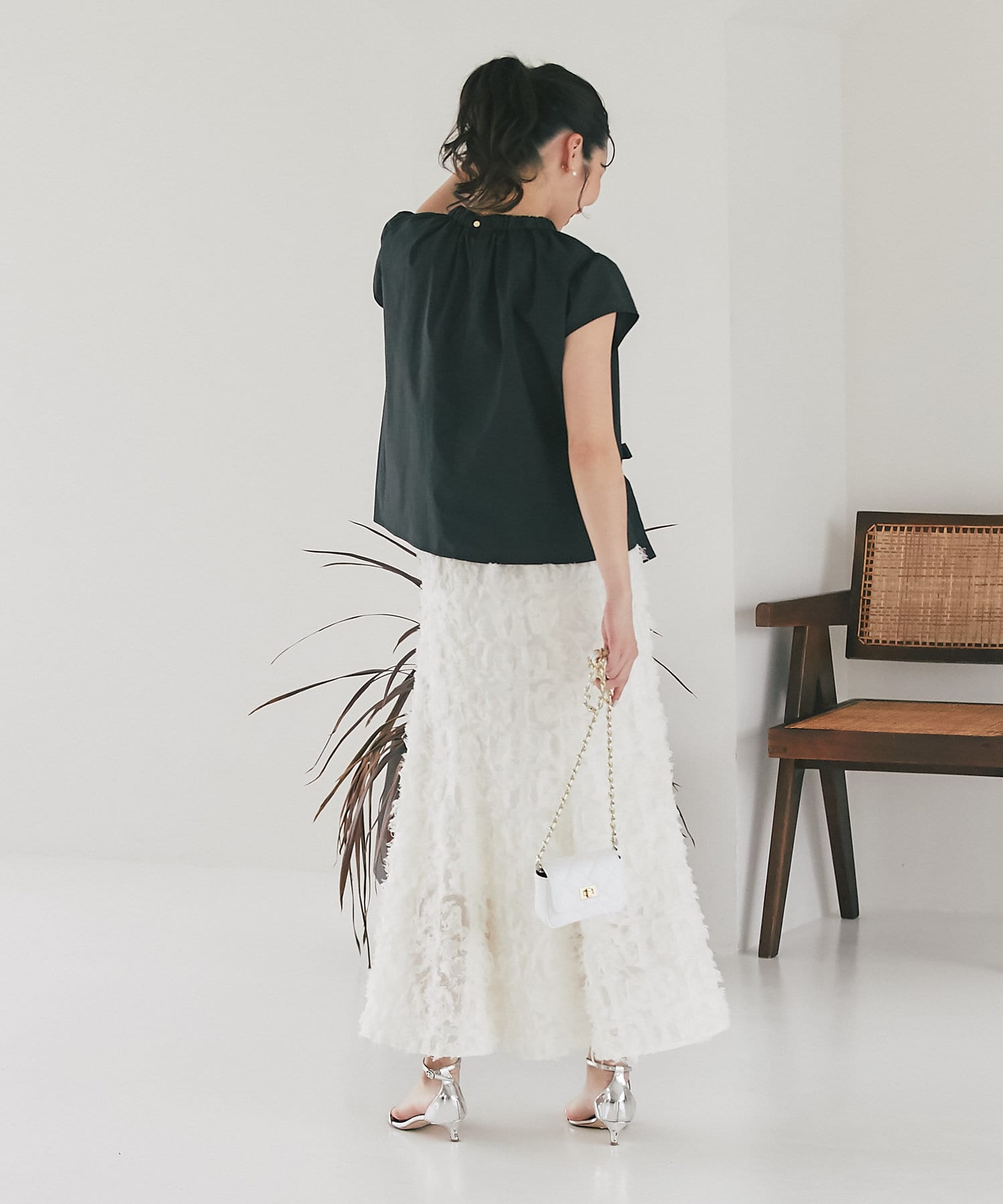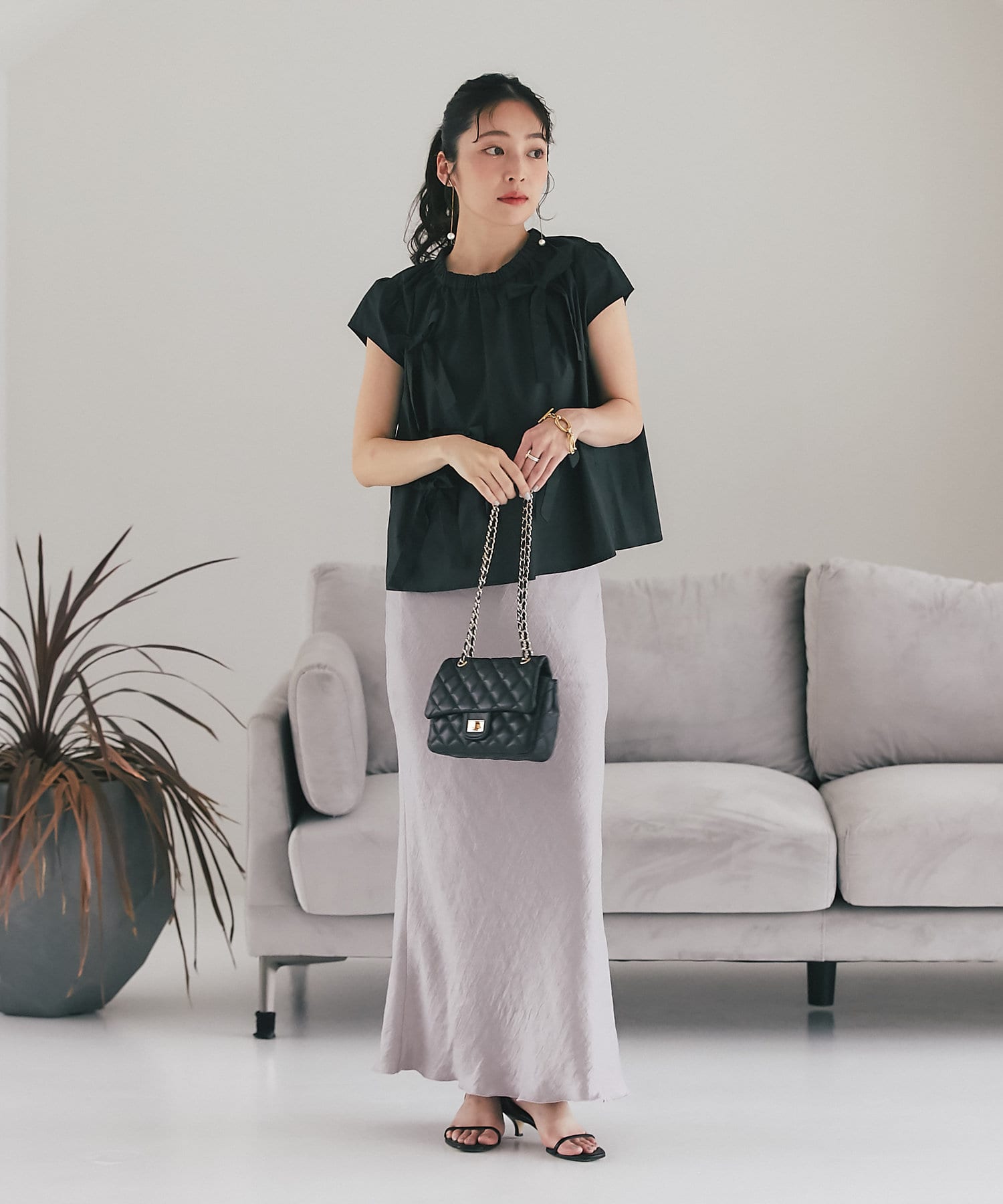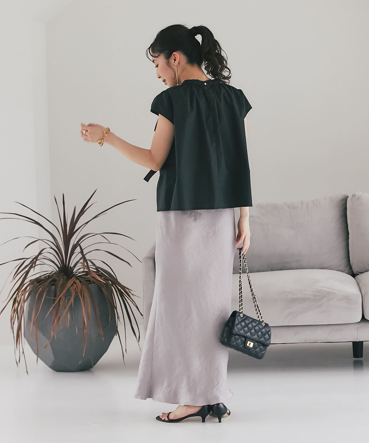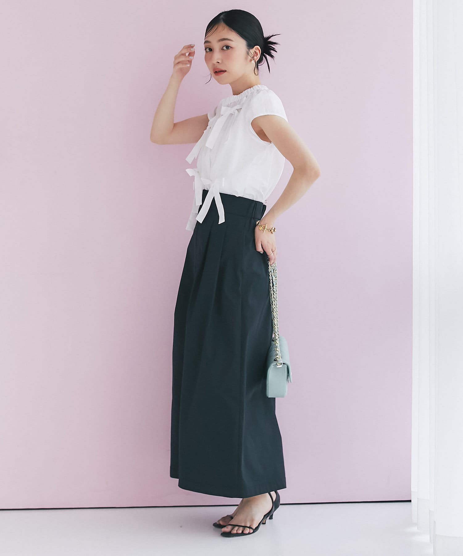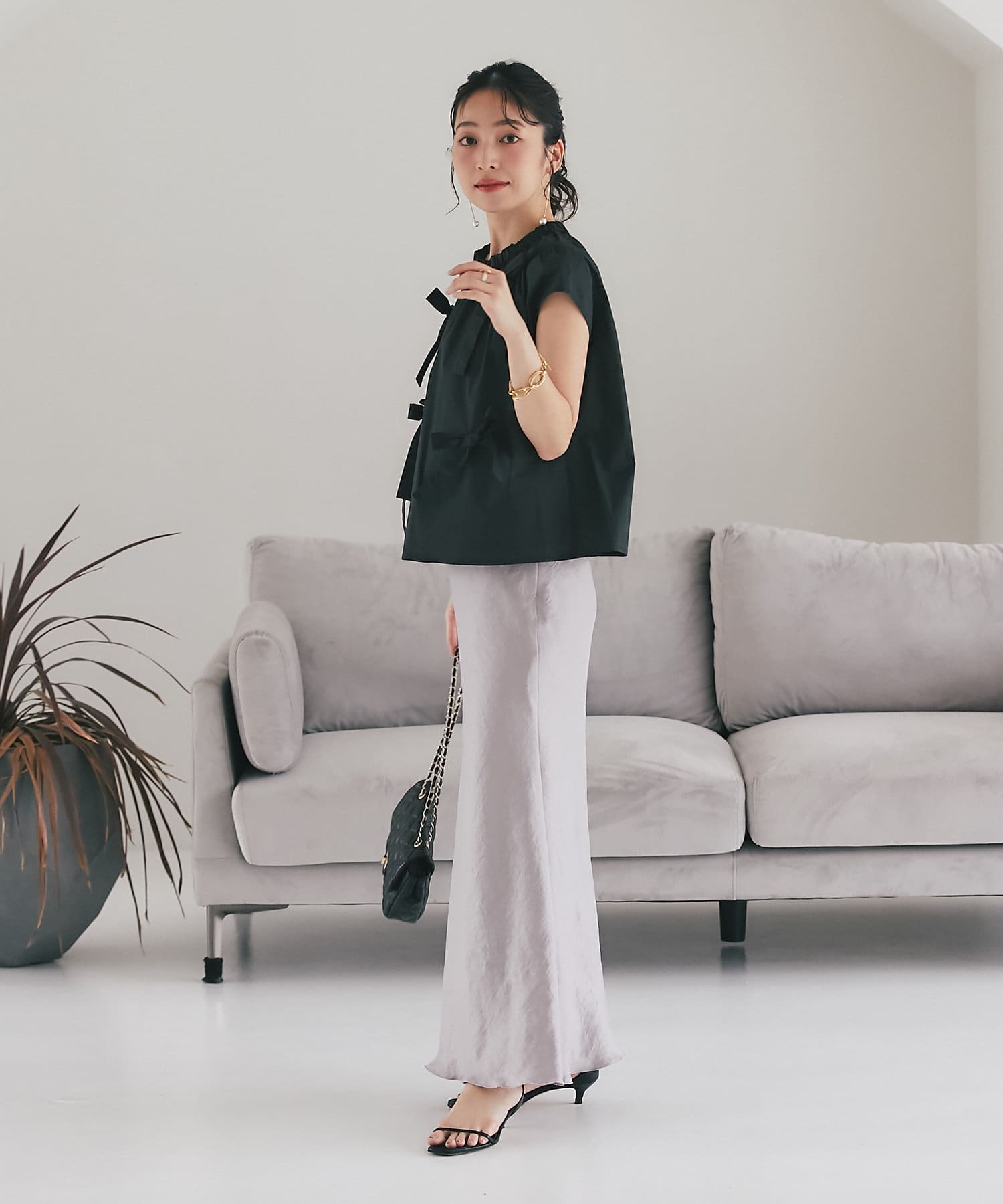 ボリューム感あるブラウスなので、タイトめなスカートとの相性◎