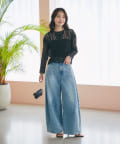 デニムと合わせてカジュアルなオフスタイルにも、落ち感のあるスカートで大人っぽくまとめるのも