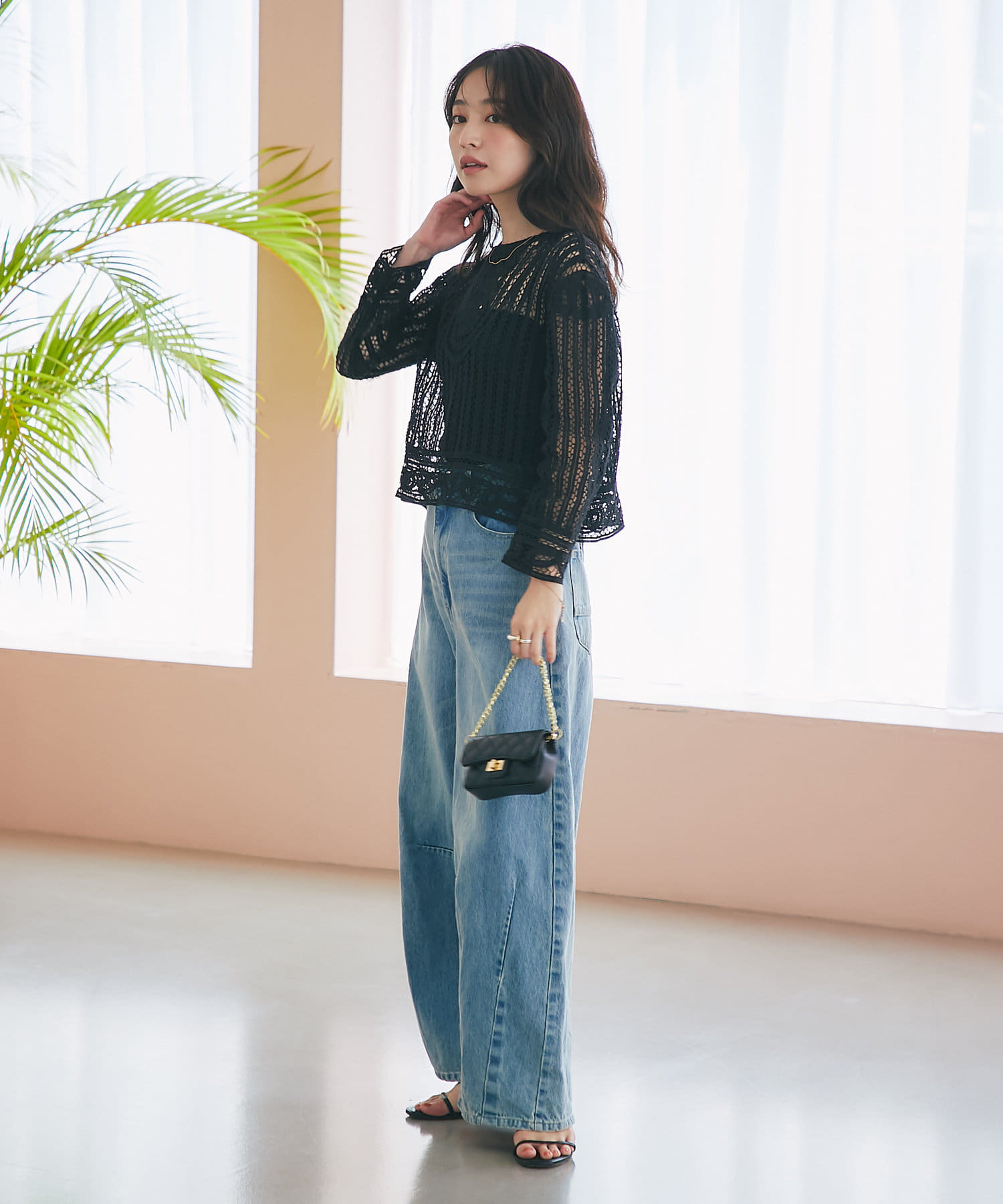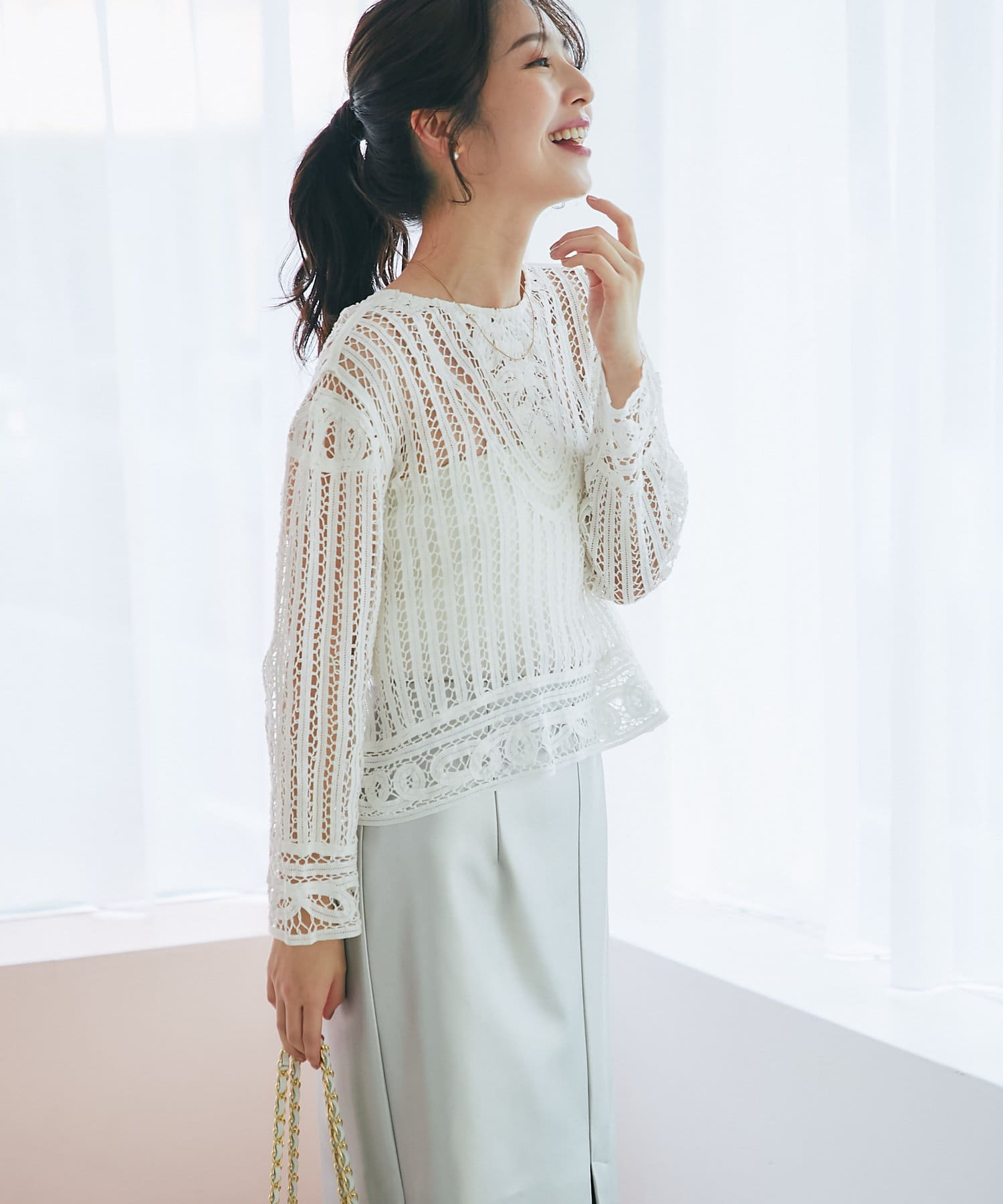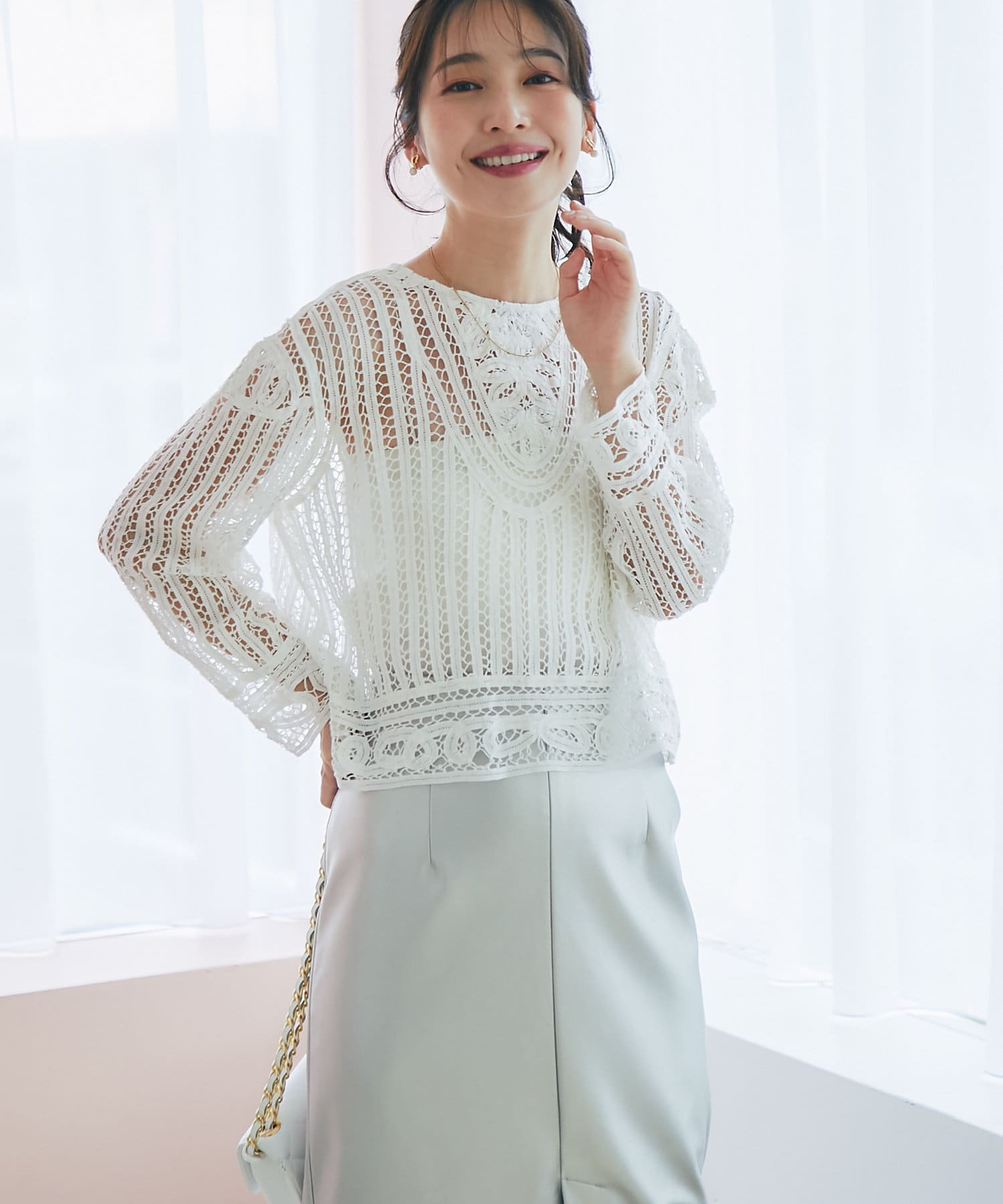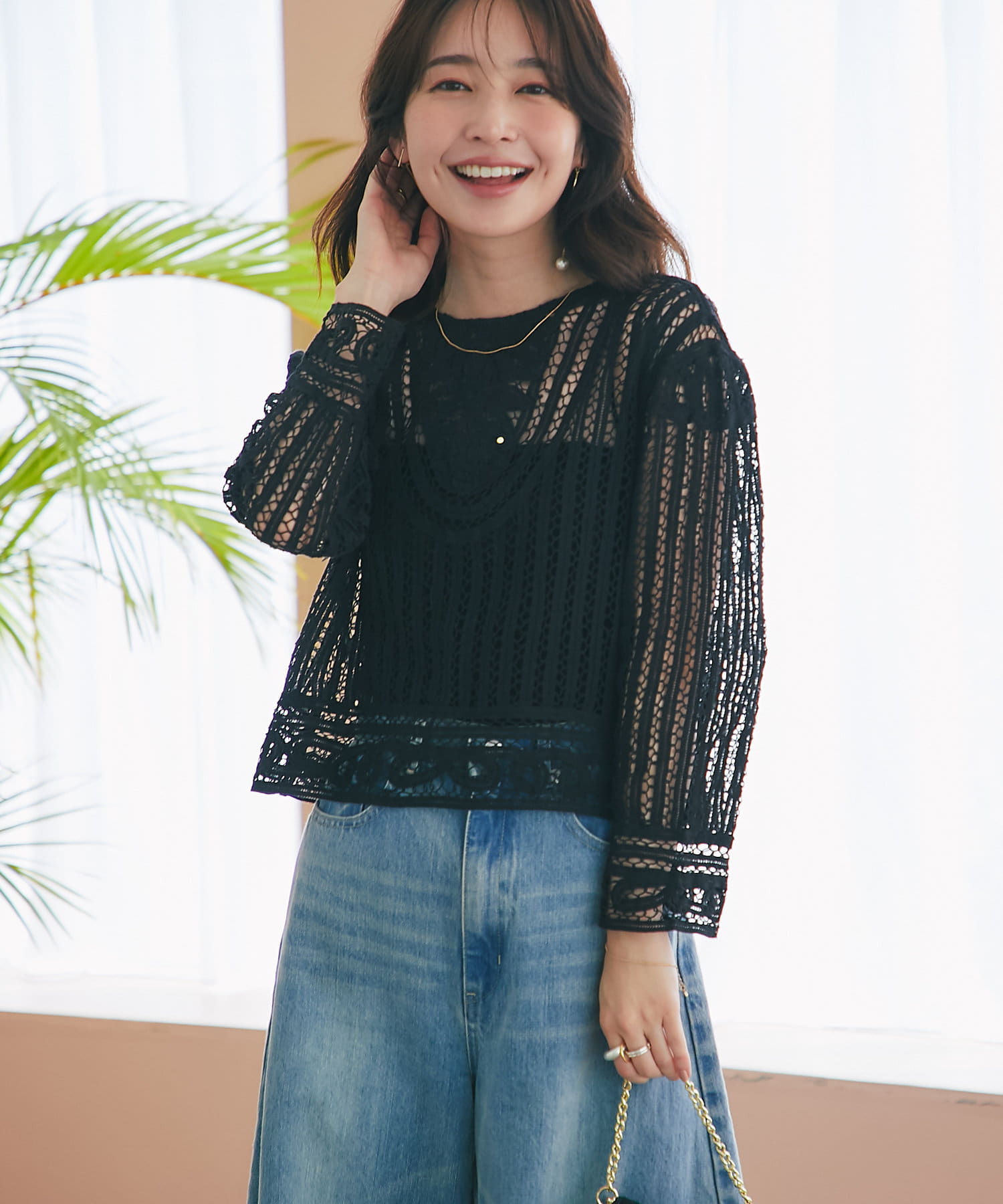 透け感が楽しめるので、インナーには同色のキャミソールが◎。