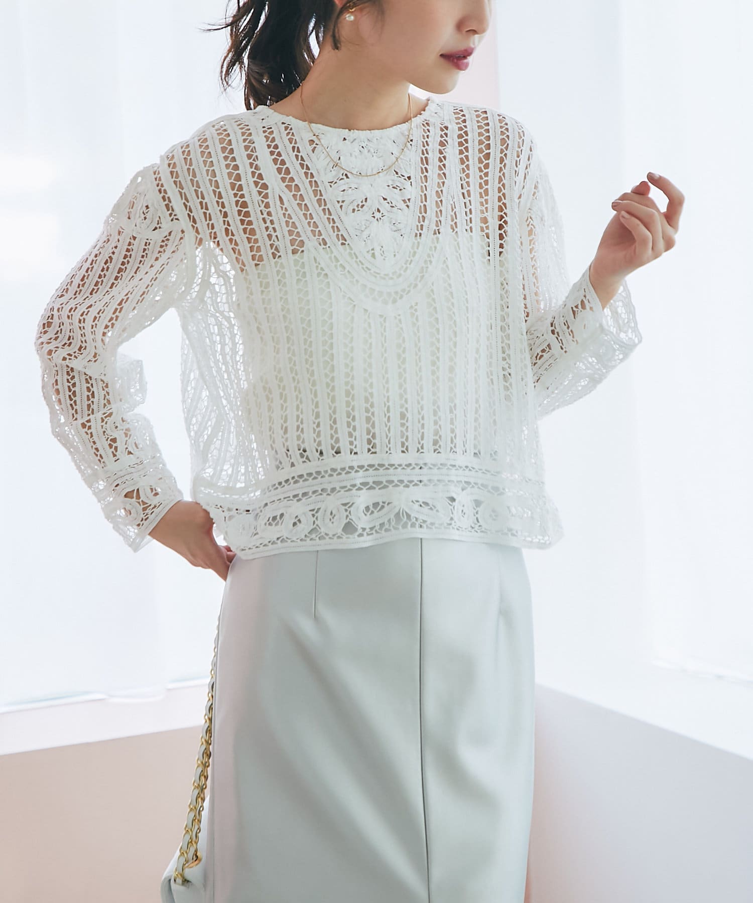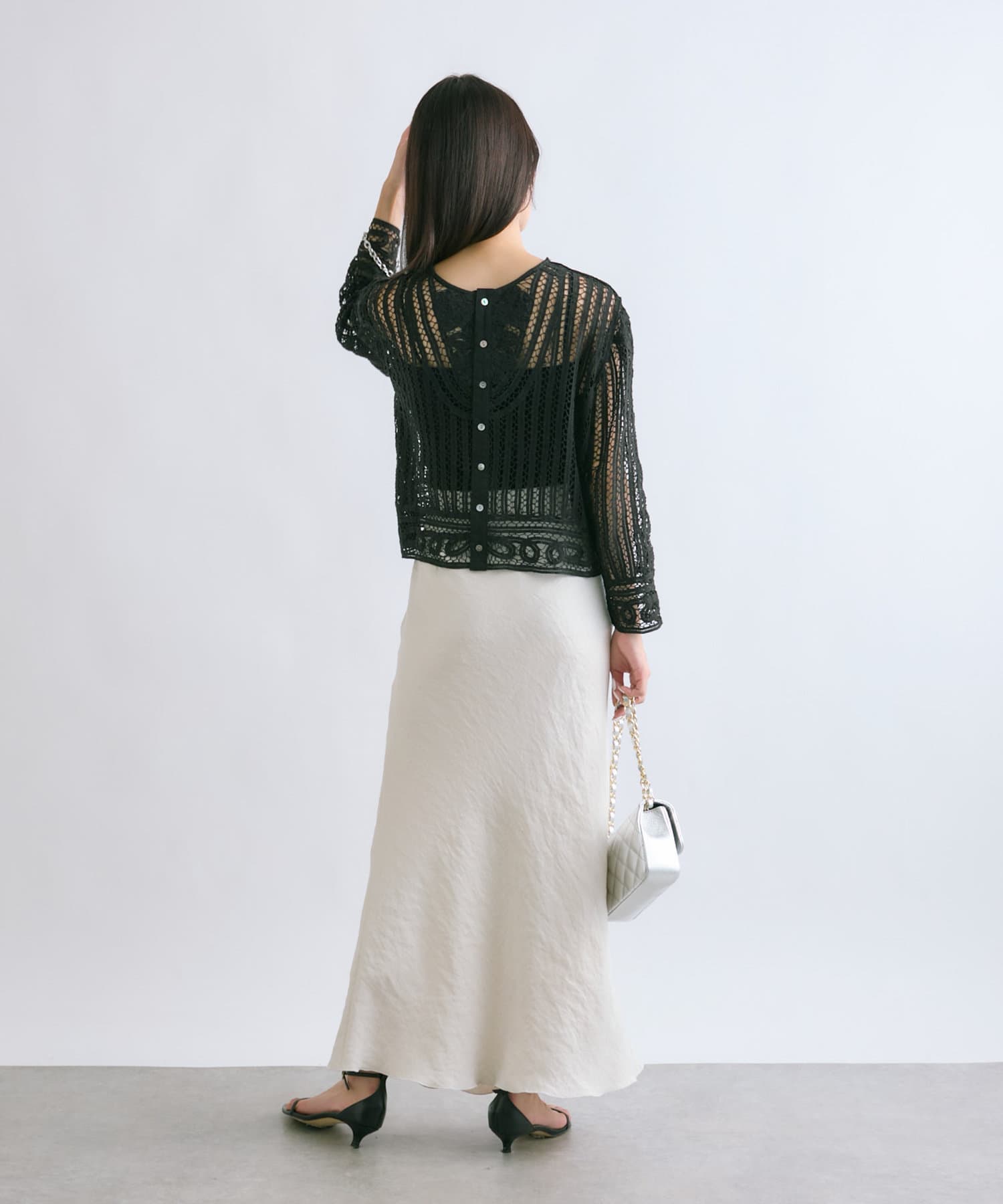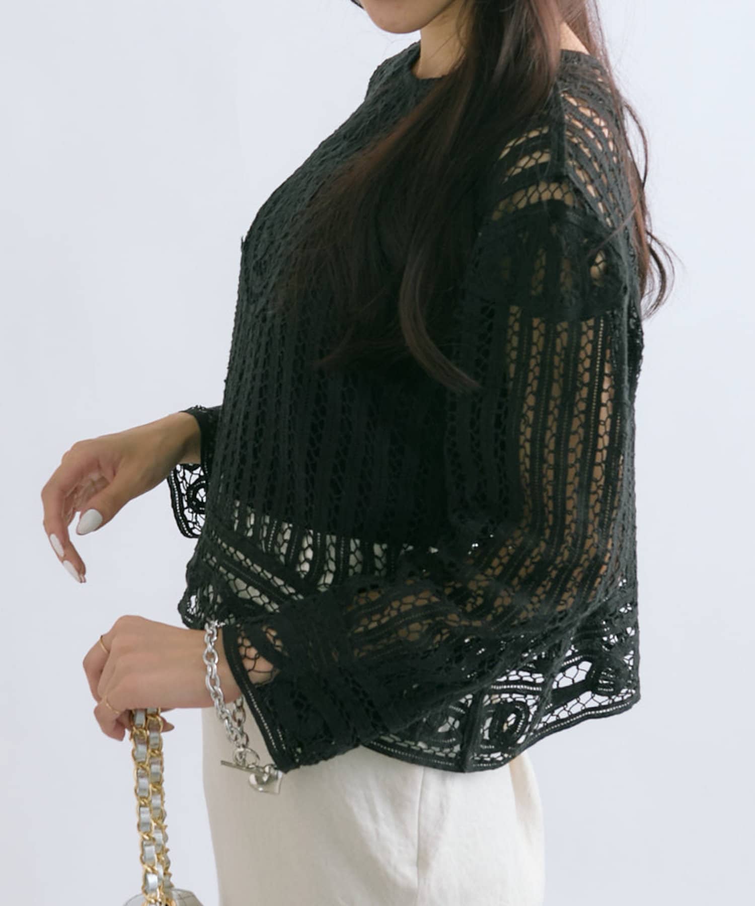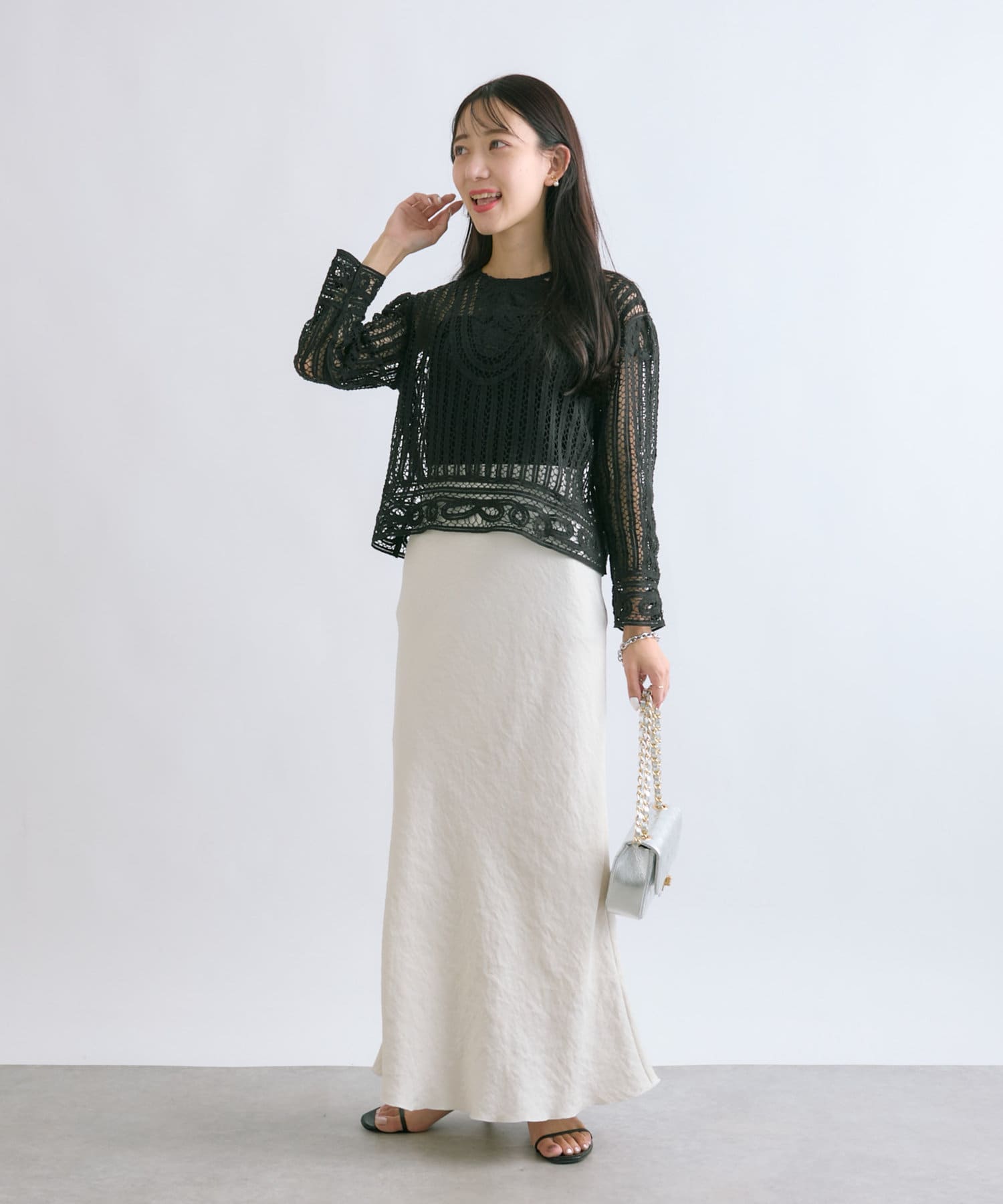 透け感が楽しめるので、インナーには同色のキャミソールが◎。