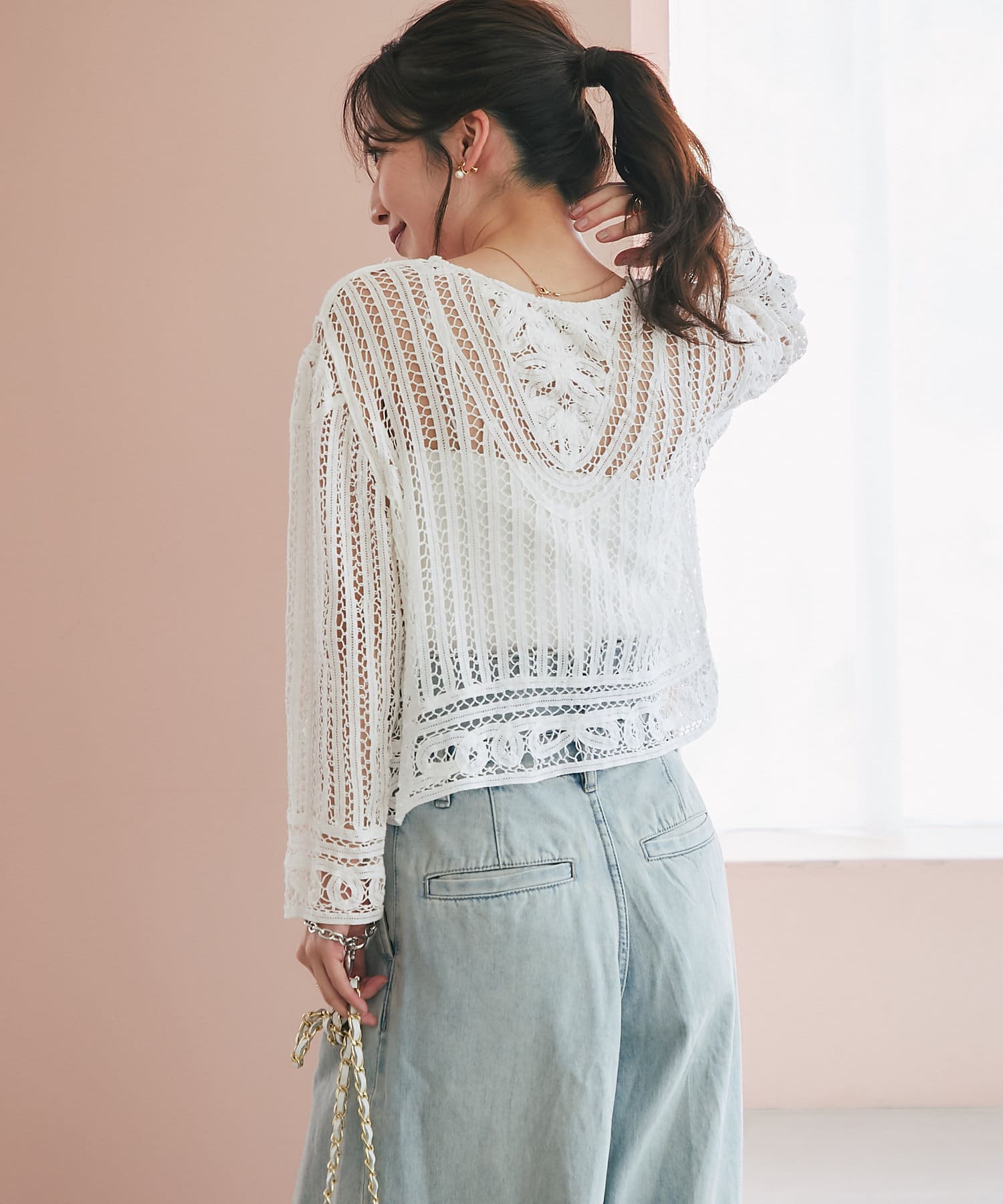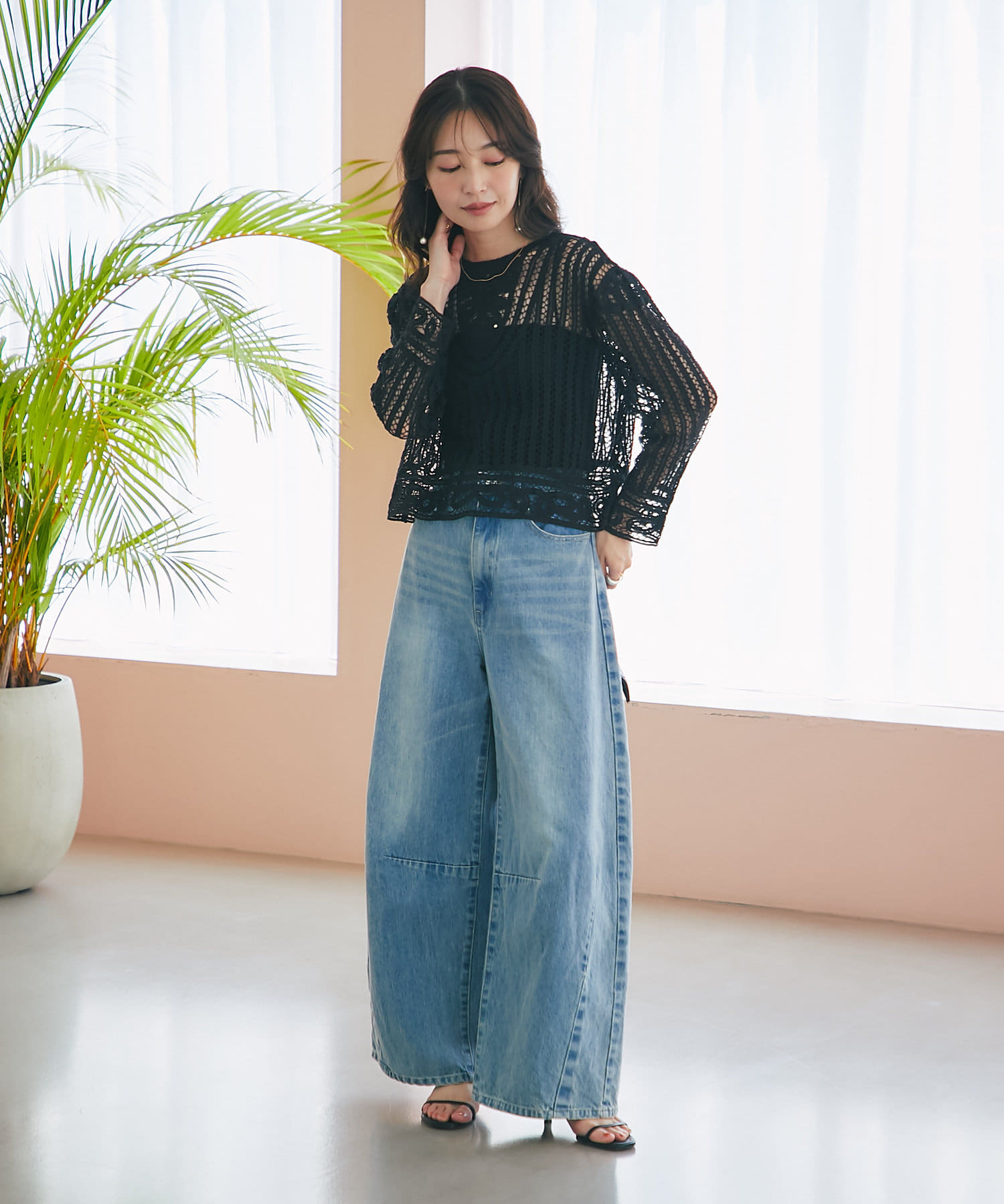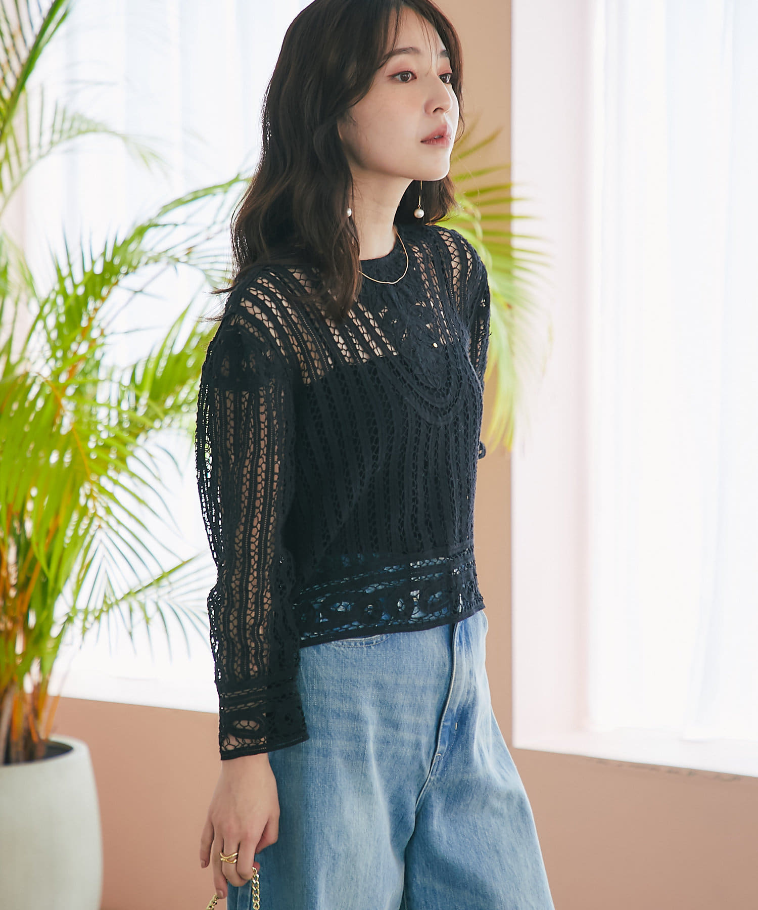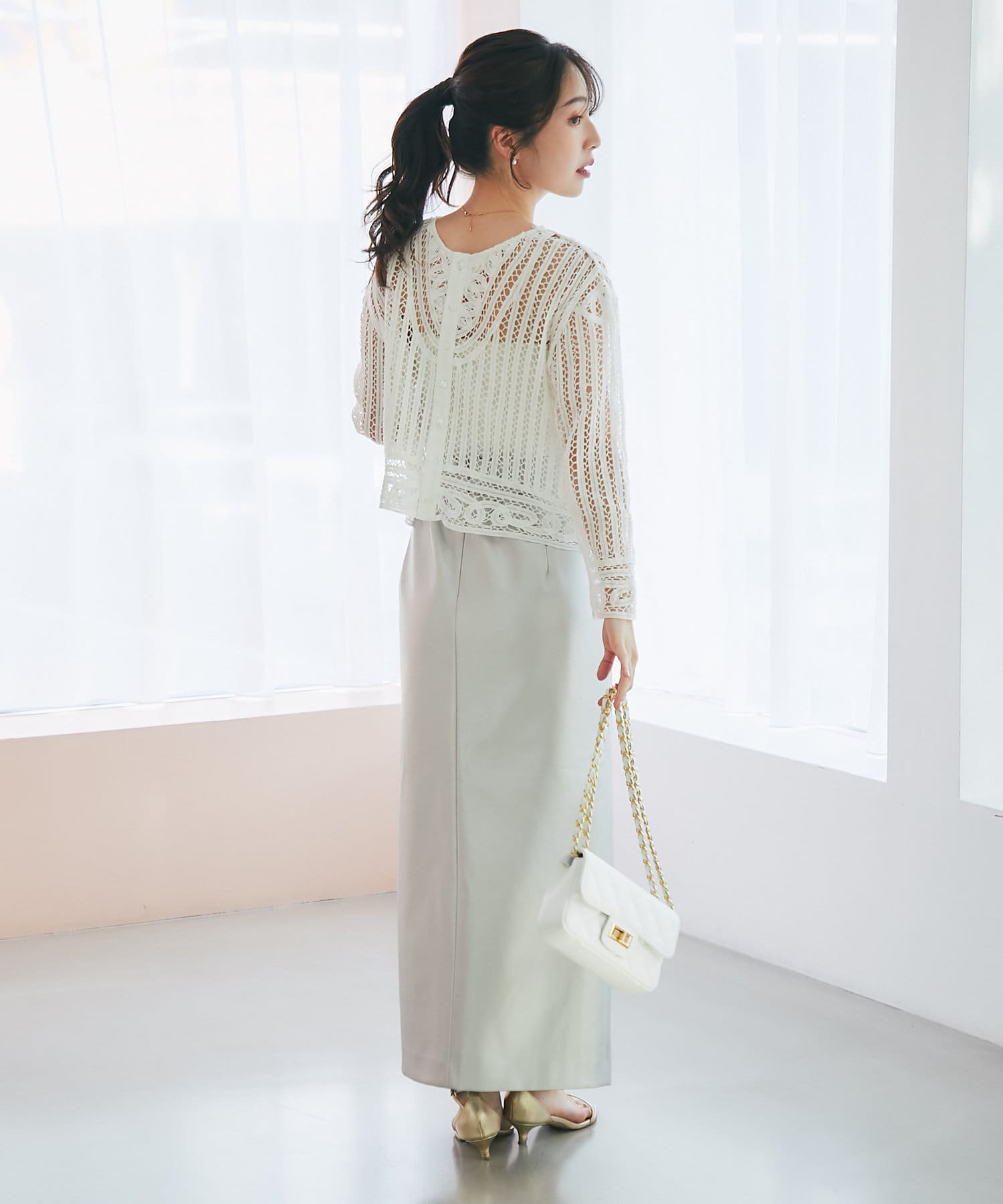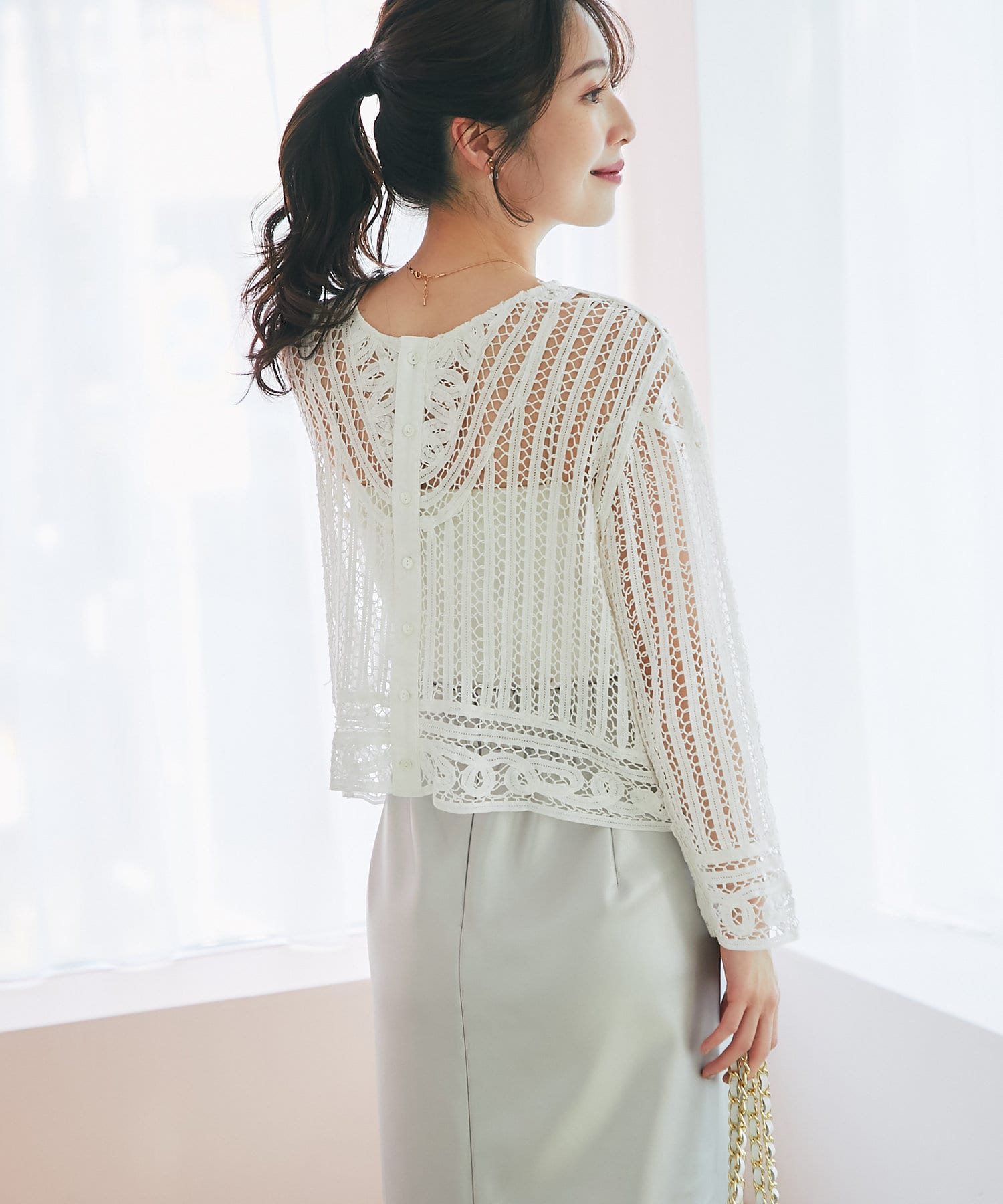 透け感が楽しめるので、インナーには同色のキャミソールが◎。