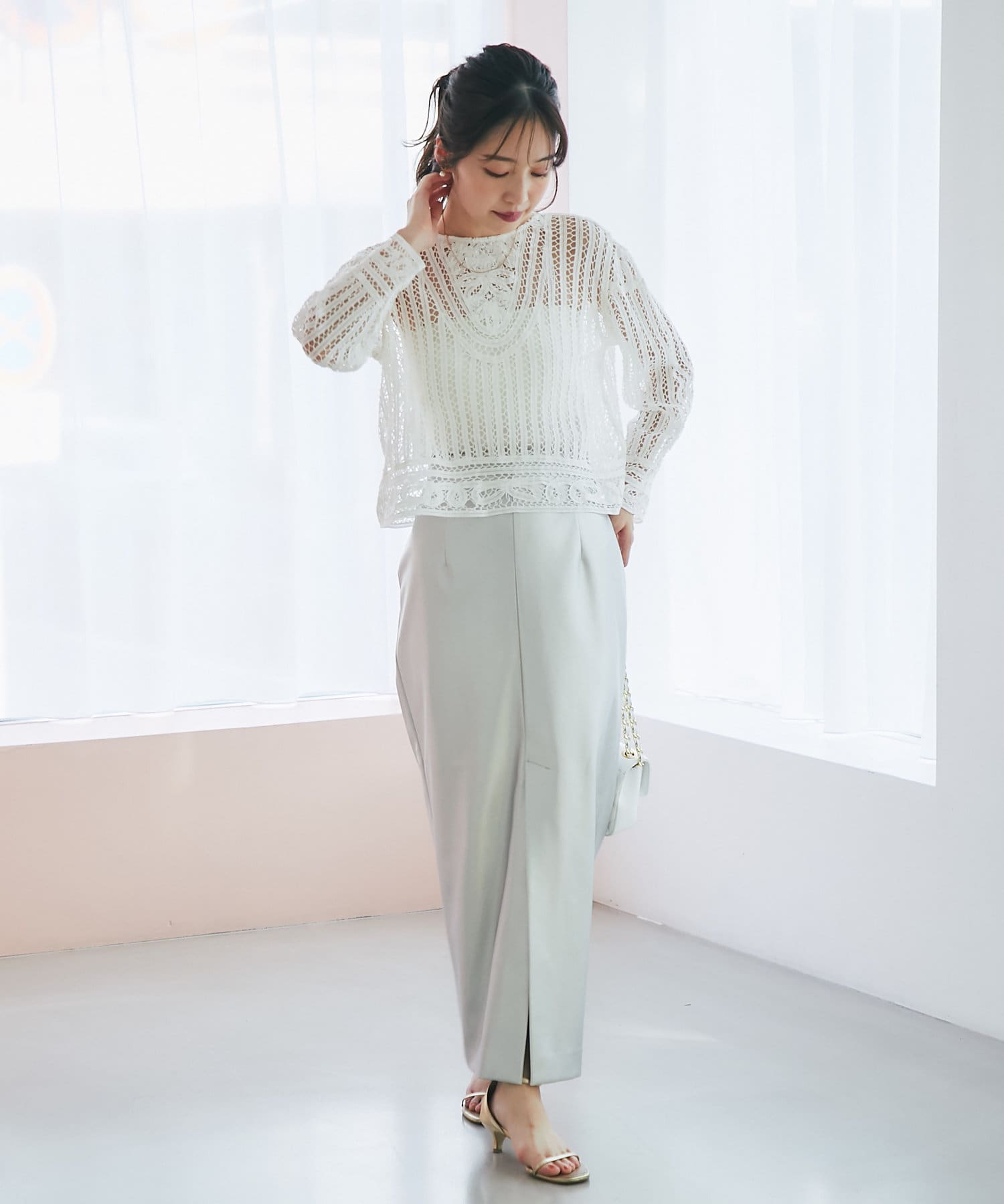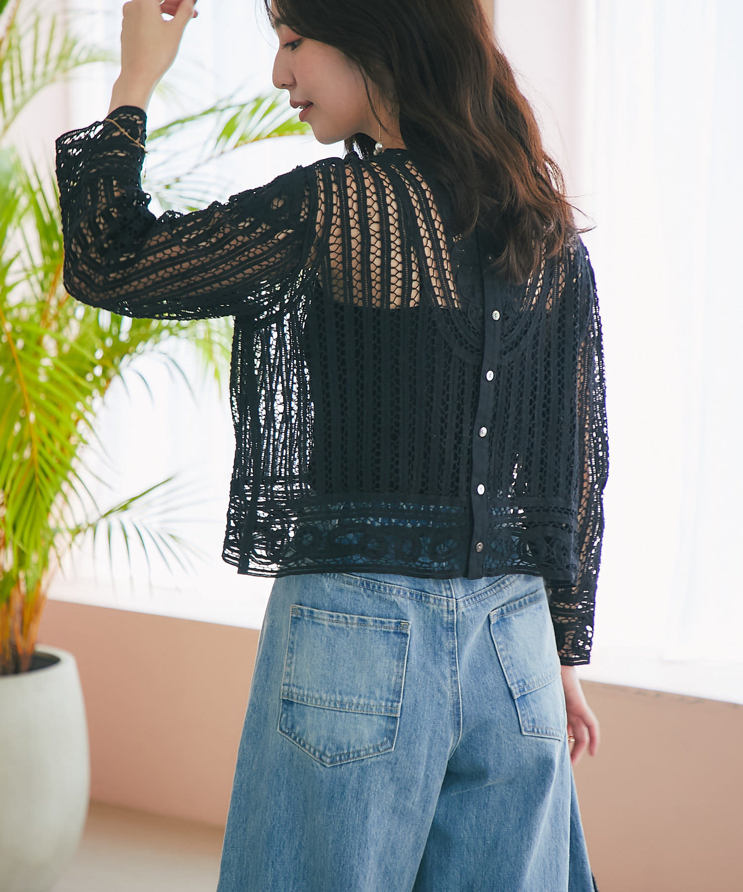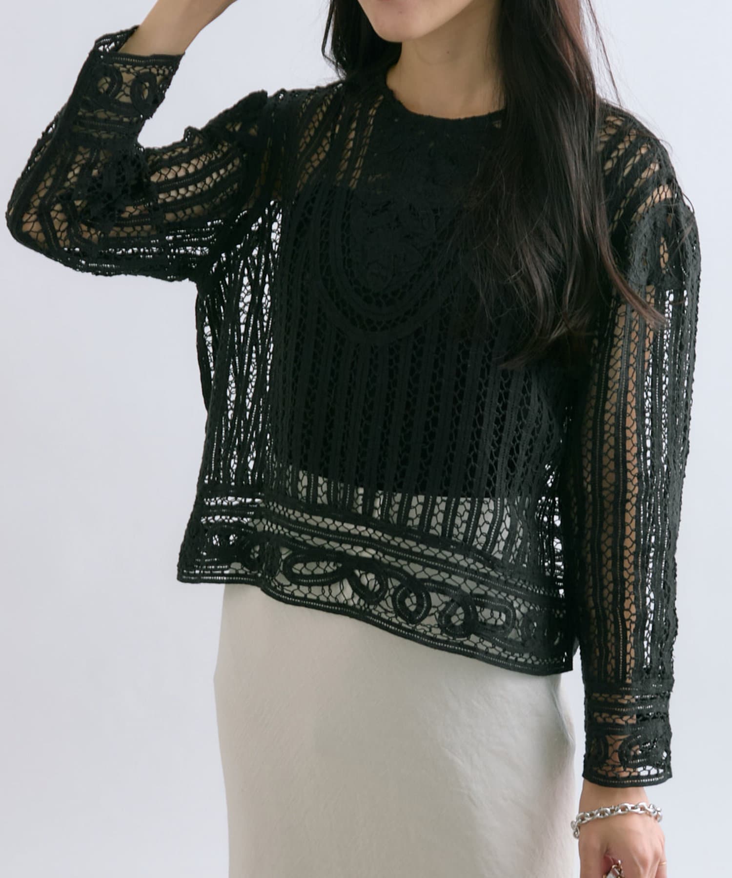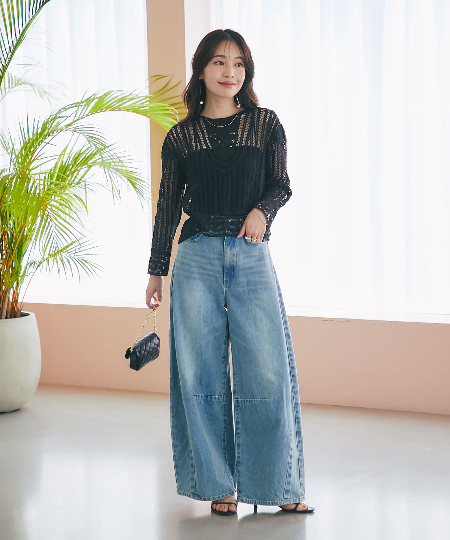透け感が楽しめるので、インナーには同色のキャミソールが◎。