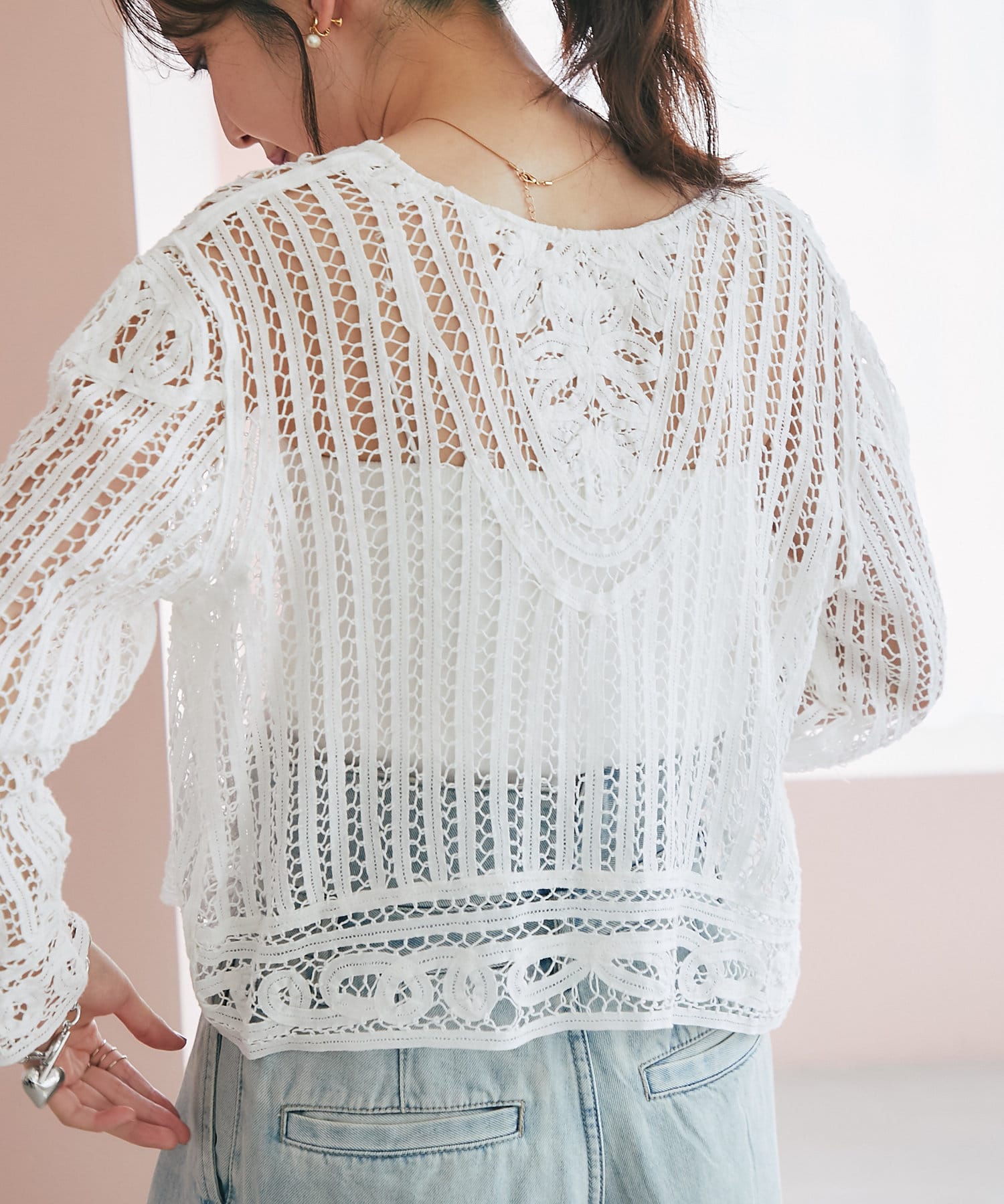 すべて手でバテンレースで形を作った手の込んだブラウスです。