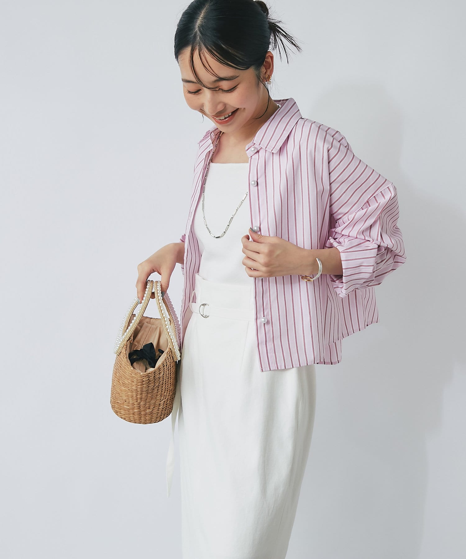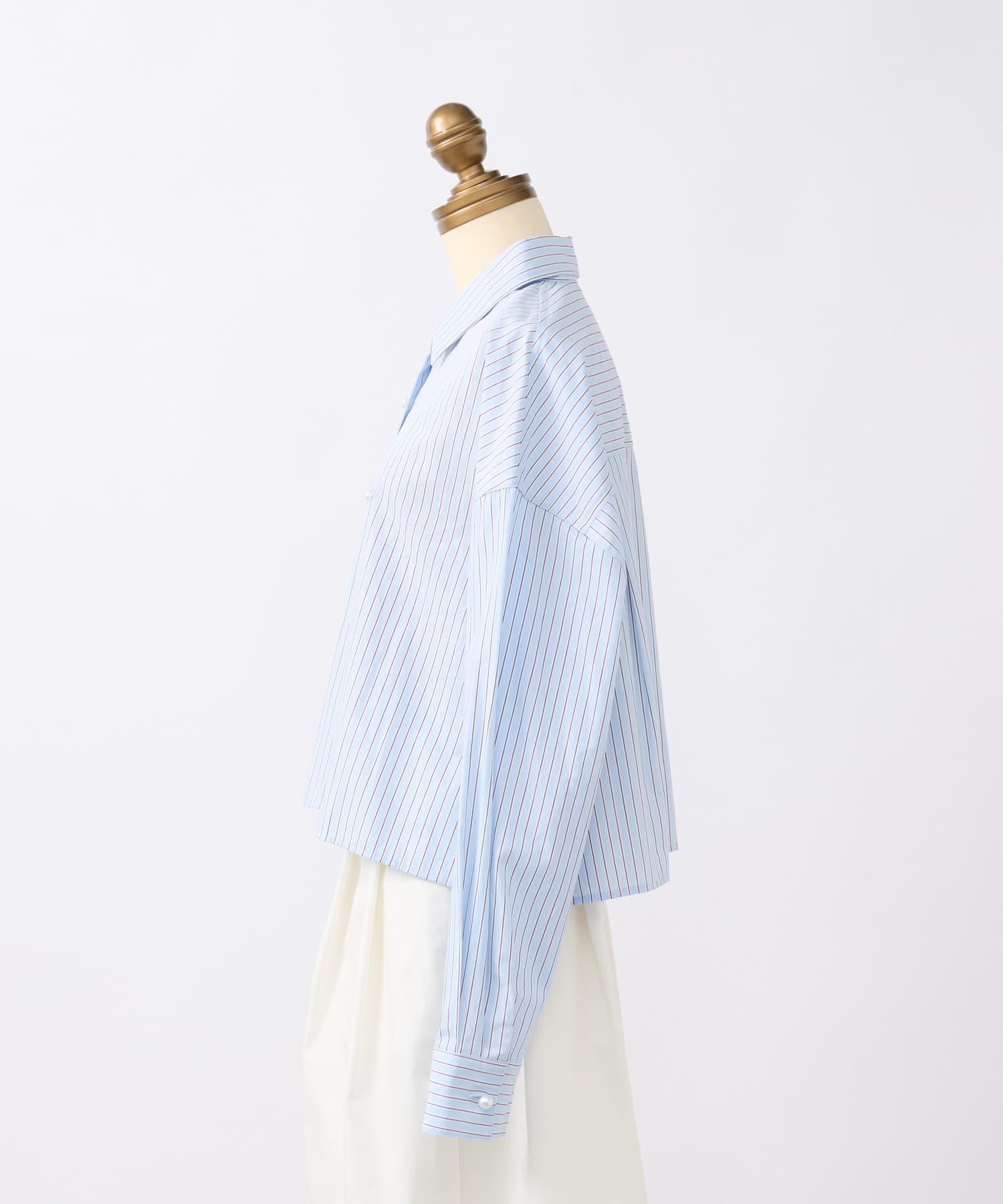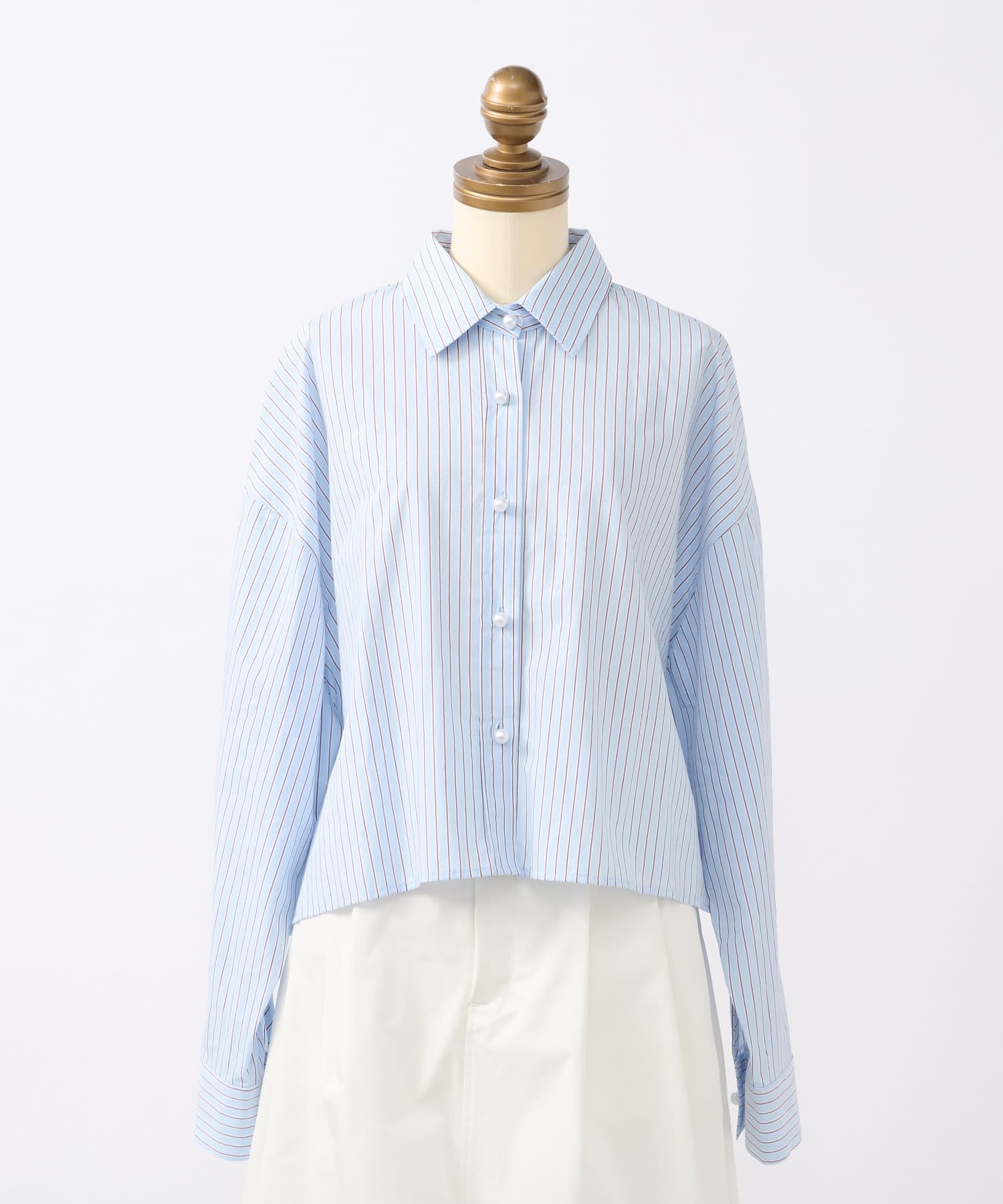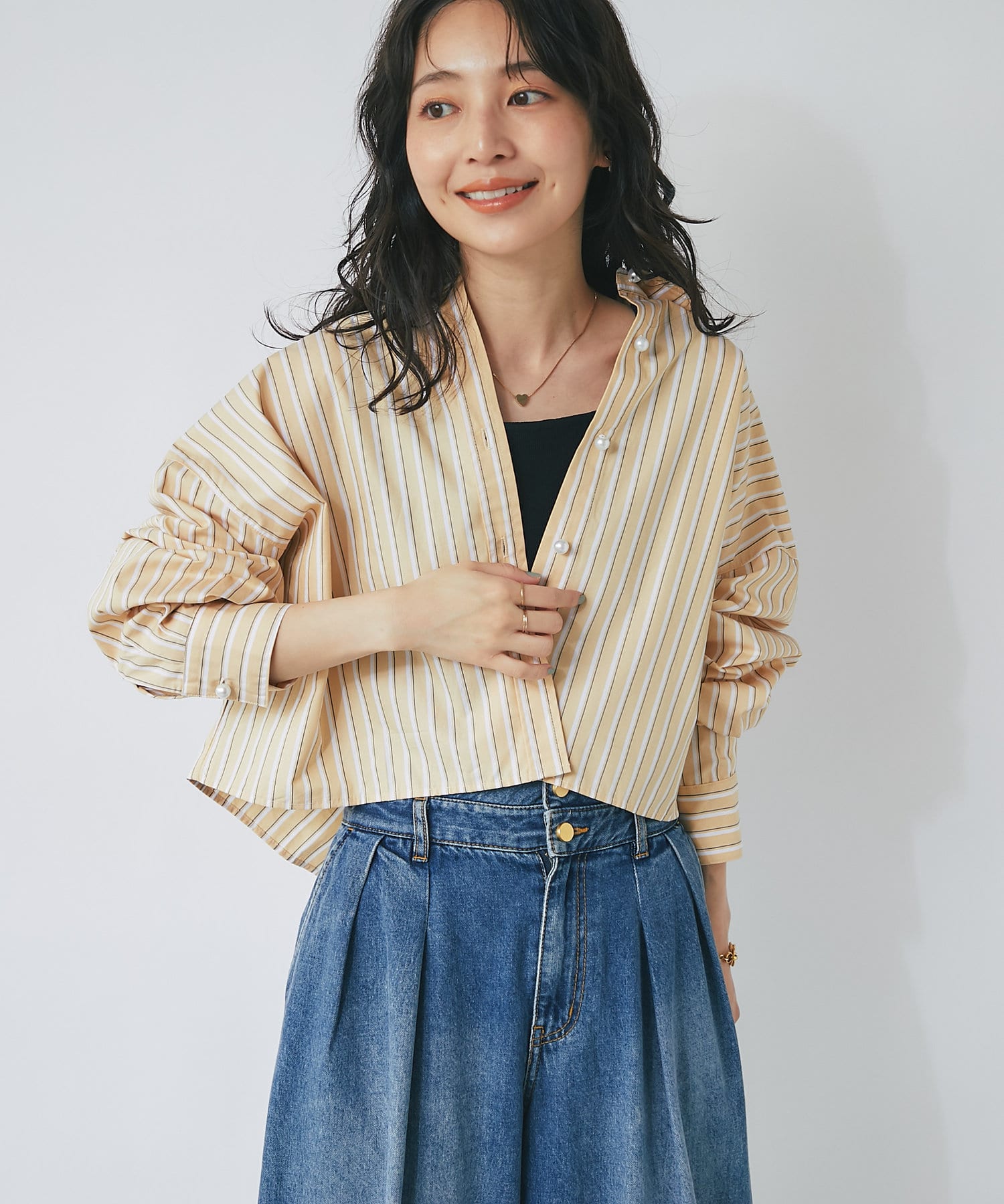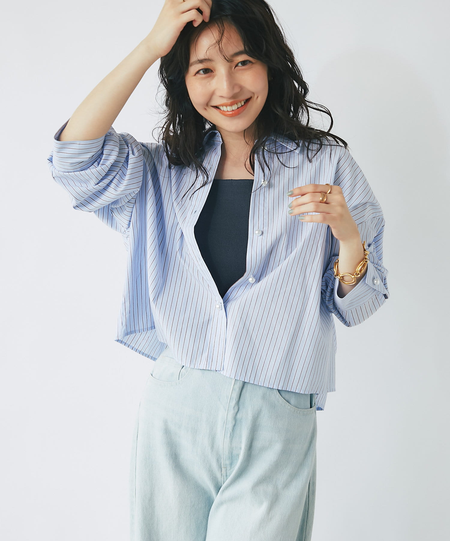 トレンド感がありながら短すぎないクロップド丈のシャツ。