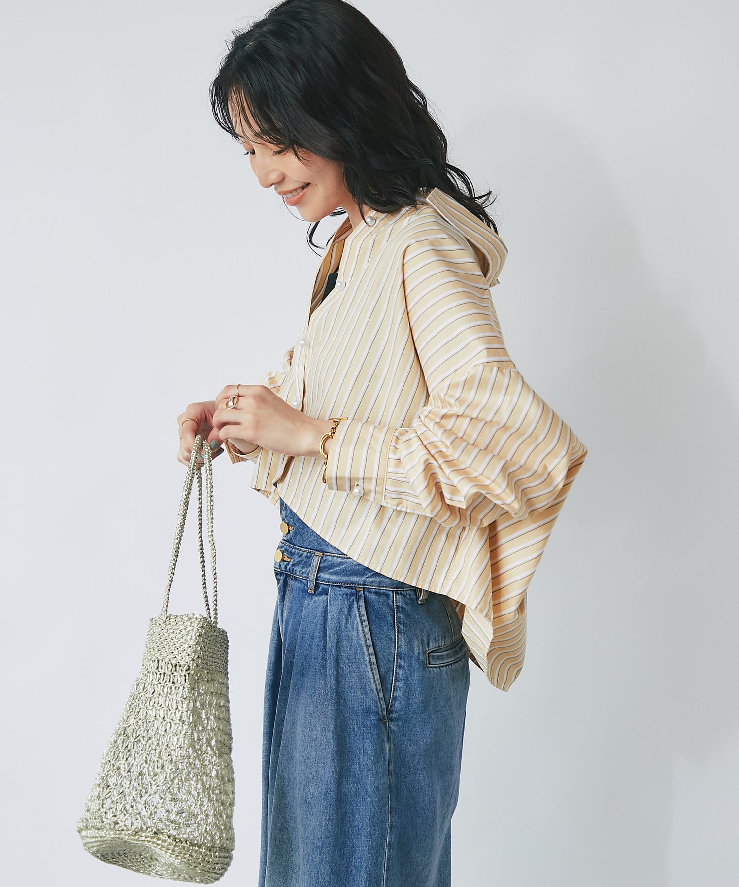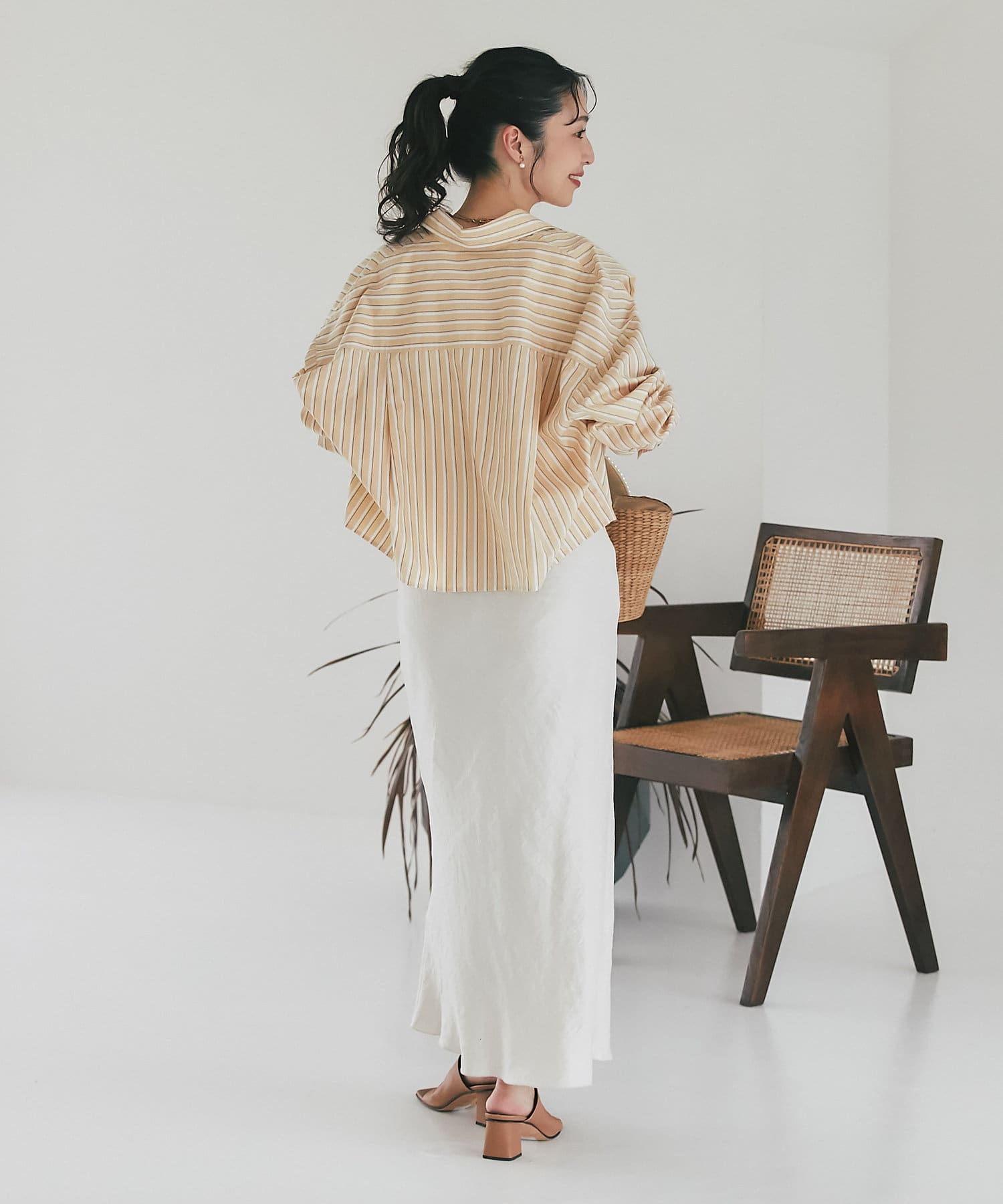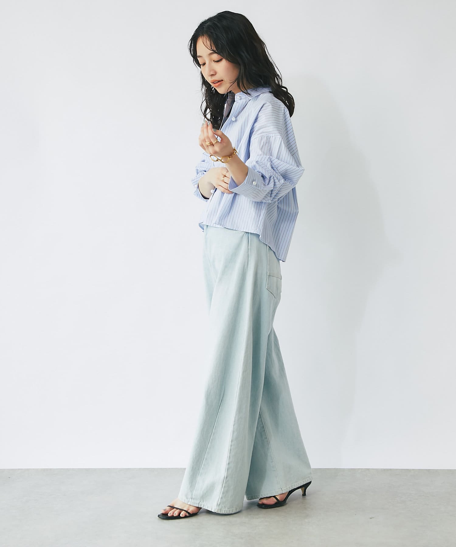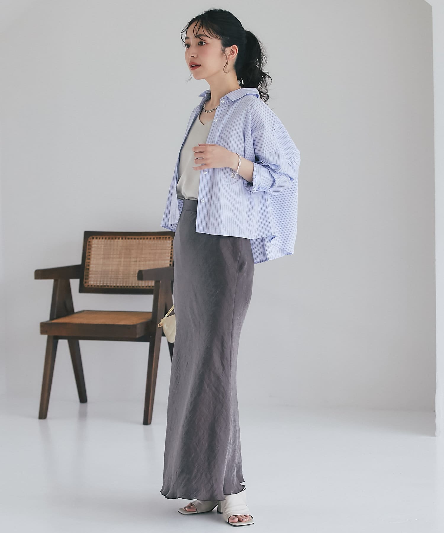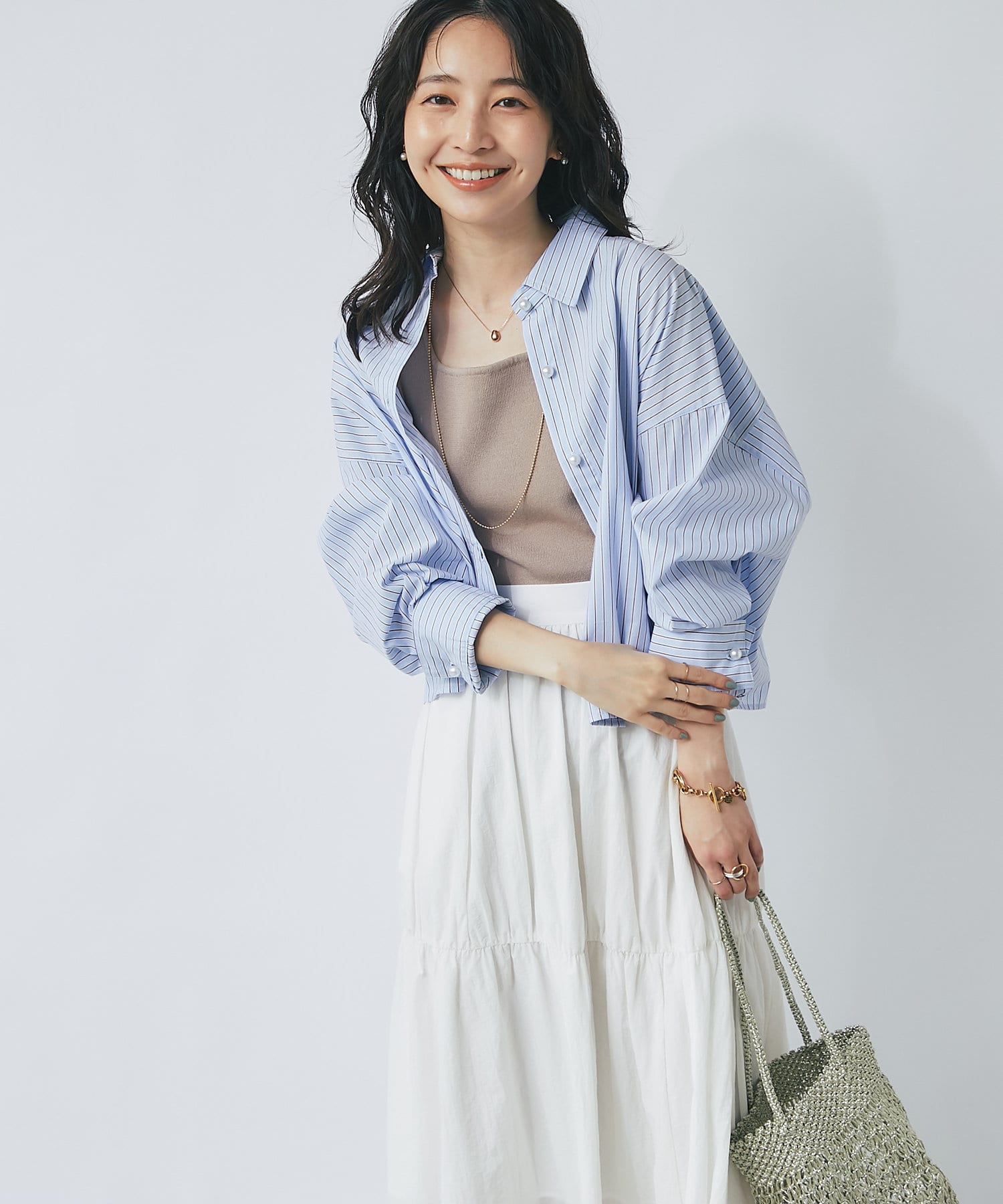 トレンド感がありながら短すぎないクロップド丈のシャツ。