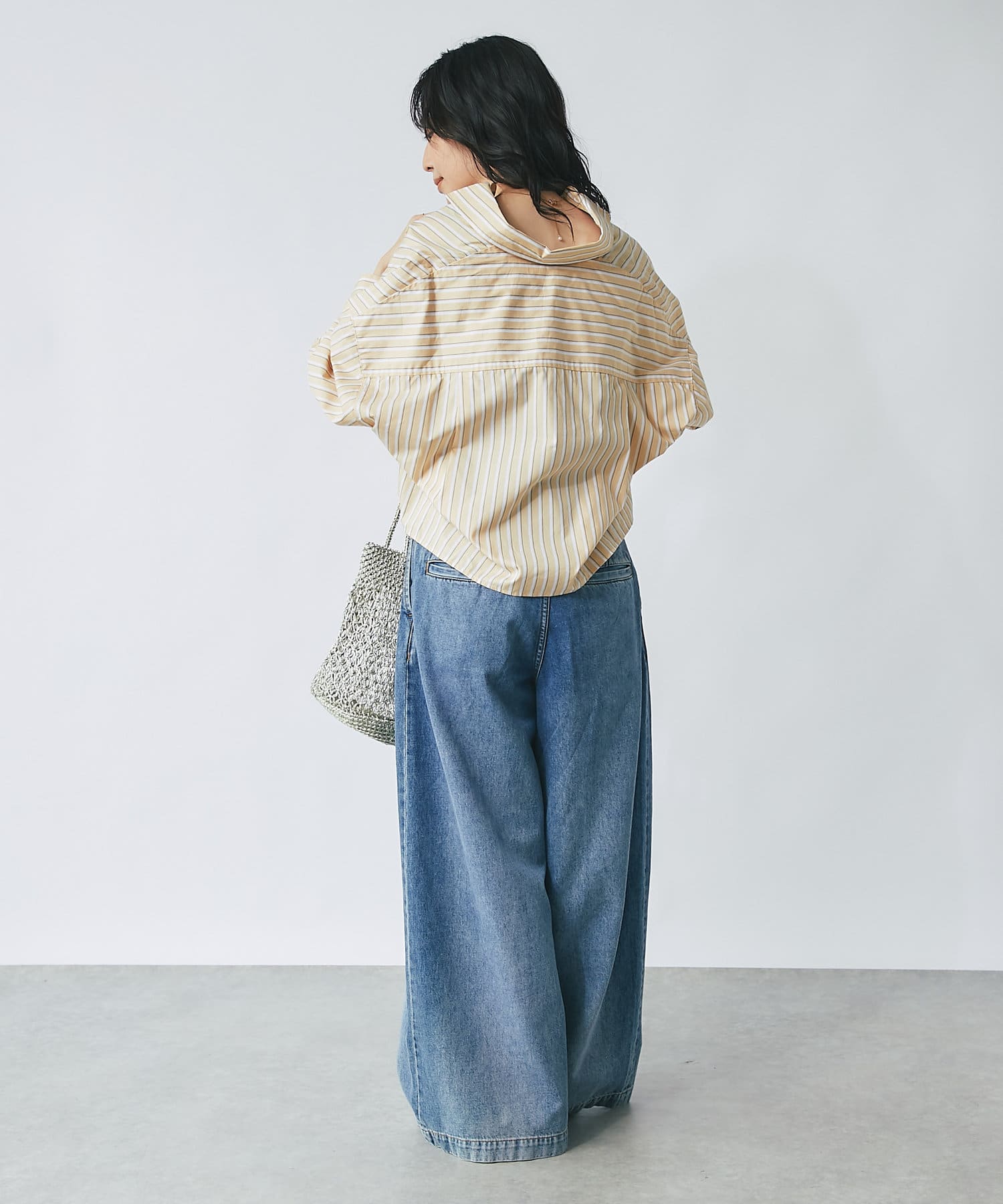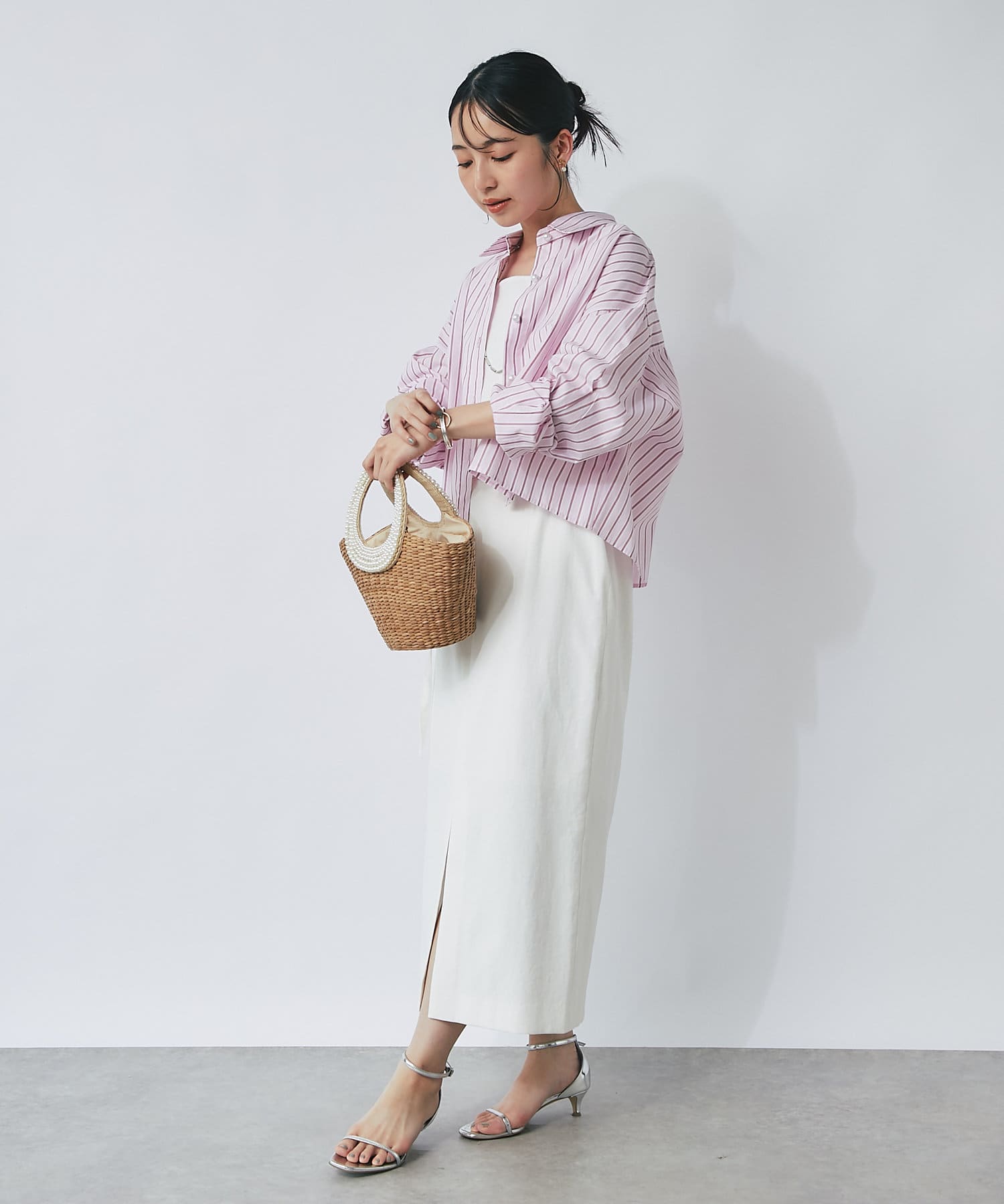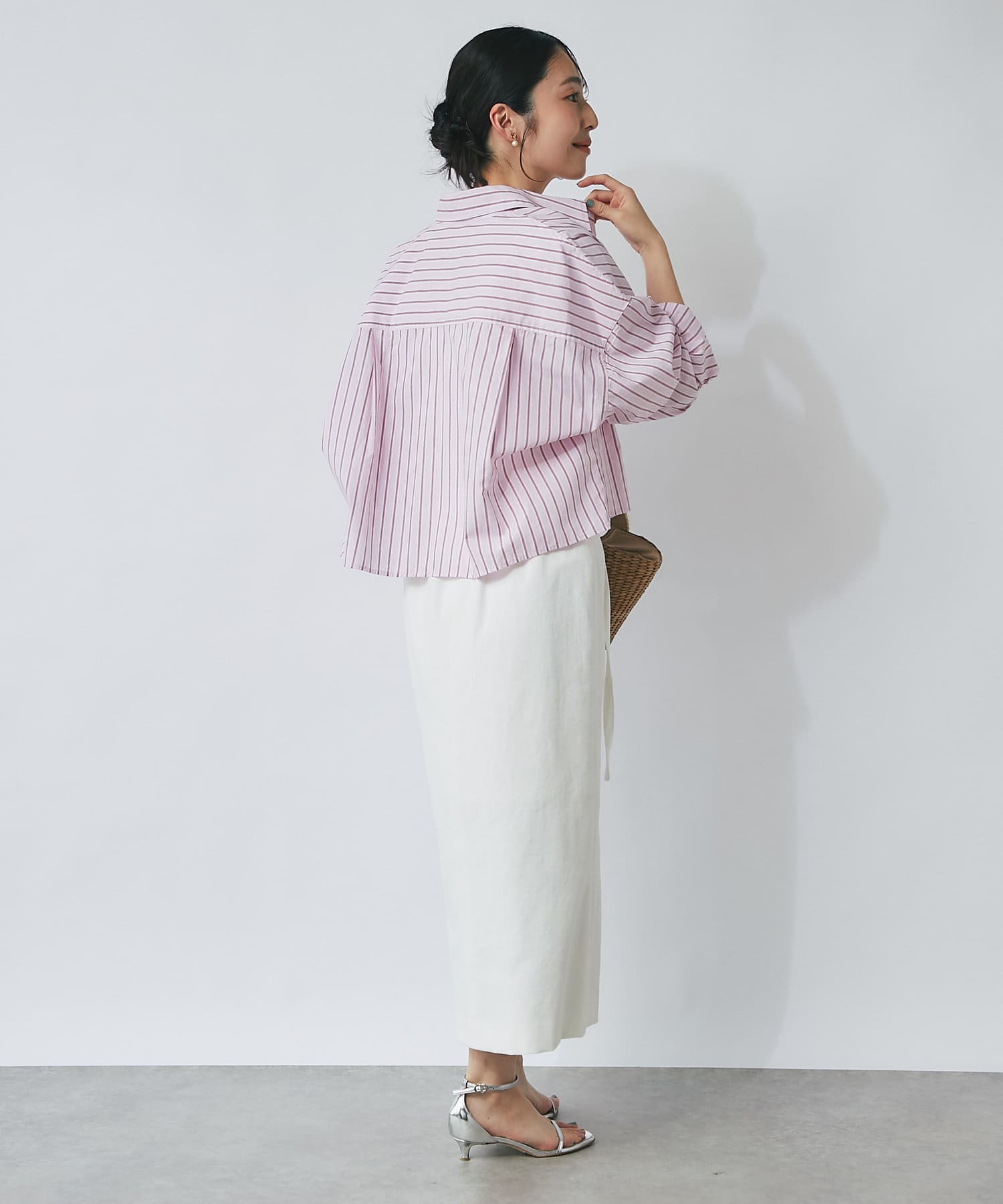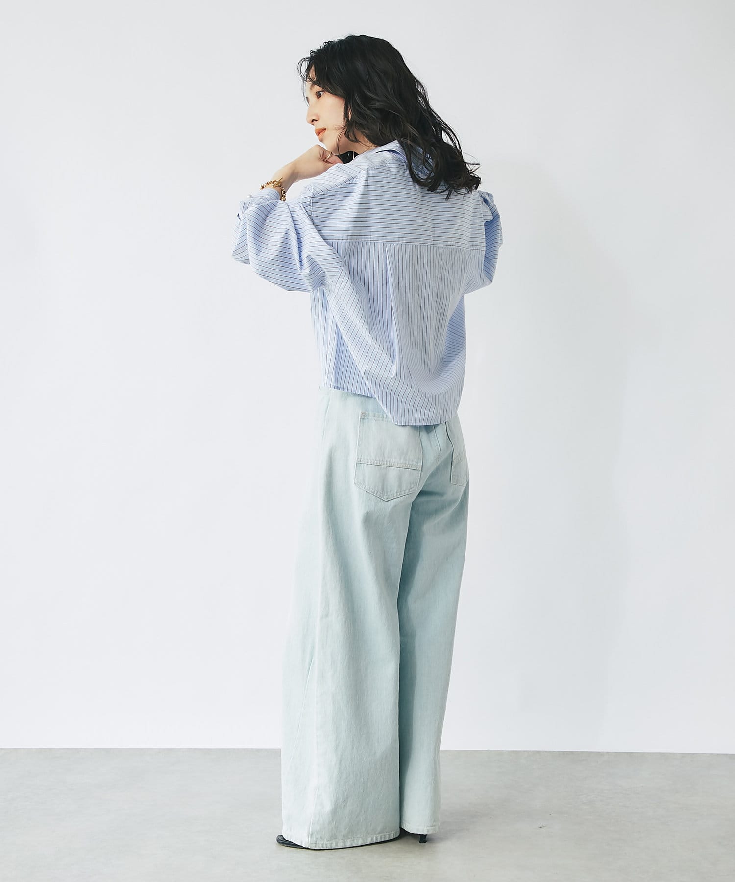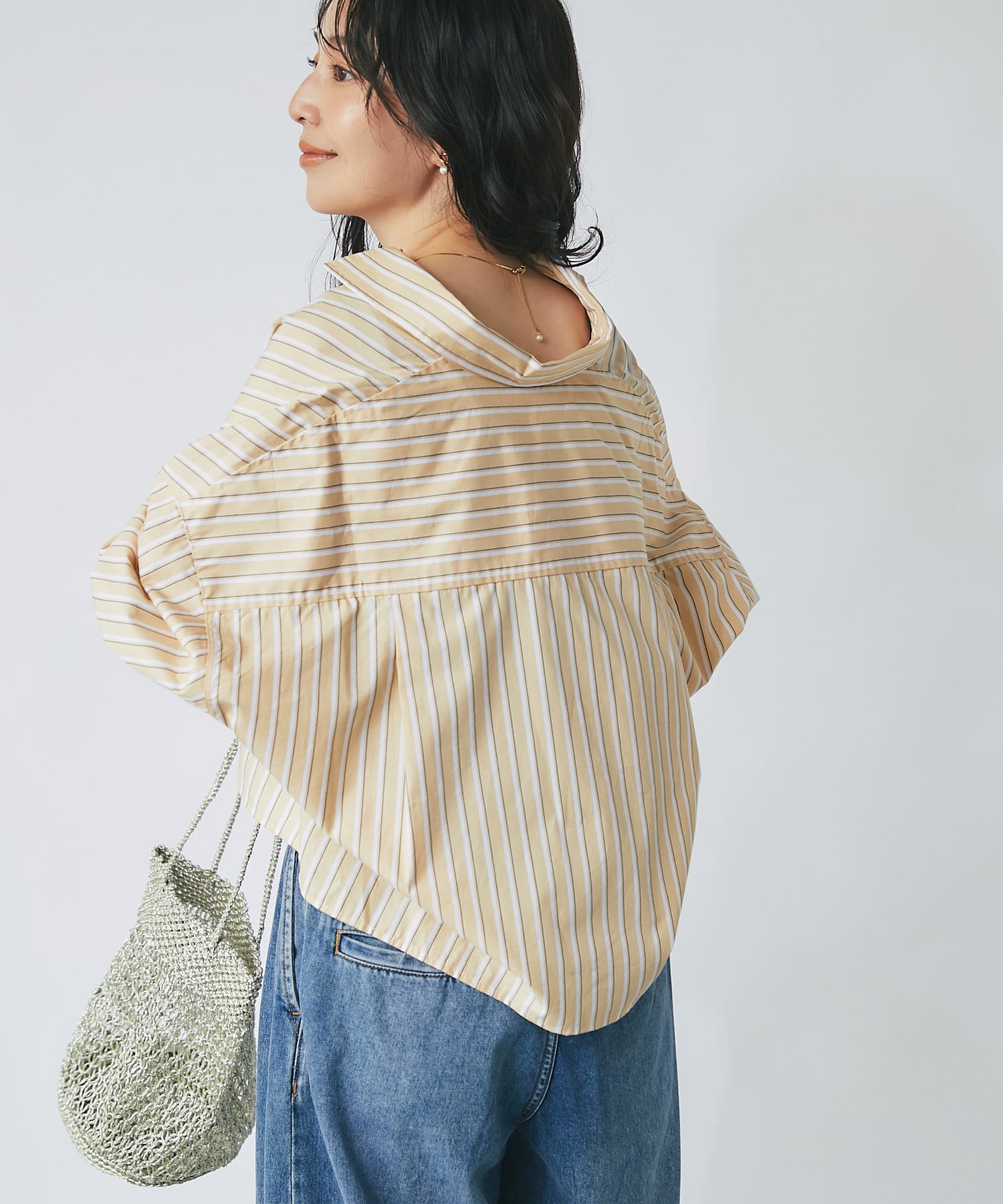 トレンド感がありながら短すぎないクロップド丈のシャツ。