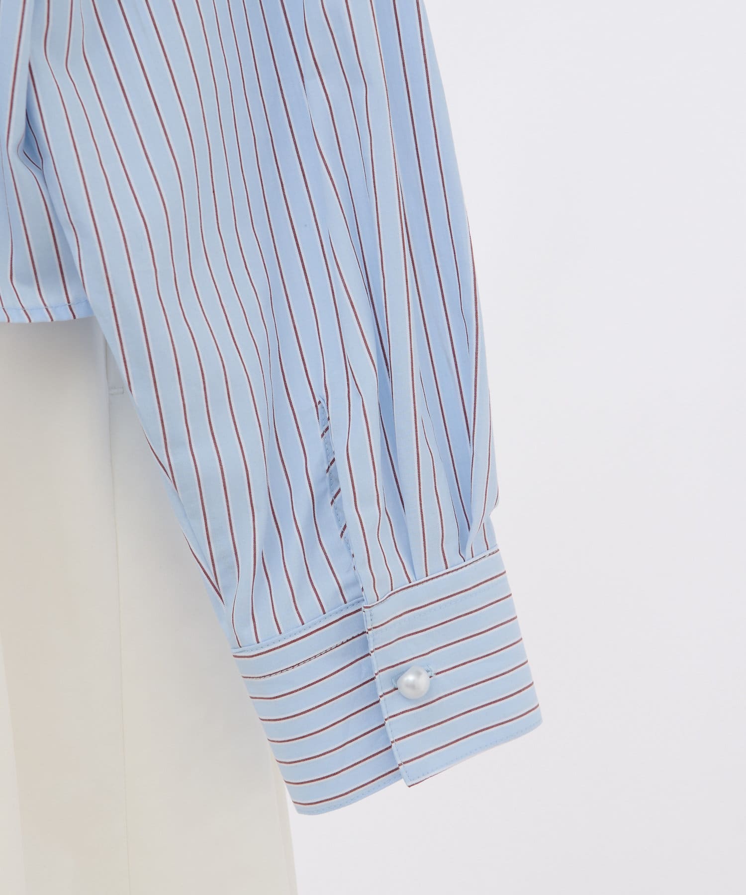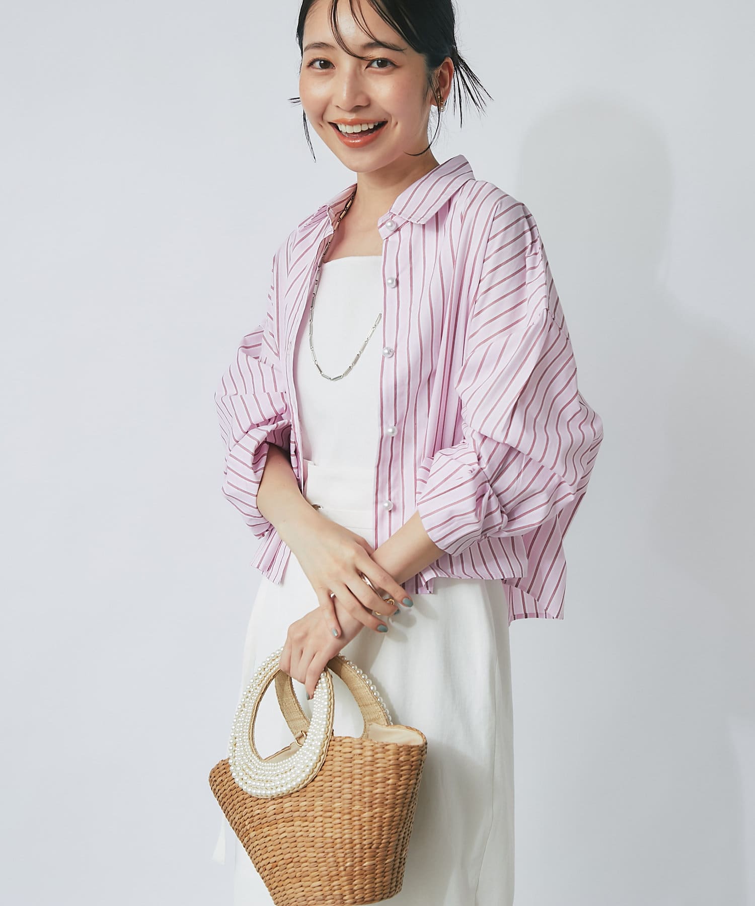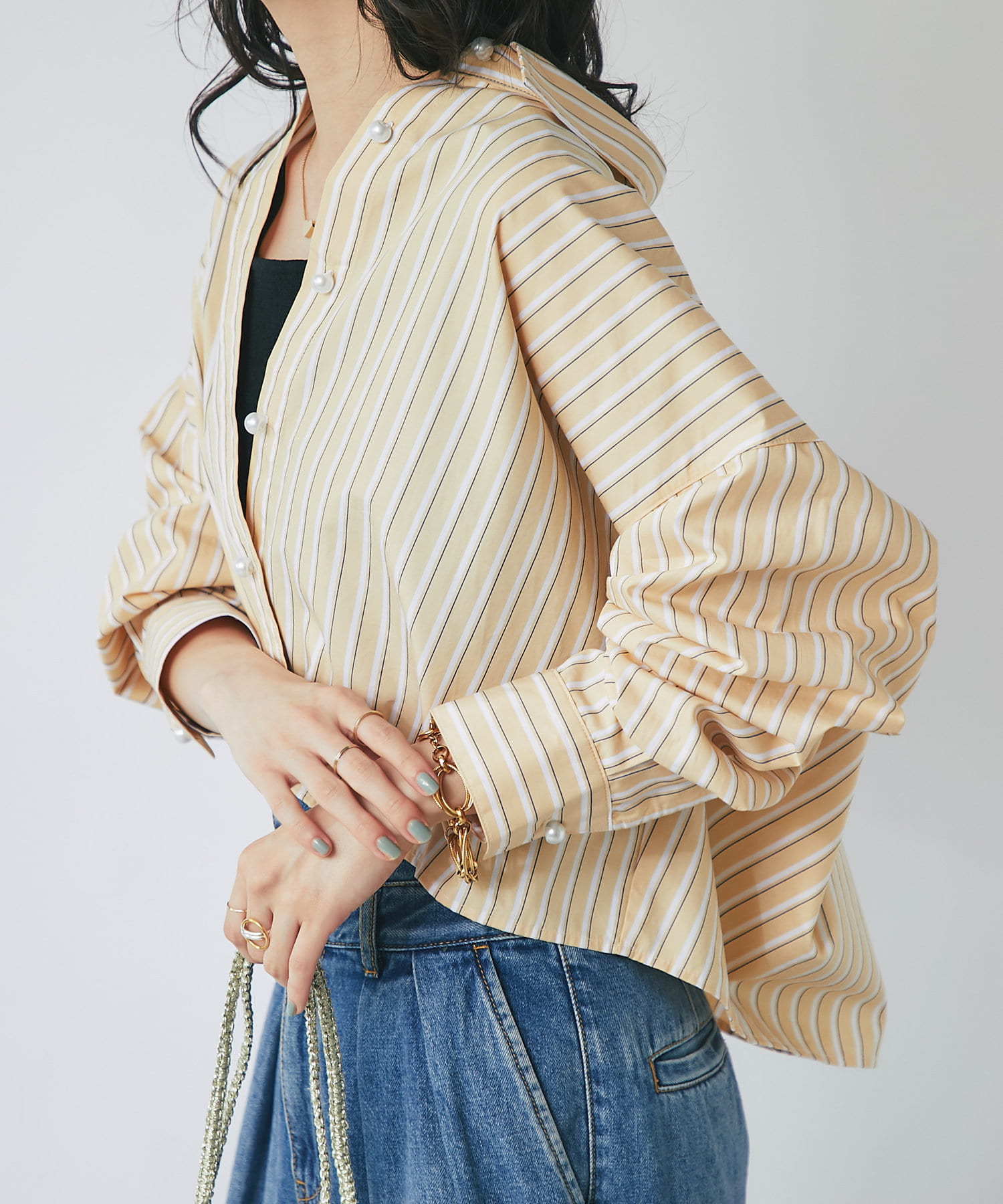 パール釦が可愛い!大人気ストライプシャツに待望の新柄登場!