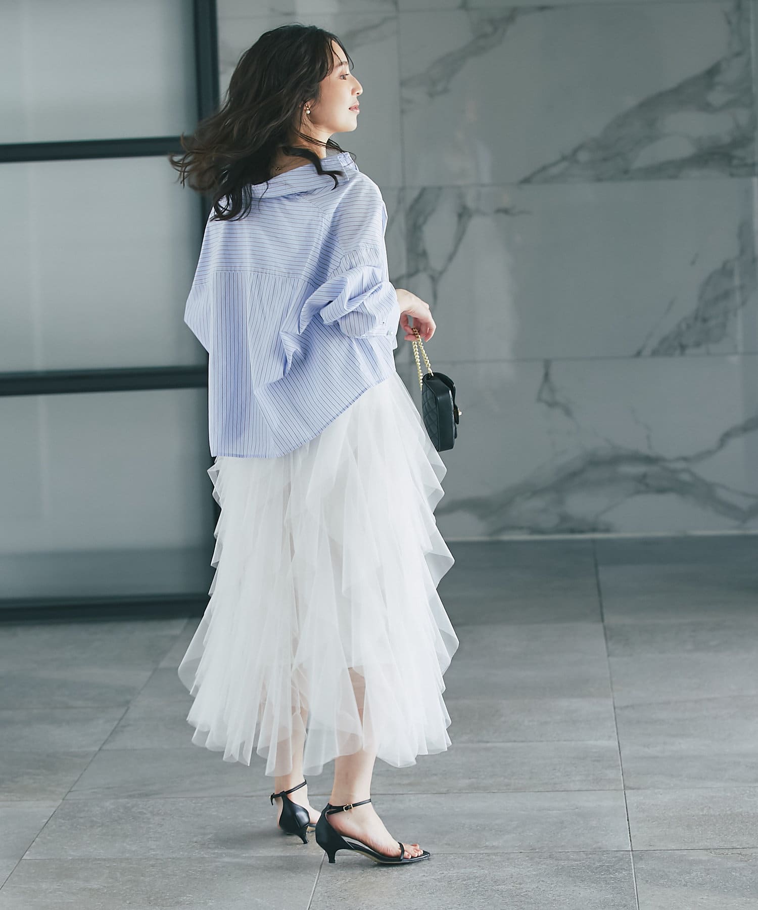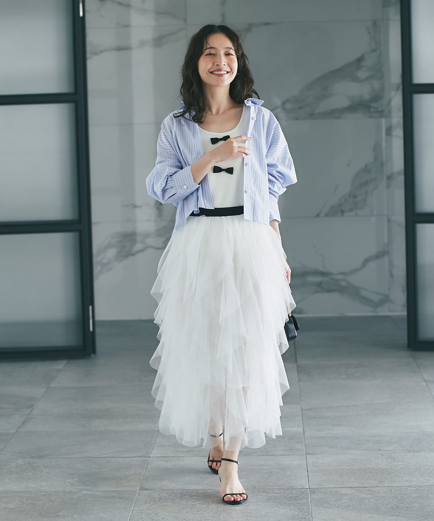ハイウエストのボトムに合わせるだけでスタイルアップが叶う一枚。
