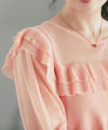 【お上品好感度UP】シアーコンビフリルニット