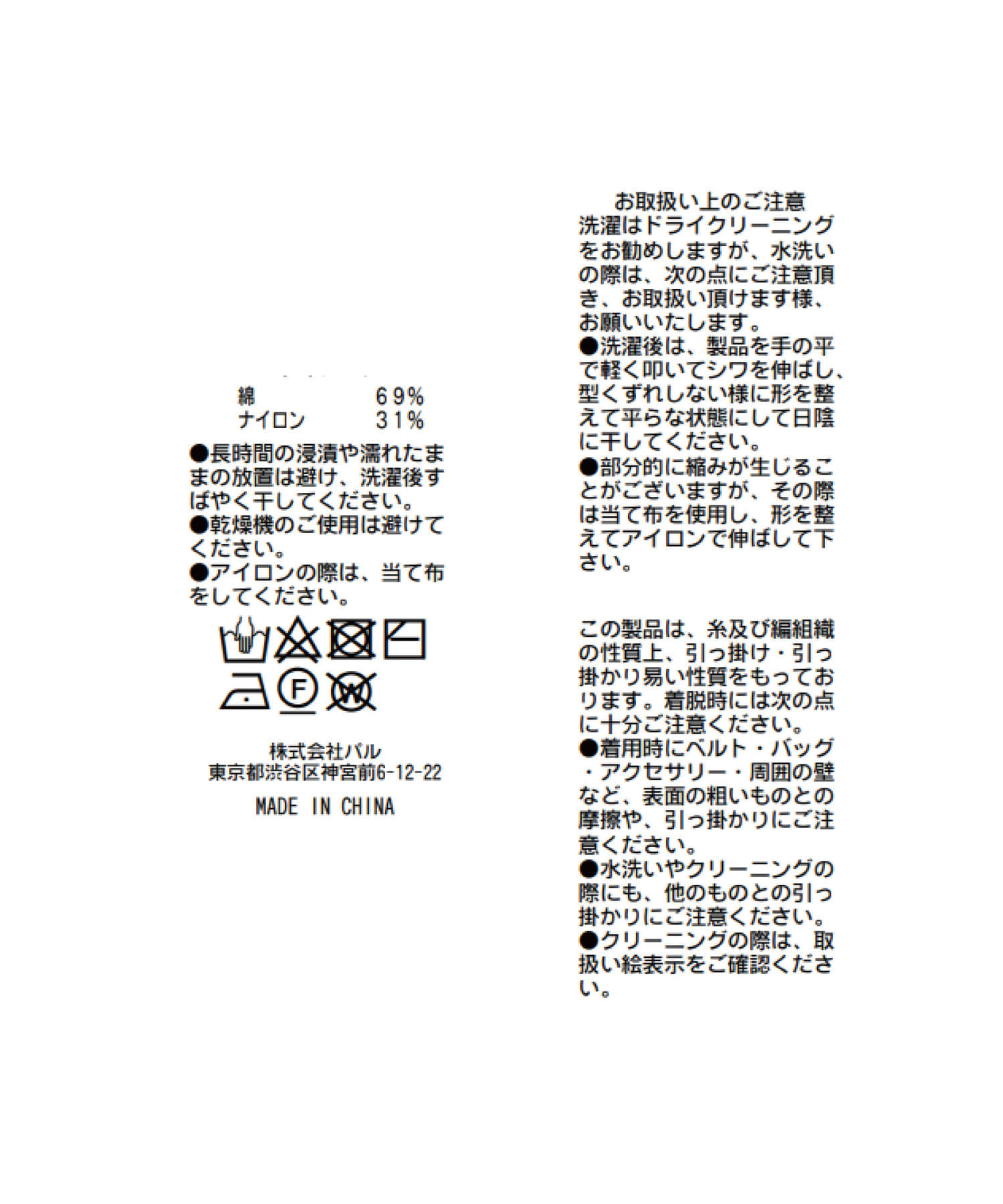 洗濯方法:手洗い