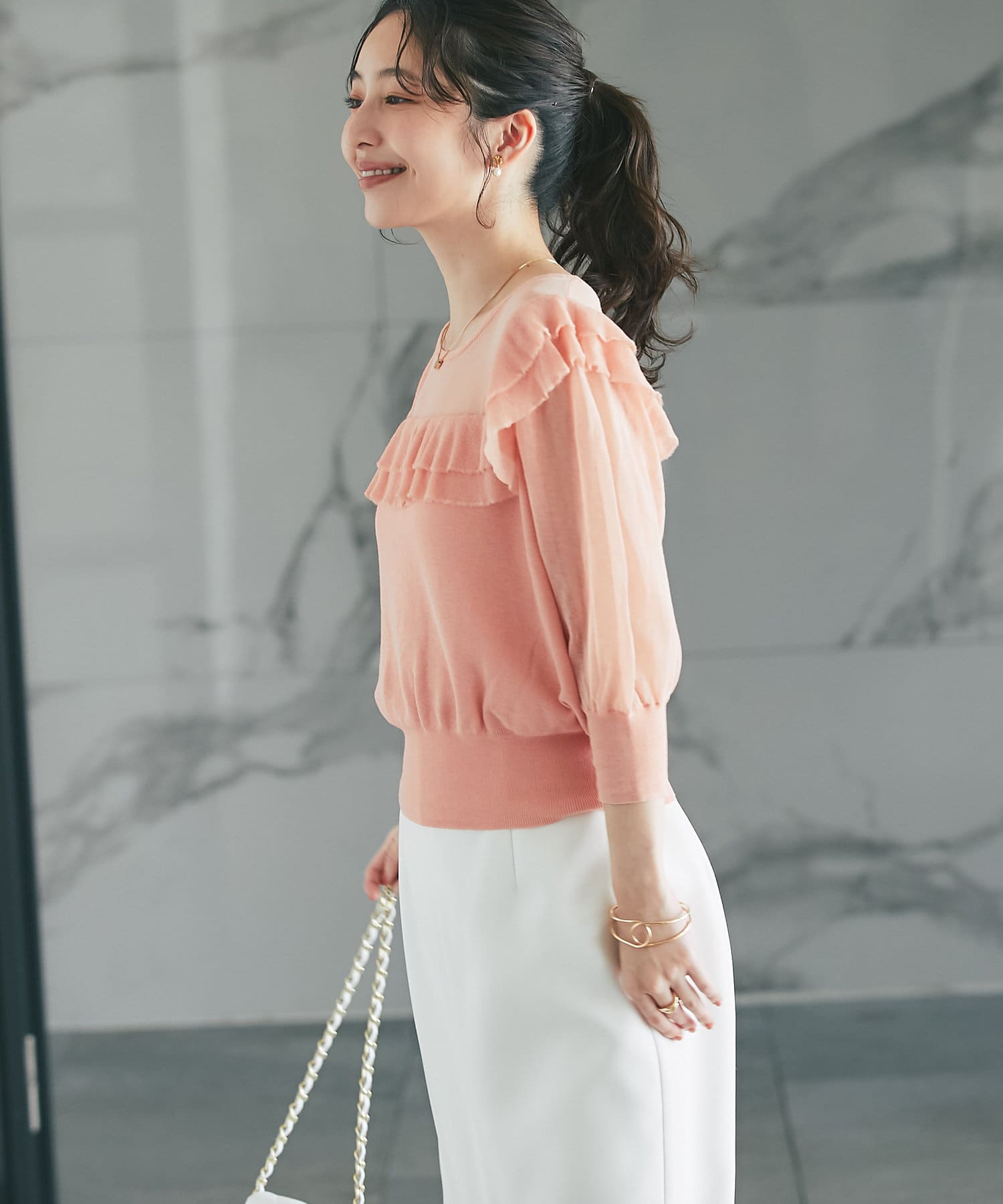 繊細で女子力高い上品見えフリルニット。