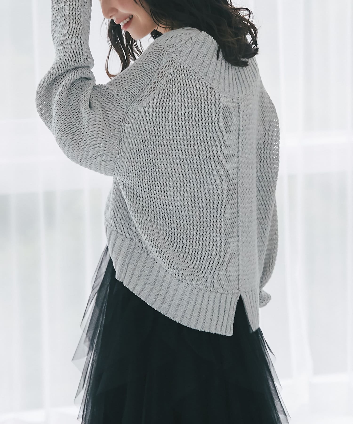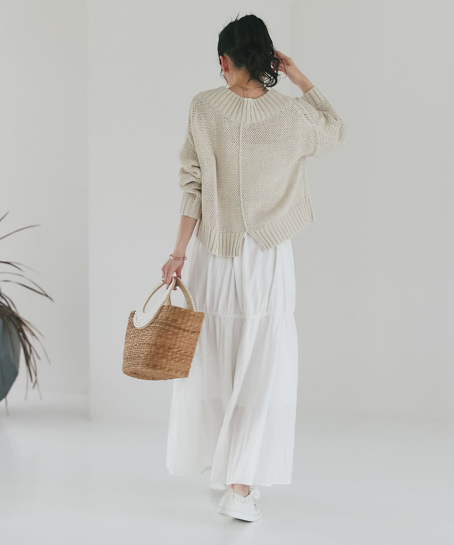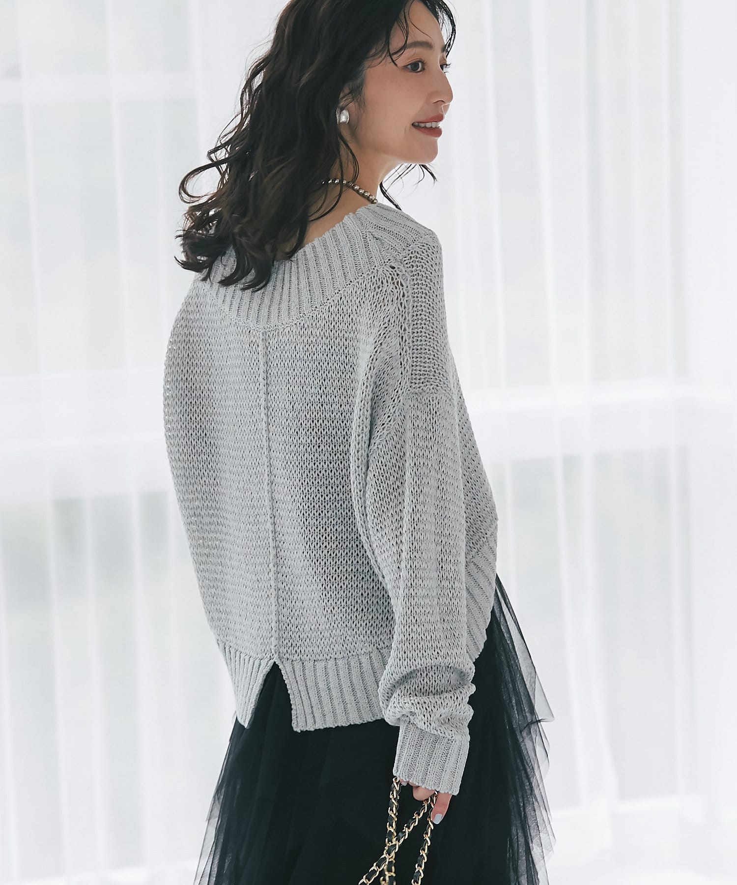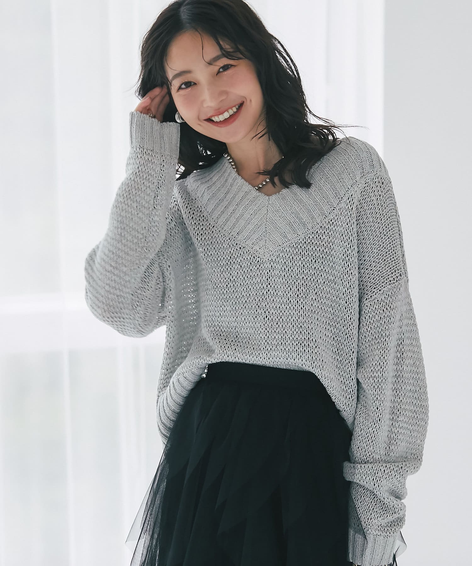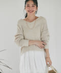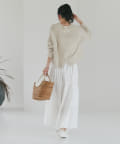 タイトスカート、ふんわりスカート、パンツなんにでも合わせやすくデイリーに使えるニットです。