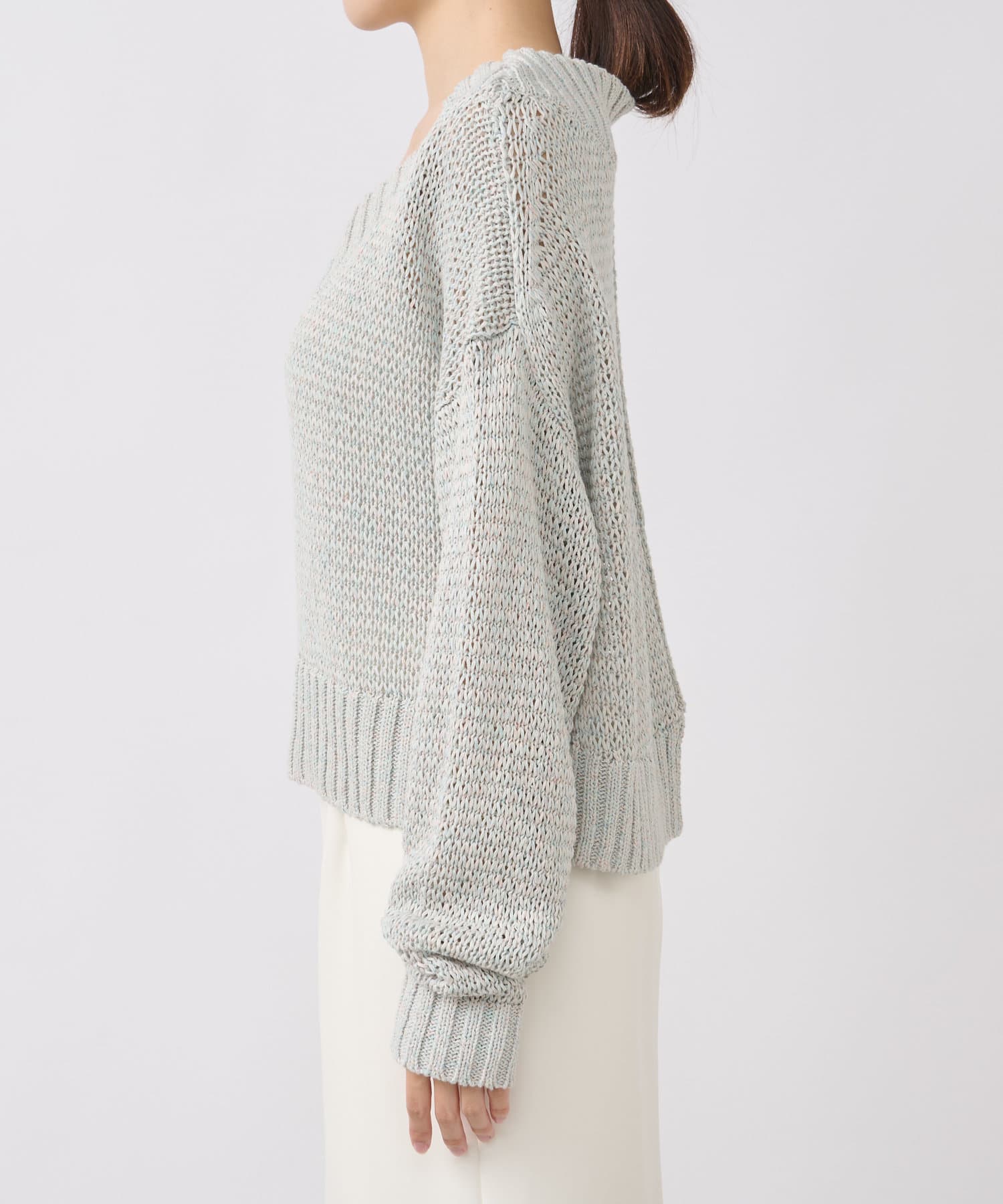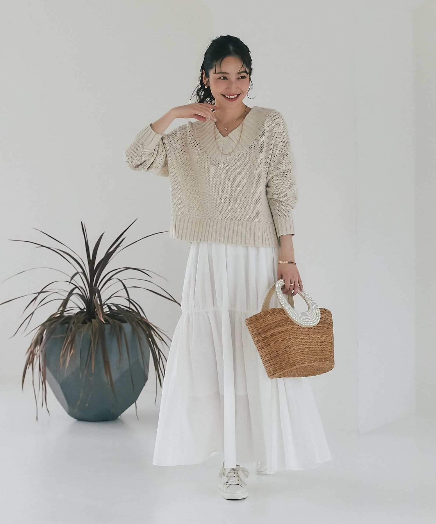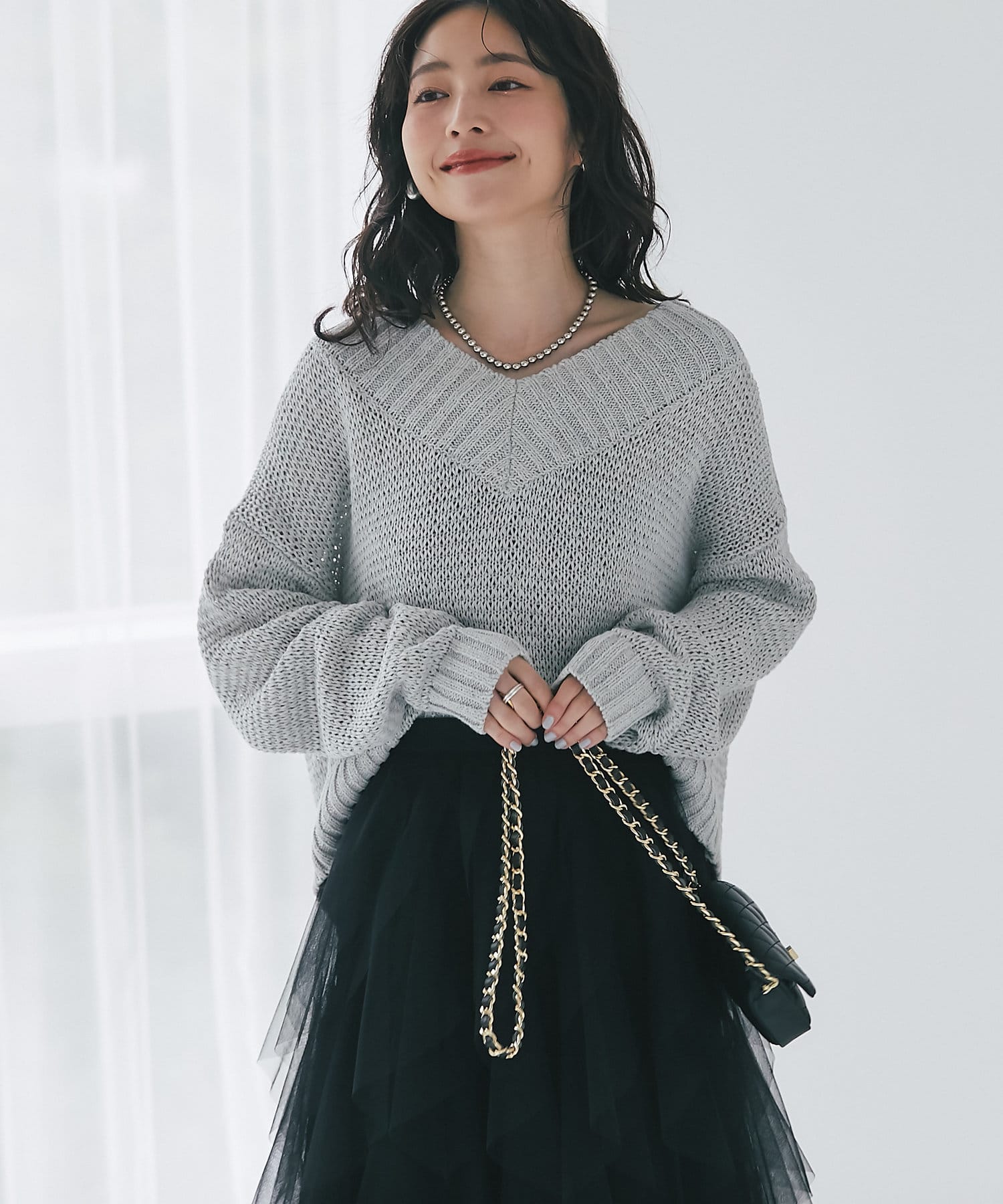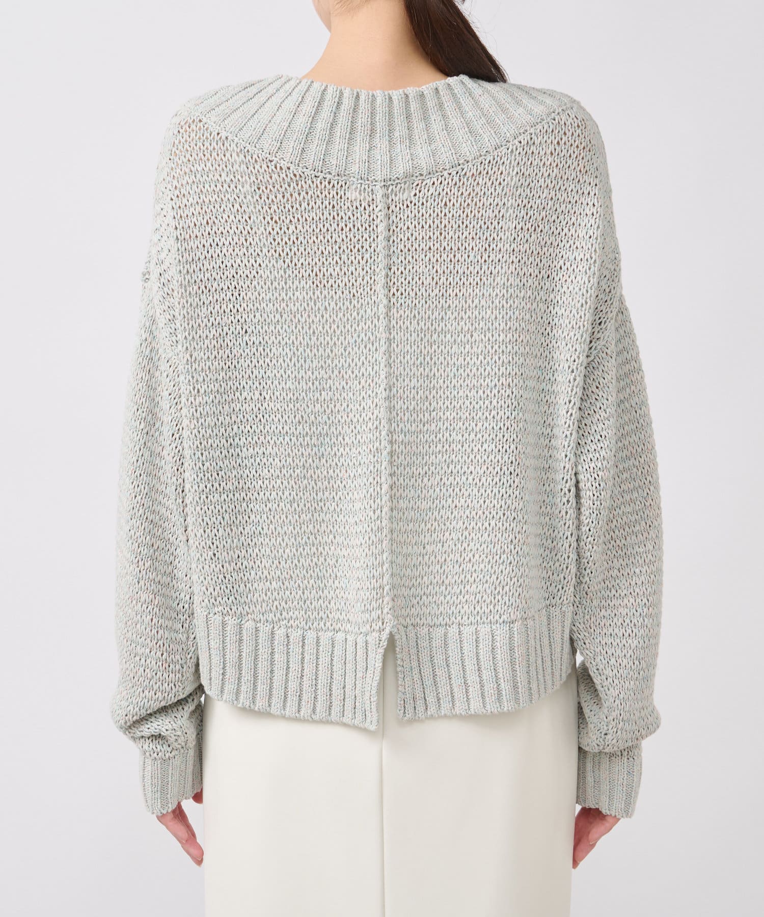タイトスカート、ふんわりスカート、パンツなんにでも合わせやすくデイリーに使えるニットです。