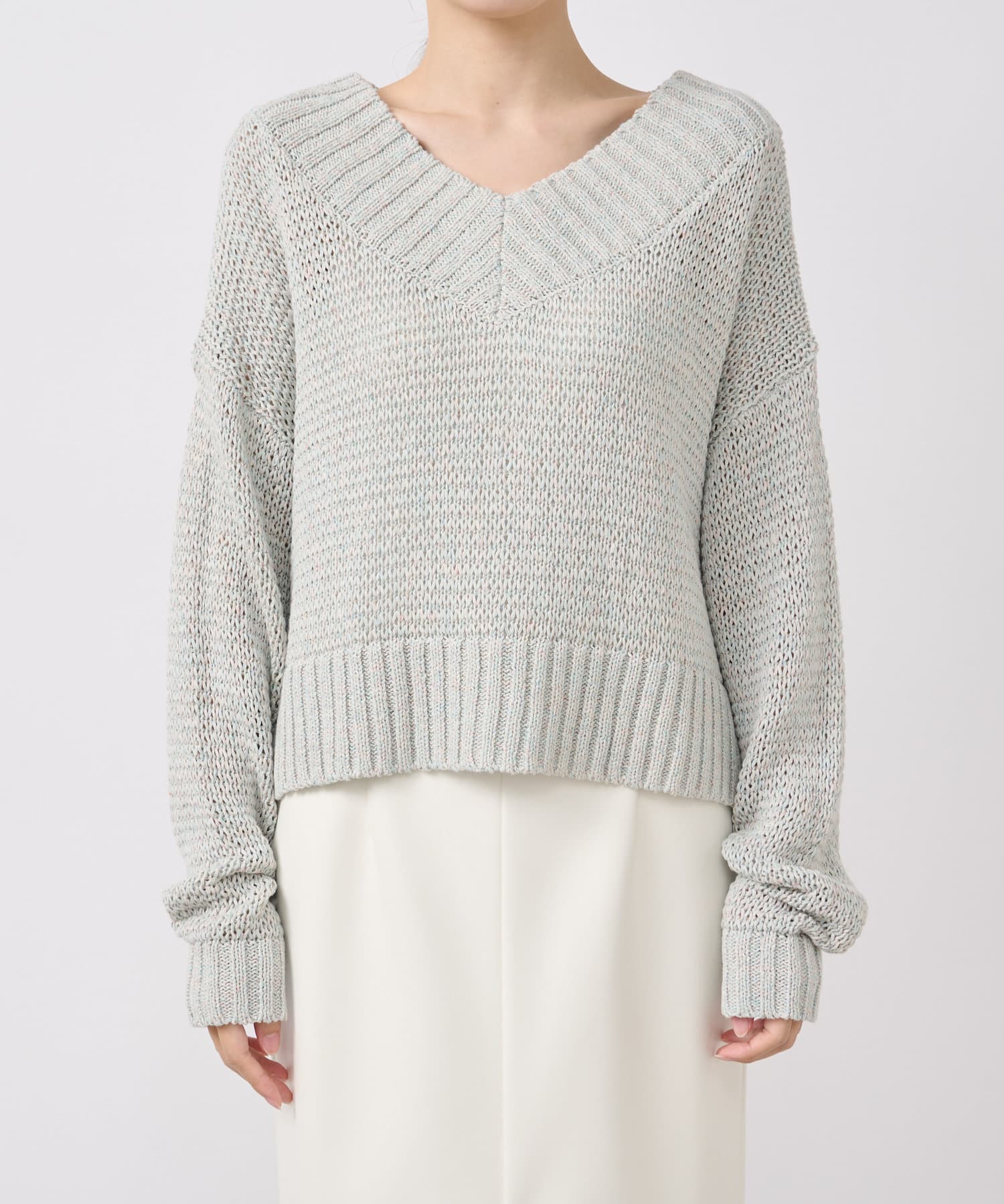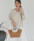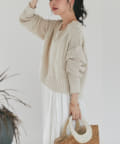 毎年人気の、ふくらみのある糸で優しい印象のVネックニット。
