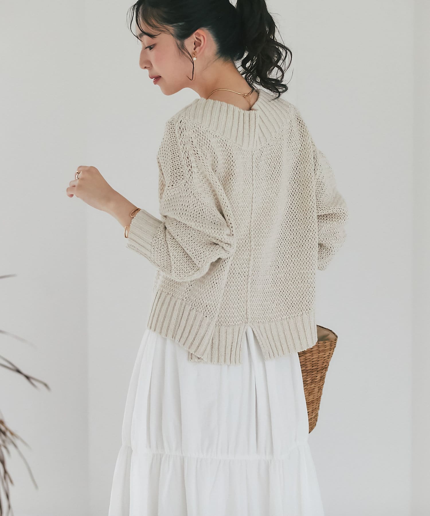 大人な抜け感を演出する万能クロップドニット