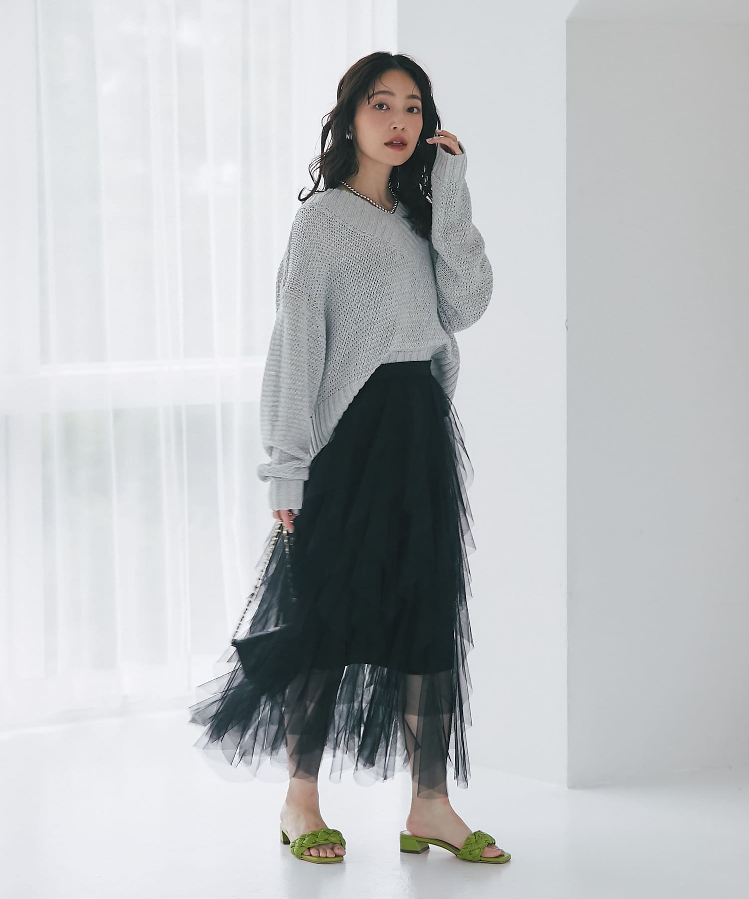 ボリュームのあるスカートからタイトなスカートまで幅広く好相性◎